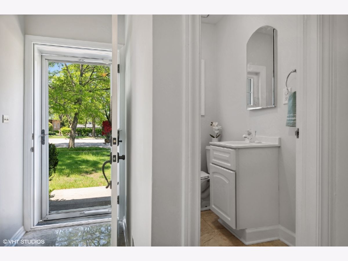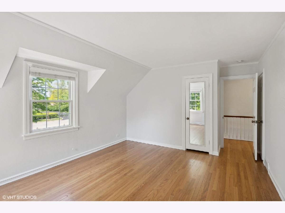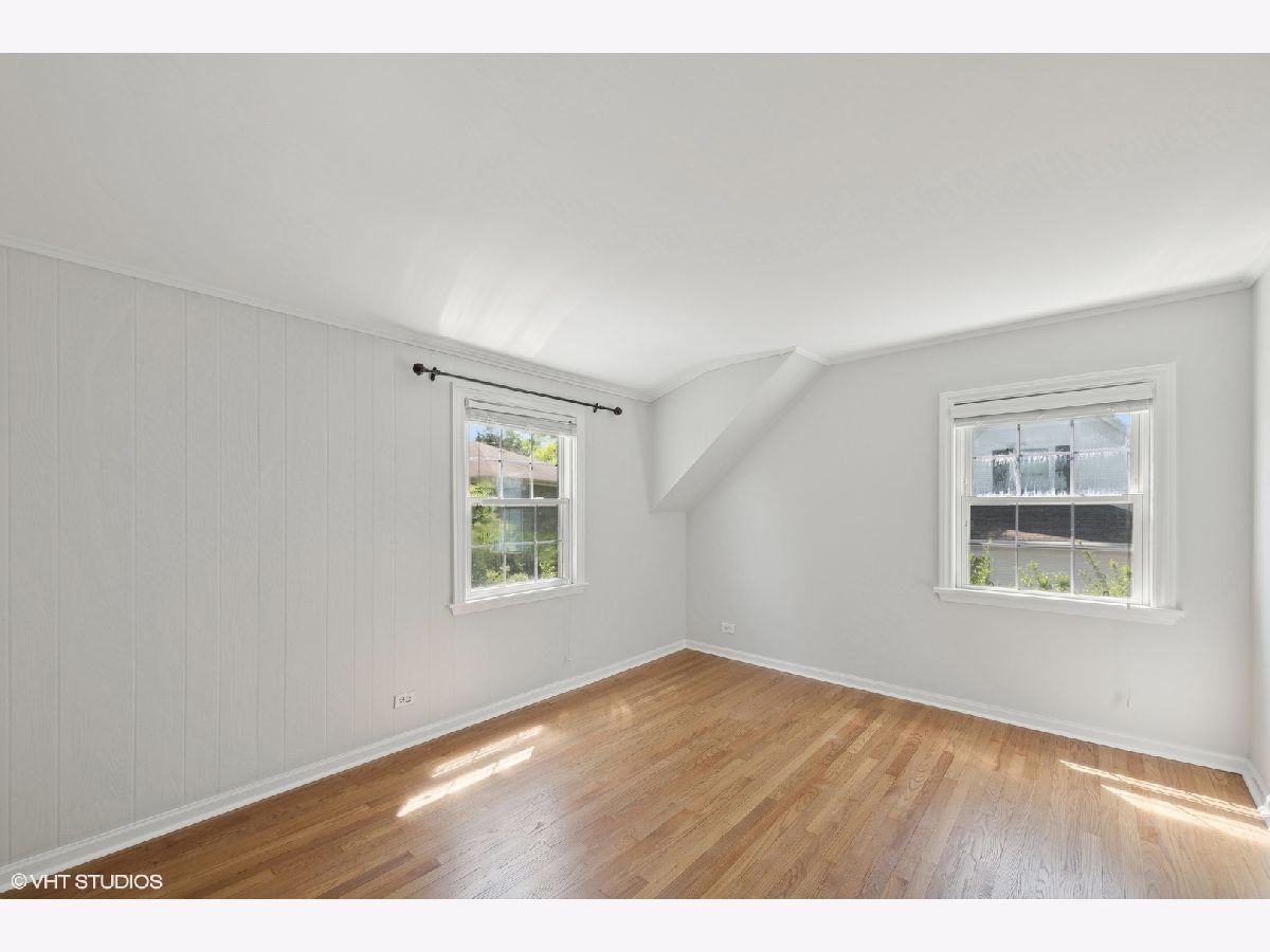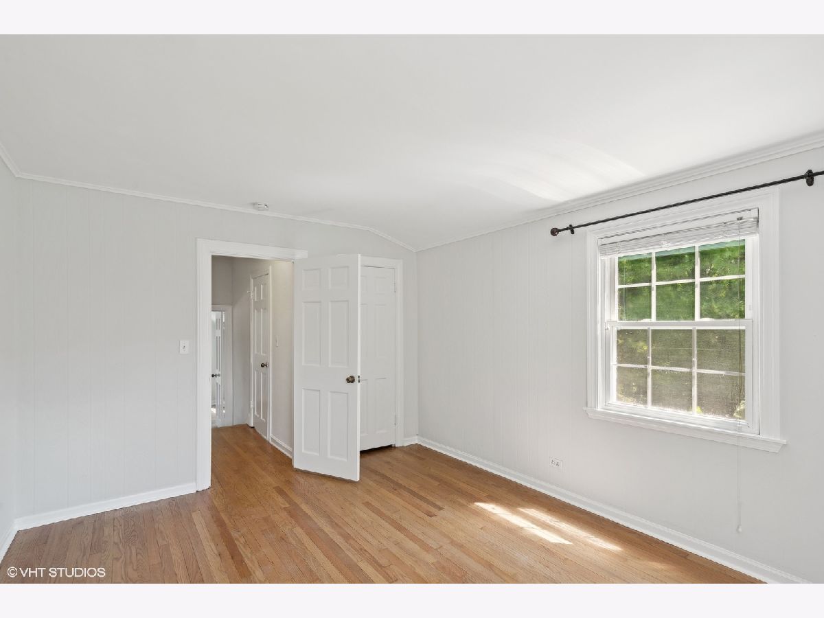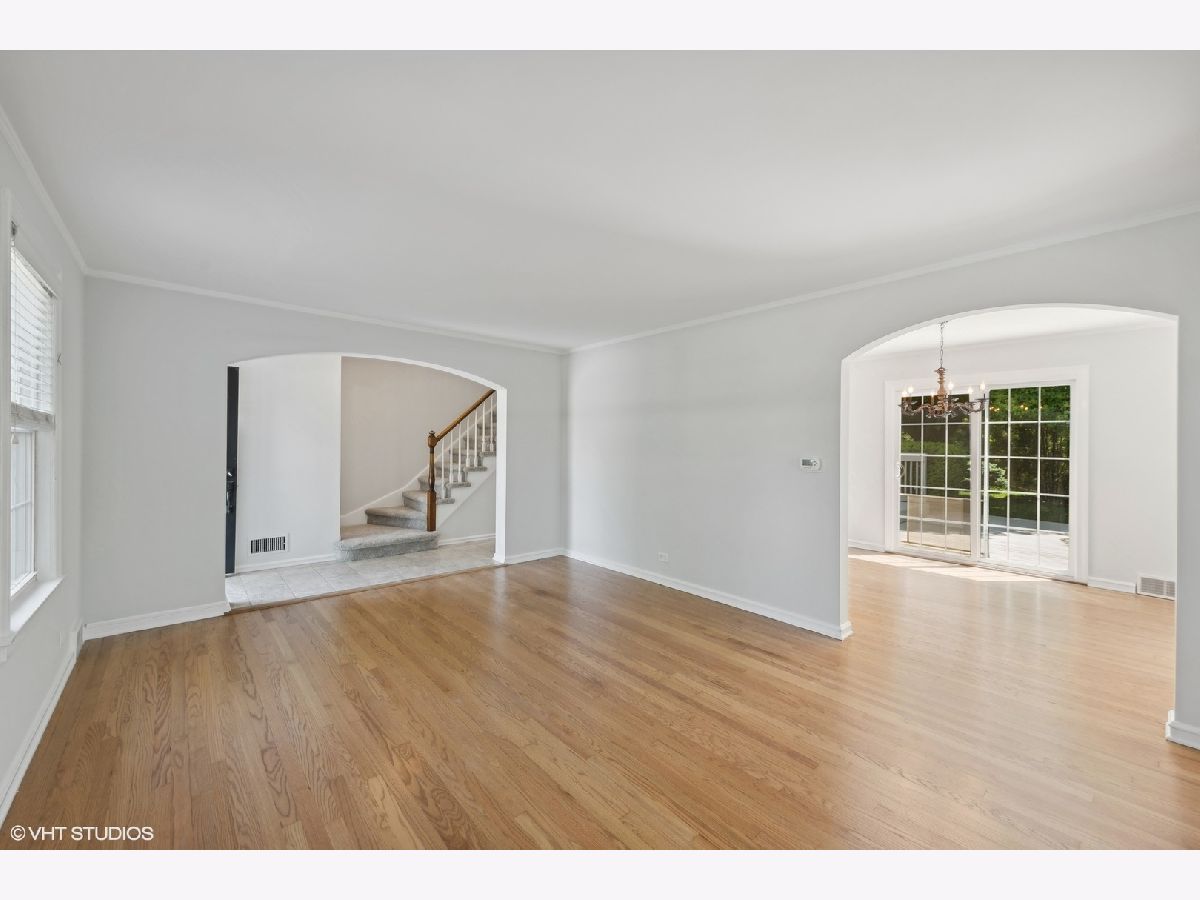 Nestled in a charming neighborhood, this exquisite two-story home seamlessly blends timeless elegance with modern conveniences. Step into the inviting foyer, adorned with porcelain tile flooring and a guest coat closet, setting the tone for the sophisticated interiors. The expansive living room boasts rich hardwood flooring, intricate crown molding, and a cozy wood-burning fireplace with a stately wood mantle, creating a perfect setting for intimate gatherings. Adjacent, the dining room features hardwood flooring, crown molding, and a sliding glass door that opens to a delightful wood deck, ideal for alfresco dining. The kitchen is a chef's dream, with sleek porcelain tile flooring, a suite of GE appliances including an oven/range, microwave, and dishwasher, along with a Whirlpool refrigerator. The double sink, complete with disposal and brushed nickel plumbing fixture, adds to the kitchen's functionality. A conveniently located powder room on the main level features porcelain tile flooring, a neutral vanity, a Kohler commode, and a medicine cabinet for additional storage. Ascend to the second level, where the primary bedroom offers a serene retreat with hardwood flooring, crown molding, and two ample closets. Two additional bedrooms also feature hardwood flooring, crown molding, and generous closets. The upper level includes a linen closet and a walk-in closet, ensuring ample storage space. The shared bathroom is beautifully appointed with ceramic tile flooring, a neutral vanity, a shower/tub combination with ceramic tile surround, a Kohler commode, and a medicine cabinet. The unfinished basement presents a versatile recreation area, a laundry space equipped with an Amana dryer, GE washer, utility sink, American Standard furnace, and a GE hot water heater (40 gal, 2005). Practicality meets style with a sump pump featuring a battery backup, ensuring peace of mind. The home's exterior, a blend of brick and vinyl, is complemented by an asphalt driveway, a spacious patio, and a newly installed roof, offering both durability and curb appeal. Other improvements include: chimney and flue were rebuilt, freshly painted, hardwood floors refinished and so much more! This residence is a perfect blend of luxury and comfort, ready to welcome you home and superbly located near Metra, library, parks, pool, golf and fabulous schools!