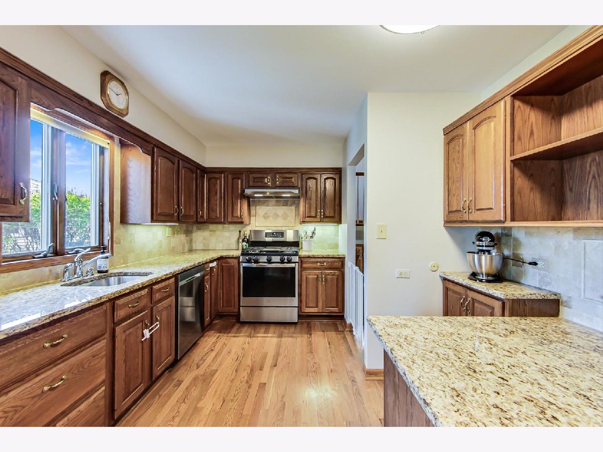Charming & bright split-level in desirable Greenbrier subdivision. Beautiful hardwood floors in all bedrooms and main level. Quality woodwork, solid 6 panel doors throughout. Granite countertops and ceramic backsplash with custom workspace in the kitchen. Lower level family room has Sterno fireplace and floor-to-ceiling cabinets. Spacious dry crawlspace for extra storage. Hard to find 2.5 car garage! Enjoy the lovely garden from the 3 season room off the kitchen. This home has been well maintained and is ready for new owners. Easy access to highways and shopping plus elementary school, playgrounds and Frontier Park. One year home warranty to buyer.