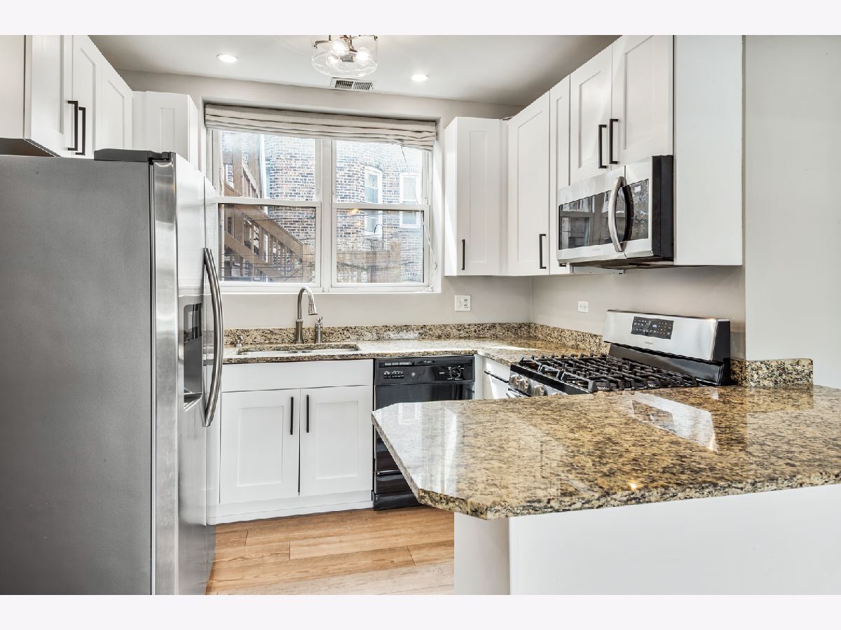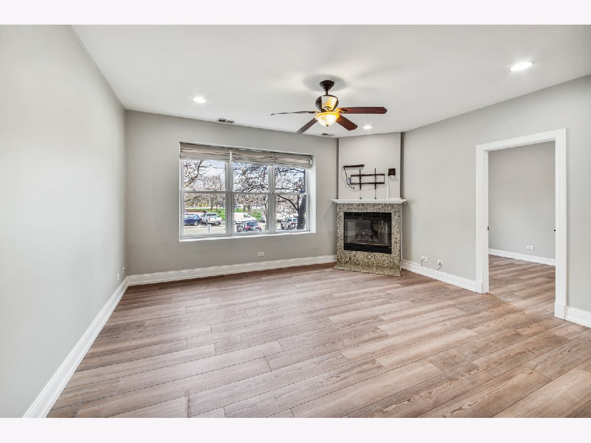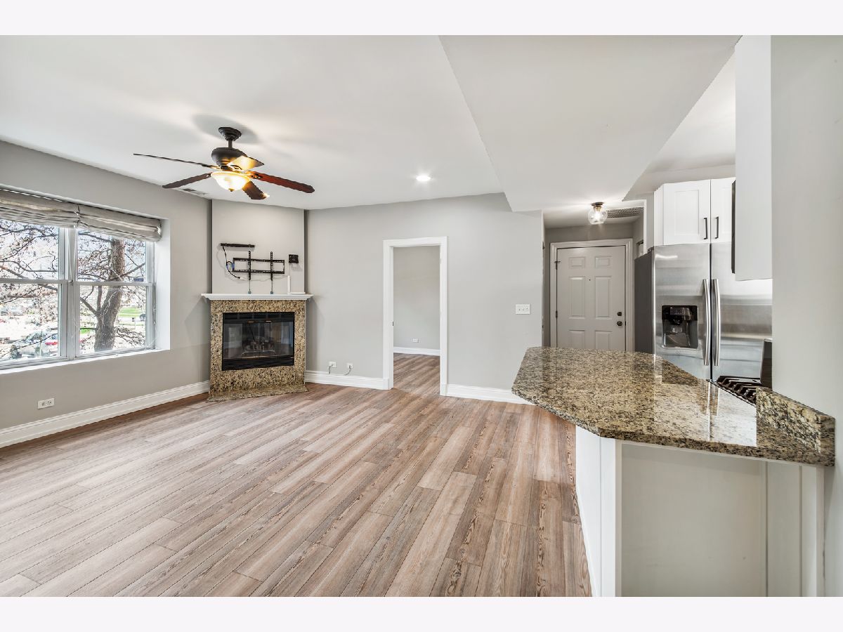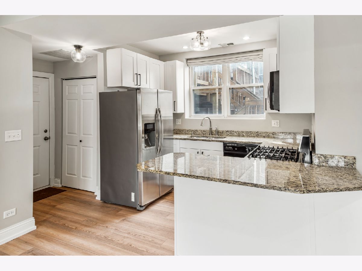 MUST SEE! Discover this stunning 2 bed/2 bath condo nestled on a serene one-way street in highly desirable Ukrainian Village. Ascend a single flight of stairs to enter your home, where you're immediately greeted by the newer luxury vinyl plank flooring that flows seamlessly throughout the home, creating a touch of elegance and durability. With an abundance amount of natural light, the open concept living area creates an inviting atmosphere, ideal for both relaxation and entertaining. All complimented by a gas fireplace, adding warmth and charm to your living space. The centerpiece of the home is the open concept kitchen, where modern white cabinetry, sleek granite countertops, and breakfast bar converge to the perfect space. Retreat to the large primary bedroom, where tranquility and comfort await. Featuring spacious walk-in closet and an en-suite bathroom adorned with modern fixtures and finishes. The tucked away second bedroom, provides flexibility for guests or office, perfect for a work from home lifestyle. Easy access to full hall bath. Enjoy the convenience of stackable in-unit washer/dryer. Newer furnace and hot water heater. Outdoor deck perfect for barbecuing. Convenient storage room on first floor. Located just steps from the vibrant energy of Division Street. This home offers a special opportunity to embrace city living amidst a calm and quiet street. Investor friendly. Welcome to your new home!