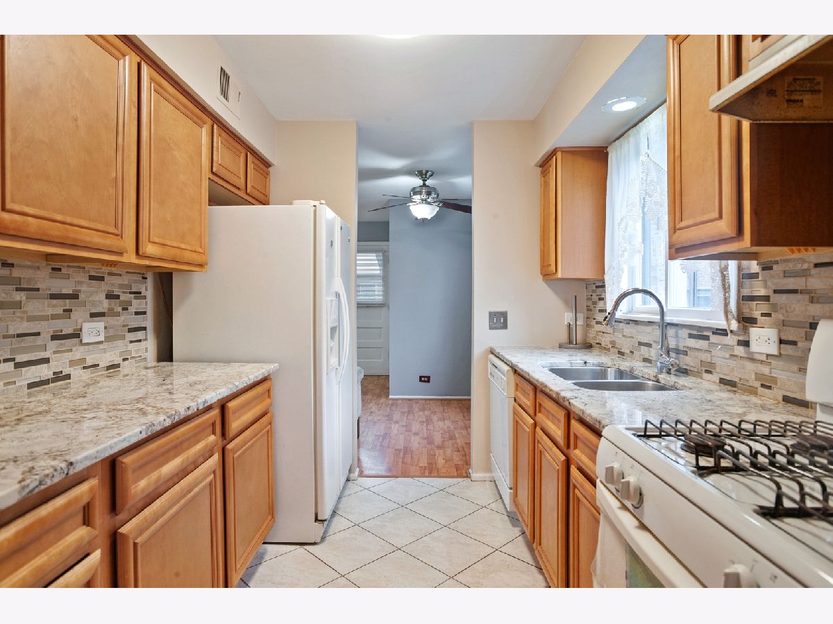 Experience residential living in a newly renovated spacious Townhome located on a quaint tree-lined street in the 32 unit Green Oaks complex, across the street to Indian Boundary, a mile away from Lake Michigan in the heart of Rogers Park. Greeted by a formal living room which flows directly to a light and airy kitchen with maple cabinets, granite counters and all new stainless appliances, separate dining room and an open family room with an updated guest bathroom which leads out to the backyard paved patio with garden. Private upstairs living space features hardwood floors throughout, three spacious bedrooms that can easily accommodate queen size bed sets each with great closet space. The master has a walk-in closet and large windows which brings in lots of natural light. A new modern bathroom with double vanity, quartz counters, intrinsic porcelain tile throughout. Huge potential for additional recreational open living space plus office or additional bedroom with half bath in unfinished full basement. Walk-out paved patio and green space perfect for personal relaxation or entertaining. This unit has it's own parking space located right behind the building, a few steps from the patio. Easy street parking as well. Effortless access to transportation, walking distance to coffee shops, restaurants, stores and parks, this home is ready for it's new owners!
