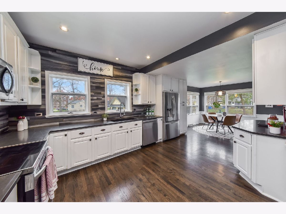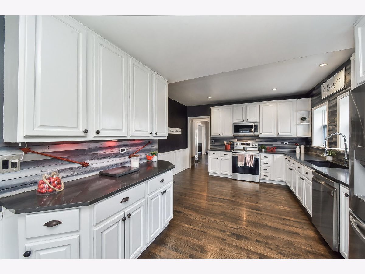 Large Brick Home with tons of charm and light throughout! Newly renovated (2021) modern farmhouse kitchen with all new appliances! Newly finished hardwood floors, paint and windows (2020) throughout! Dining Room w/built-in China Cabinet! Sitting room with built-in bookcases and wood burning fireplace! Large master bedroom with luxury master bath and walk up sitting area! Three additional bedrooms on the second floor. First floor bedroom potential for office or bonus room as well. Full finished basement, including a full bath, laundry room, bonus family room and workout room! Three entries to home, including entry directly into the basement. Walk-up 3rd floor attic waiting for your personal touch. Approx 1/3 acre in town and 1 block from Aurora University! Large front porch with porch swing! Fenced backyard with firepit and tree swings! Welcome home!