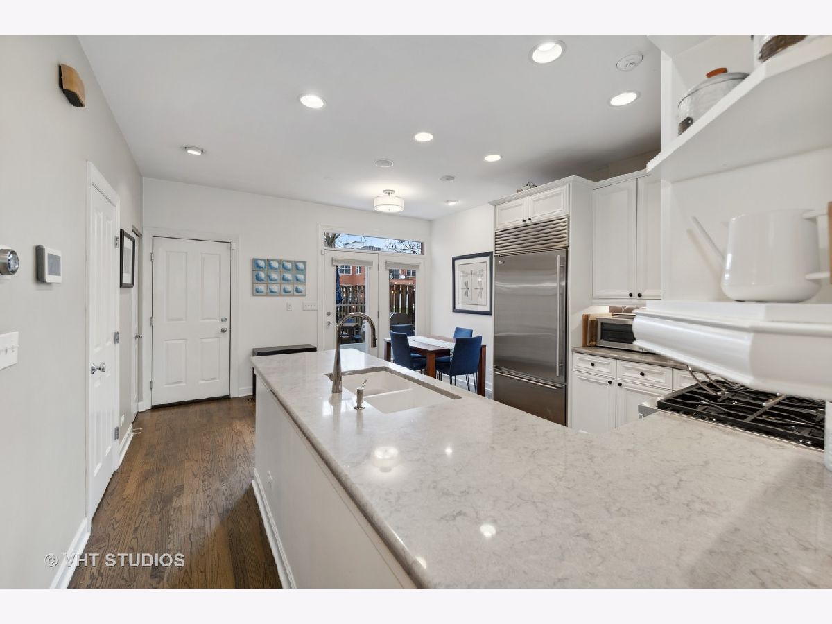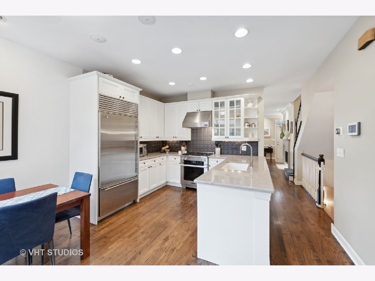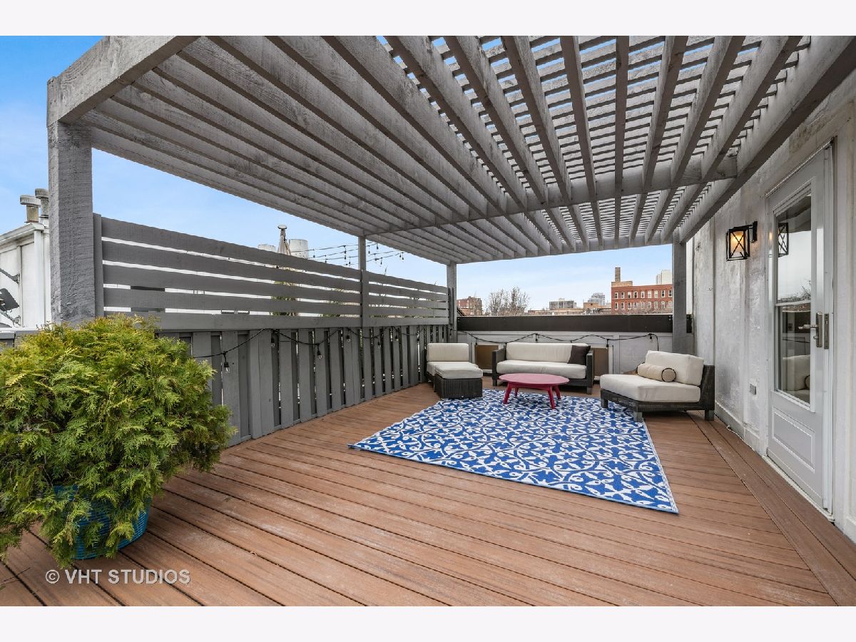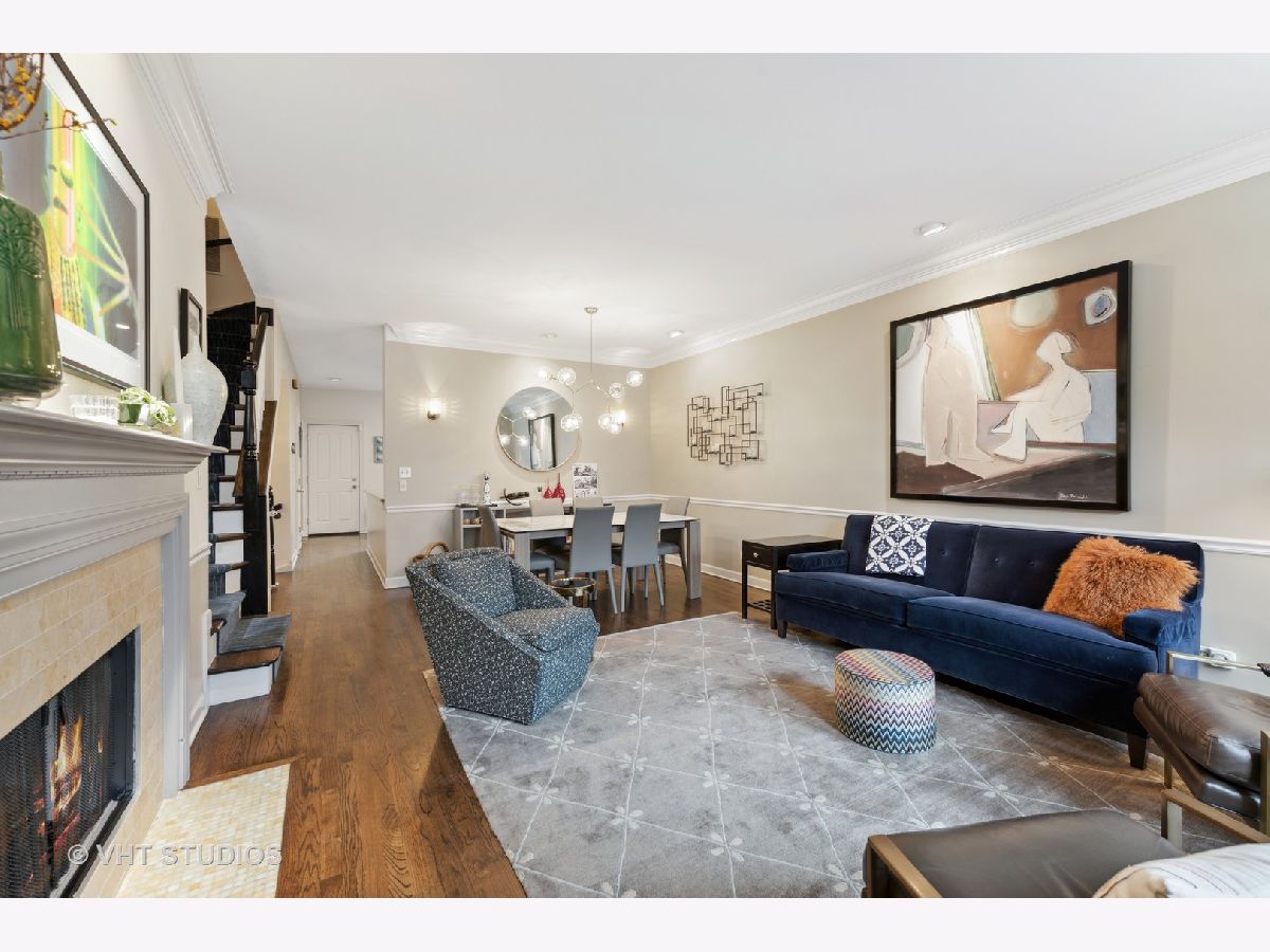 Light and spacious 2 bedroom + office/nursery with potential for additional bedroom in the heart of Old Town. This townhome in desirable Old Town Square is nestled in a beautiful brick and grassy courtyard, perfect for entertaining or lawn games. The first floor opens to a living and dining space with a gas-fueled fireplace and modern lighting. Chair rails and crown molding add an elegant touch. The kitchen features new quartz countertops, sculptural tile backsplash and top-end appliances including a Sub-Zero refrigerator, Bosch dishwasher and brand new Miele oven. The powder room is tiled in subway white, as are the other three full bathrooms. The kitchen's back door opens to a patio with room for grilling and dining al fresco. Hardwood floors continue on the second level, with a light-filled primary suite and attached office/child's room or workout space. Relax in the deep soaking tub or hit the shower in the ensuite bath. The guest room's vaulted ceiling provides light and drama. Plenty of upstairs storage, with finished clothes closets in each room and three linen closets. There's yet more ample storage and living space in the tiled lower level, along with a nicely finished laundry room, storage area with built in wine cooler, rain shower bathroom and large family room. Water heater, AC and furnace have all been replaced. Outdoor spaces include the back patio, shared courtyard, balcony off the bedroom/office and a private rooftop deck that is not to be missed. The new rooftop pergola creates an intimate outdoor room, and allows for relaxing and entertaining even on hot, sunny summer days. The Trex deck as well as the roof were installed six years ago. Parking is in the one-car garage with a designated space behind it. Permitted street parking means lots of available space despite the access to the restaurants, shops and bars of Wells St. This home belongs on your must-see list!