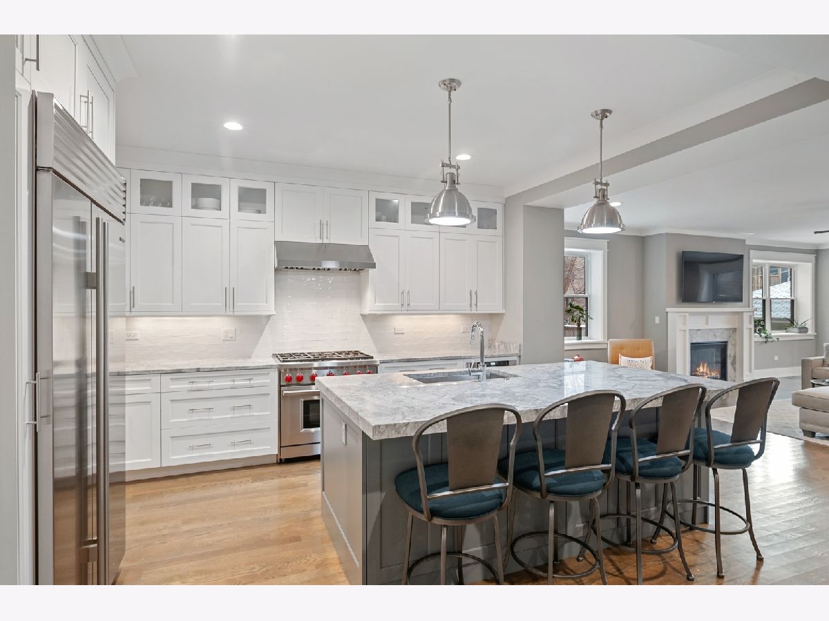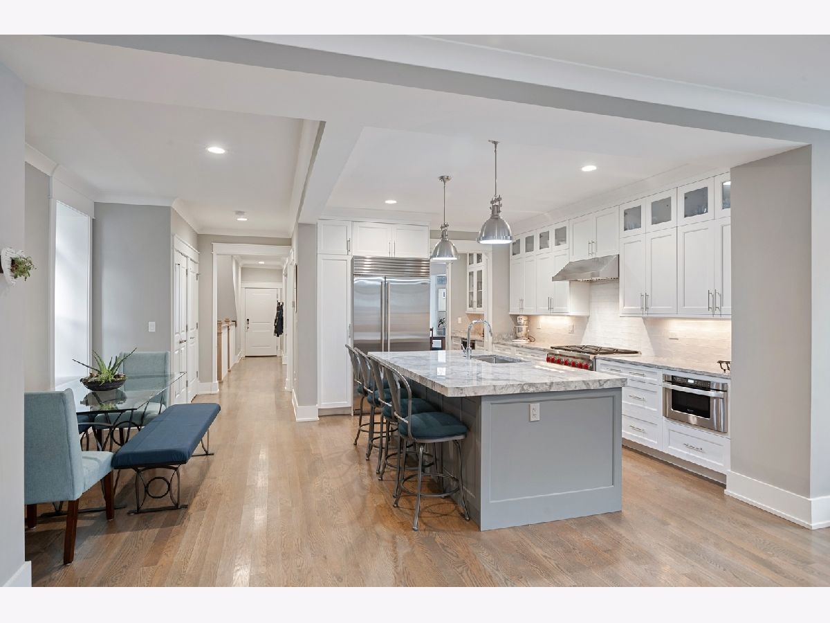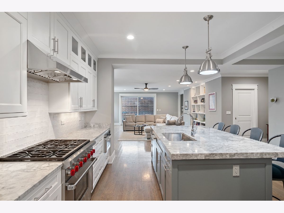 *Pictures from previous development/sister building next door* Luxury New, Huge Duplex Down. This wonderful 4 bedroom 3.1 bath duplex lives like a single family home - situated on an oversized (32') lot in the heart of Roscoe Village. Featuring a totally unique floor plan - unmatched in the current market. Fabulous living spaces - with Southern aspect huge family room leading to large private terrace & garage roof deck. Bay window in the living and dining rooms, and an extra family/rec room downstairs. Also featuring a dedicated office on the main level and huge mudroom with pet washing station! Luxuriously finished with transitional trim, Wolf, Sub Zero & tasteful quartz kitchens. Clean crisp spa like bathrooms, white oak flooring and full radiant heated lower level. Incredible outdoor space: A large rear south facing partially covered terrace -leading directly to full private garage roof terrace. The clever construction utilizes the original exterior walls - thus retaining the large building footprint, plus an enormous addition while gaining a fully new construction home with all the benefits this includes. Garage parking included.