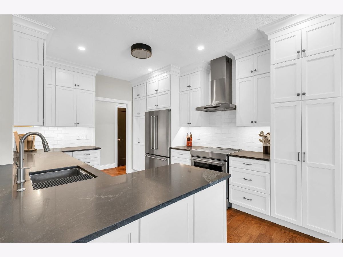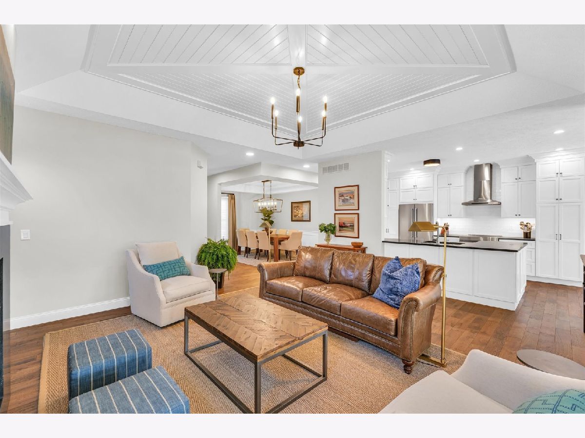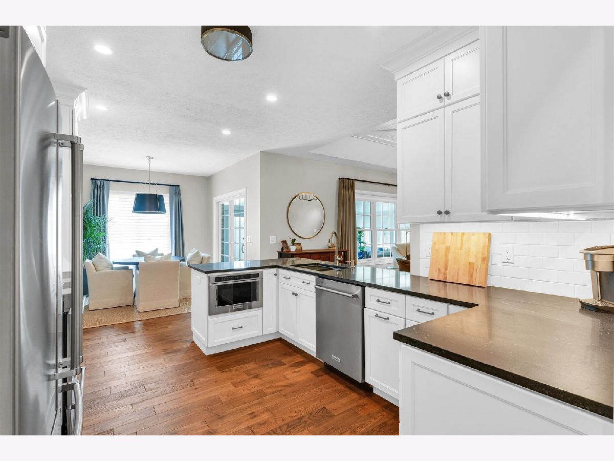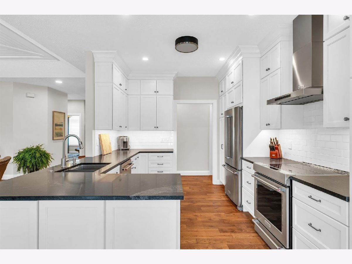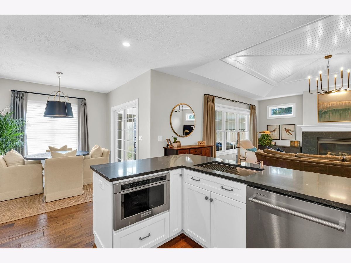 Step into elegance with this beautifully updated three-bedroom three-bath brick ranch condo, where white oak hardwood flooring flows seamlessly through most of the main floor. The living room features a tray ceiling and a gas fireplace with a granite surround, both offering stunning focal points. Adjacent to the living room, the formal dining room is highlighted by a tray ceiling as well and elegant wainscoting, providing a perfect space for entertaining. At the heart of the home, you'll find the impeccably updated kitchen, boasting maple custom cabinets, sleek granite countertops, and stainless-steel KitchenAid appliances. Just off the kitchen, a cozy breakfast nook offers access to the charming three-season room. The spacious primary bedroom, adorned with crown molding, includes an en suite bath with a double vanity and a tiled step-in shower. Completing the main floor is a second bedroom, currently utilized as an office, a laundry room, and an updated full bathroom. The partially finished basement provides additional living space with a third bedroom, a rec room, and a sitting room with French doors. There is also an unfinished storage area and workshop. Recent updates in the basement include fresh paint and new solid wood, single flat-panel doors. The two-car garage has been significantly upgraded this year with a new garage door and opener, a coated concrete floor, new storage cabinets, and freshly painted walls. Outside, the backyard offers a place for tranquil relaxation with a lovely brick paver patio and a fence for added privacy. Don't miss the opportunity to make this exquisite condo your own!