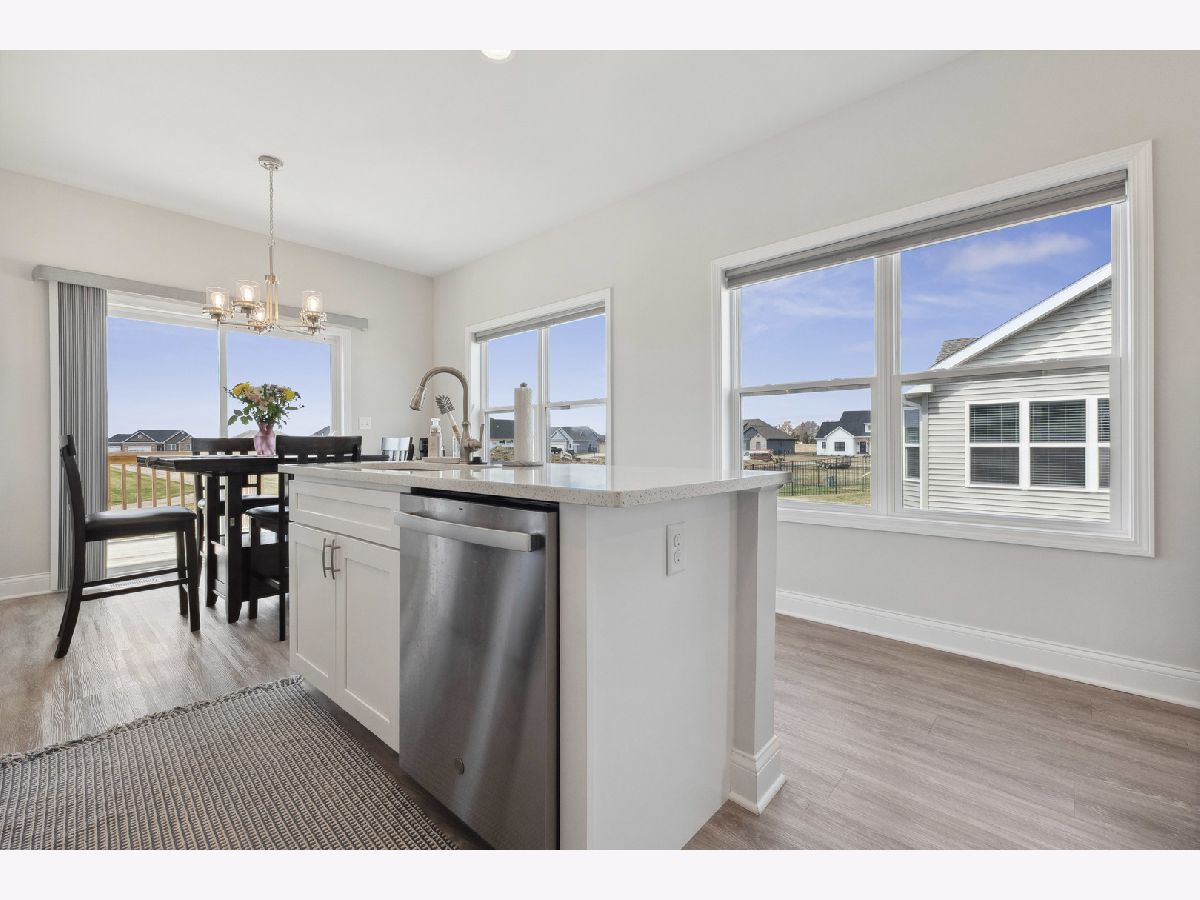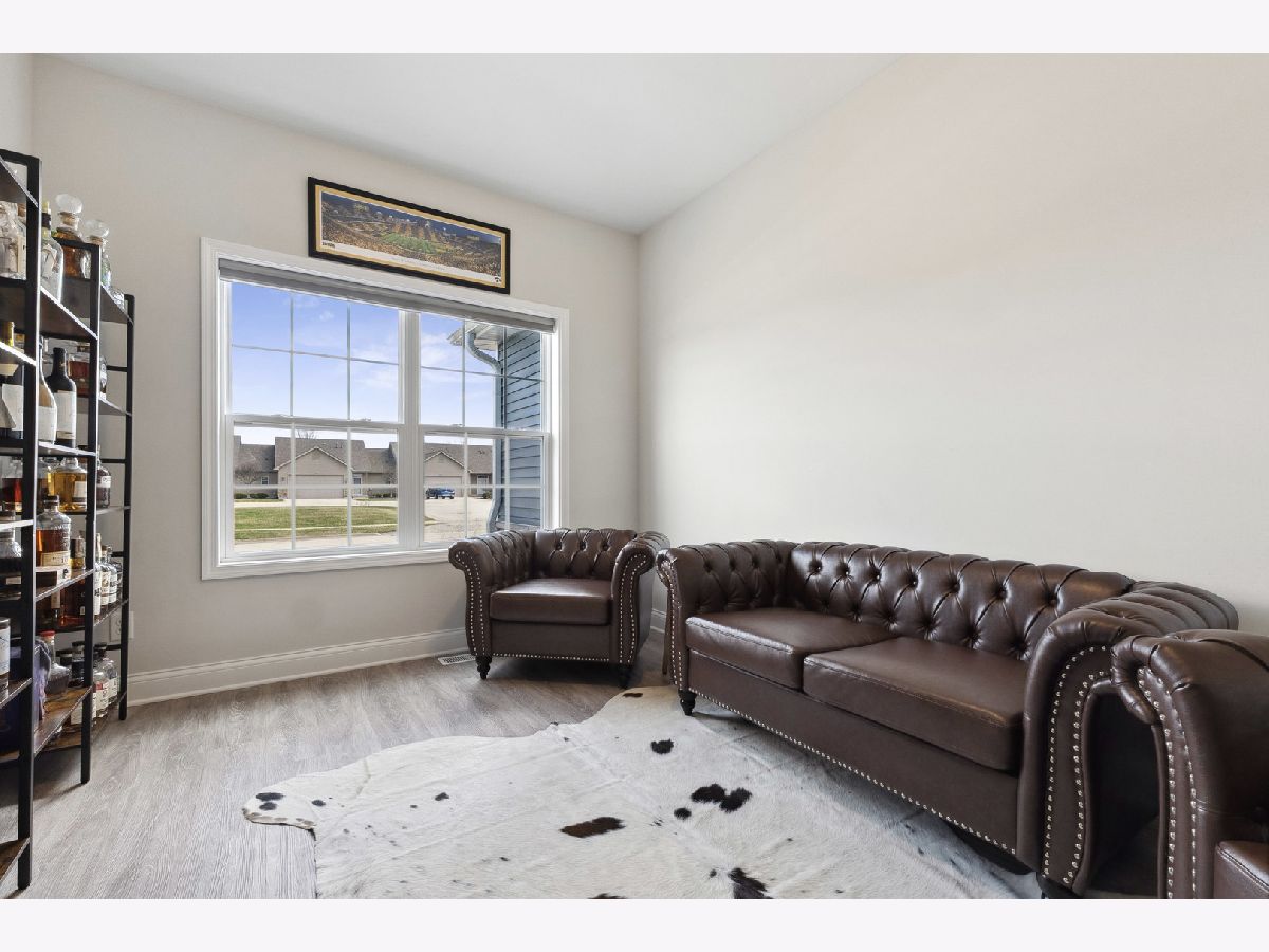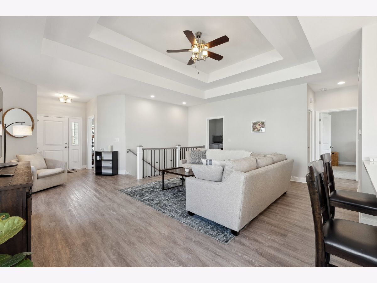 Discover a thoughtfully designed home offering 1,571 square feet of comfortable living space filled with natural light. This inviting residence features two spacious bedrooms, two full bathrooms, and a versatile den-perfect for a home office or flex space. High-end finishes throughout include 9-foot ceilings, oversized baseboard trim, two-panel doors, and durable luxury vinyl plank flooring. The family room's double tray ceiling adds an elegant touch, while the owner's suite is designed for ease with 36-inch doorways, a generous walk-in closet, and a beautifully appointed en-suite bath. The kitchen is both stylish and functional, featuring quartz countertops, dovetail soft-close cabinetry, a pantry closet, an island with a breakfast bar, and sliding doors leading to the deck-ideal for outdoor relaxation. A standout feature is the upgraded wrought iron railing on the stairwell leading to the full basement, which includes rough-in plumbing and 2 egress window-offering endless possibilities for customization. Additional perks include window coverings on all windows and the ability to install a fence in the backyard, providing added privacy and flexibility. Nestled in an established neighborhood with scenic walking and biking paths, this home offers a perfect blend of comfort, convenience, and future potential.