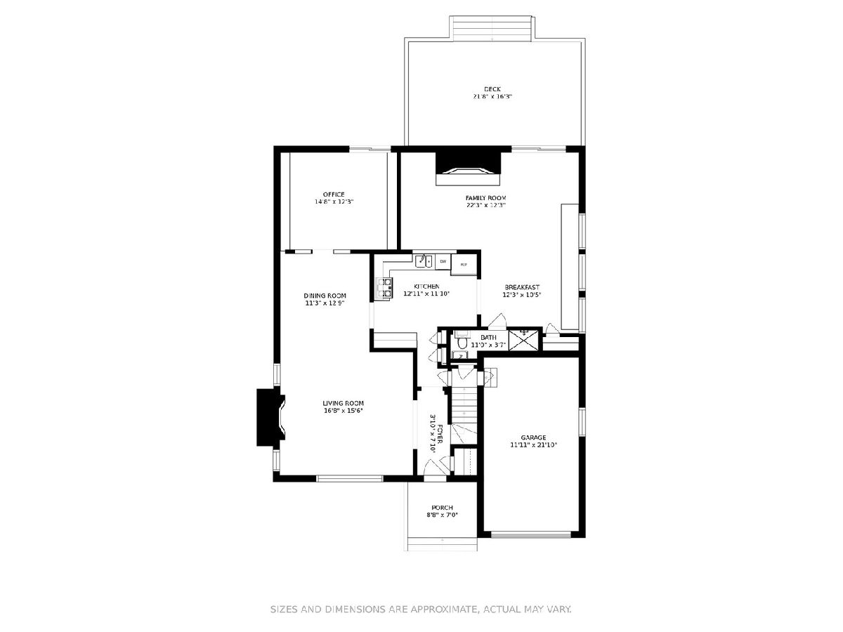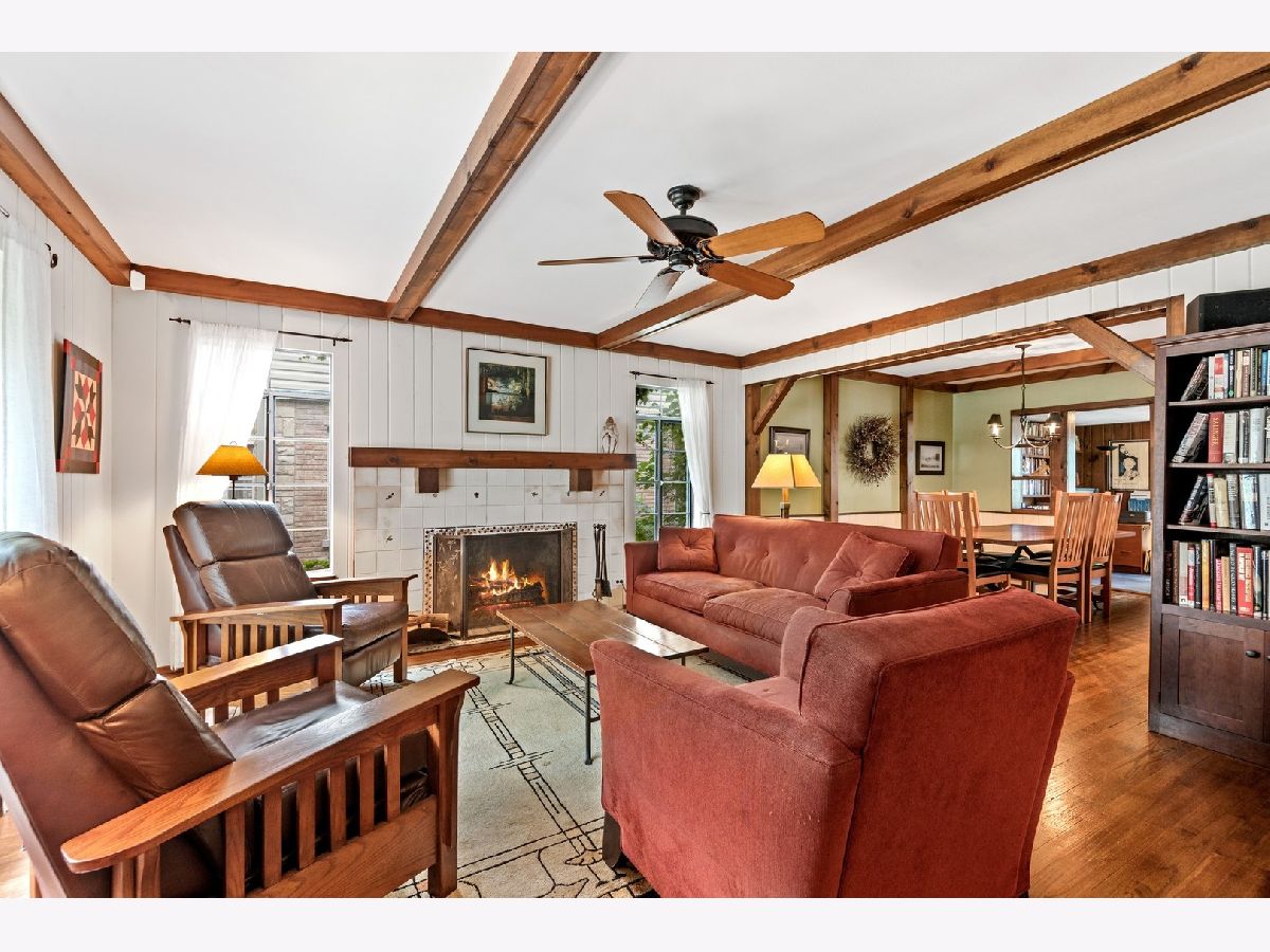 Unique and inviting two-story brick home has character inside and out. 3 bedroom, 2 bath. House offers a wonderful, open floorplan starting at the living room with beamed ceilings and a wood-burning fireplace. Adjoining this is a full separate dining room. Kitchen is strategically placed in the center of the home and looks onto the family room, opens into a breakfast room on one side and opens into a dining room on the other or open the front door and walk straight ahead to the kitchen. Across the back of the house is an office and a family room. Family room boasts a gas fireplace with brick surround, floor-to-ceiling book cases, Mexican tiled floors, wood cathedral ceiling with wooden beams and sliding glass doors out to the deck and nicely landscaped yard. The office has custom cabinetry and more built-in bookcases as well as another set of sliding glass doors to the back yard. The current owners have separated these rooms by creating a wall of books however there is access between these rooms. On the second floor you will find that the primary bedroom is generous in size and there is a nook area with closet and a dresser. Two more bedrooms and a full bath complete the second floor. The basement is full and unfinished and has tall ceilings. The attached one-car garage good for a car, good for storage, as there is a driveway for parking a car. New roof in 2020, the siding on the exterior was painted in 2017, the furnace is 2008, water heater 2005. Back of the house has newer windows.