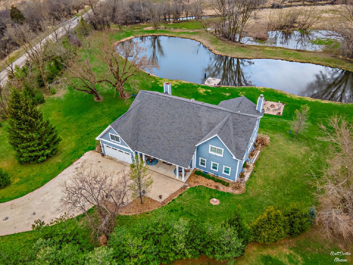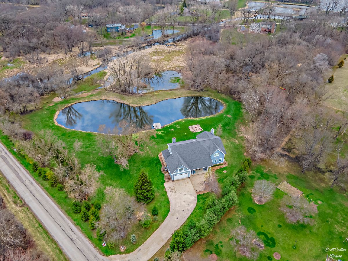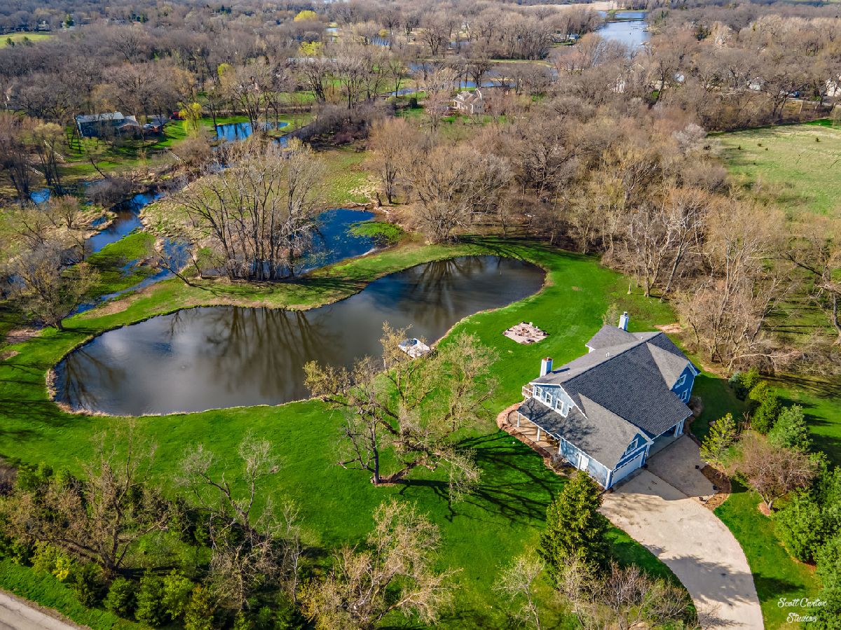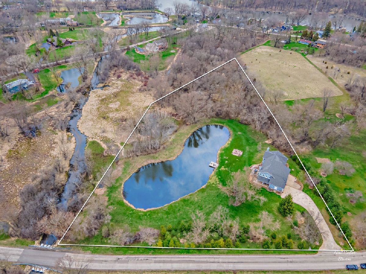 Over 5 ACRES of gorgeous PRIVATE ESTATE like property with your own FULLY STOCKED SPRING FED POND. Grand entrance into the spacious and inviting two-story foyer featuring marble flooring. Truly spectacular SCENIC WATERFRONT VIEWS greet you from every angle! UPDATED HOME completely remodeled with custom addition in 2015. 4000 SQ FT of finished space with 4 bedrooms and 3 bathrooms. WIDE OPEN FLOOR PLAN offers 9 ft ceilings and surround sound system on main level & 10 ft ceilings on 2nd level. CHEFS KITCHEN highlighted by HIGH END stainless steel appliances, huge custom CENTER ISLAND, built-in EATING AREA, and slate stone corner FIREPLACE. Welcoming family room with more views and additional wood burning fireplace. Gorgeous SLATE TILE and HARDWOOD flooring throughout main living spaces. Plus a Bedroom and Full Bathroom to complete the Main Level. Beautiful master suite with amazing walk-in closet that functions as the perfect DRESSING ROOM. Sliding BARN DOOR detail leads to master bath with marble flooring, huge shower, and SOAKING TUB. Generously sized additional bedrooms and updated bathrooms. Large closet on 2nd Level between bedroom and office was originally planned as an additional bathroom, so easy to convert to 3rd full bathroom. Basement offers 2000 SQ FT additional space to add on in any way you can dream up! Enjoy picturesque sunsets and beautiful water and wooded views all day long from your SPACIOUS DECK or WALK OUT LOWER LEVEL. Freshly painted exterior, attached garage, and attractive front porch. Relax and enjoy your serene surroundings; every detail has been considered here in this home you won't want to miss. So close to the Fox River for boating and natural recreation fun! Award winning PRAIRIE GROVE AND PRAIRIE RIDGE SCHOOLS.