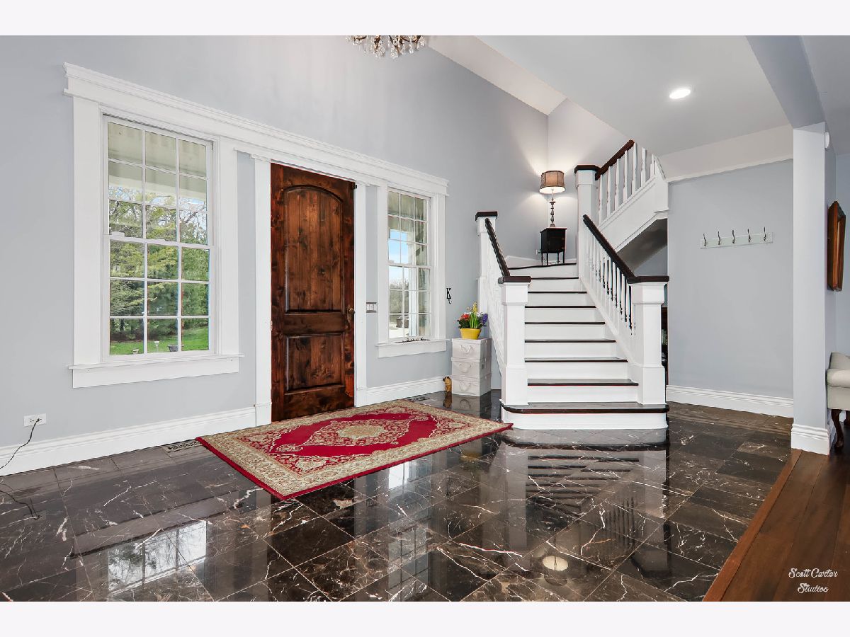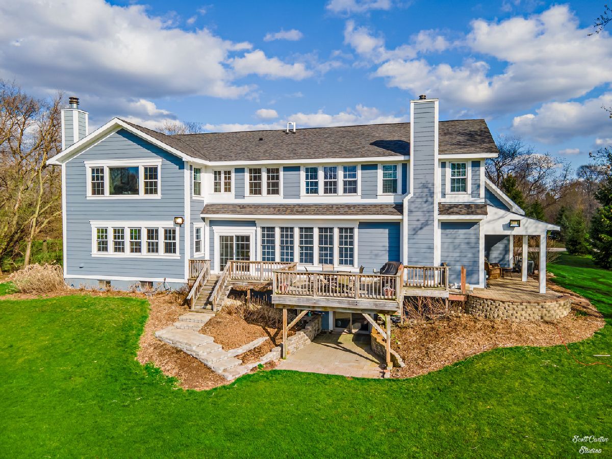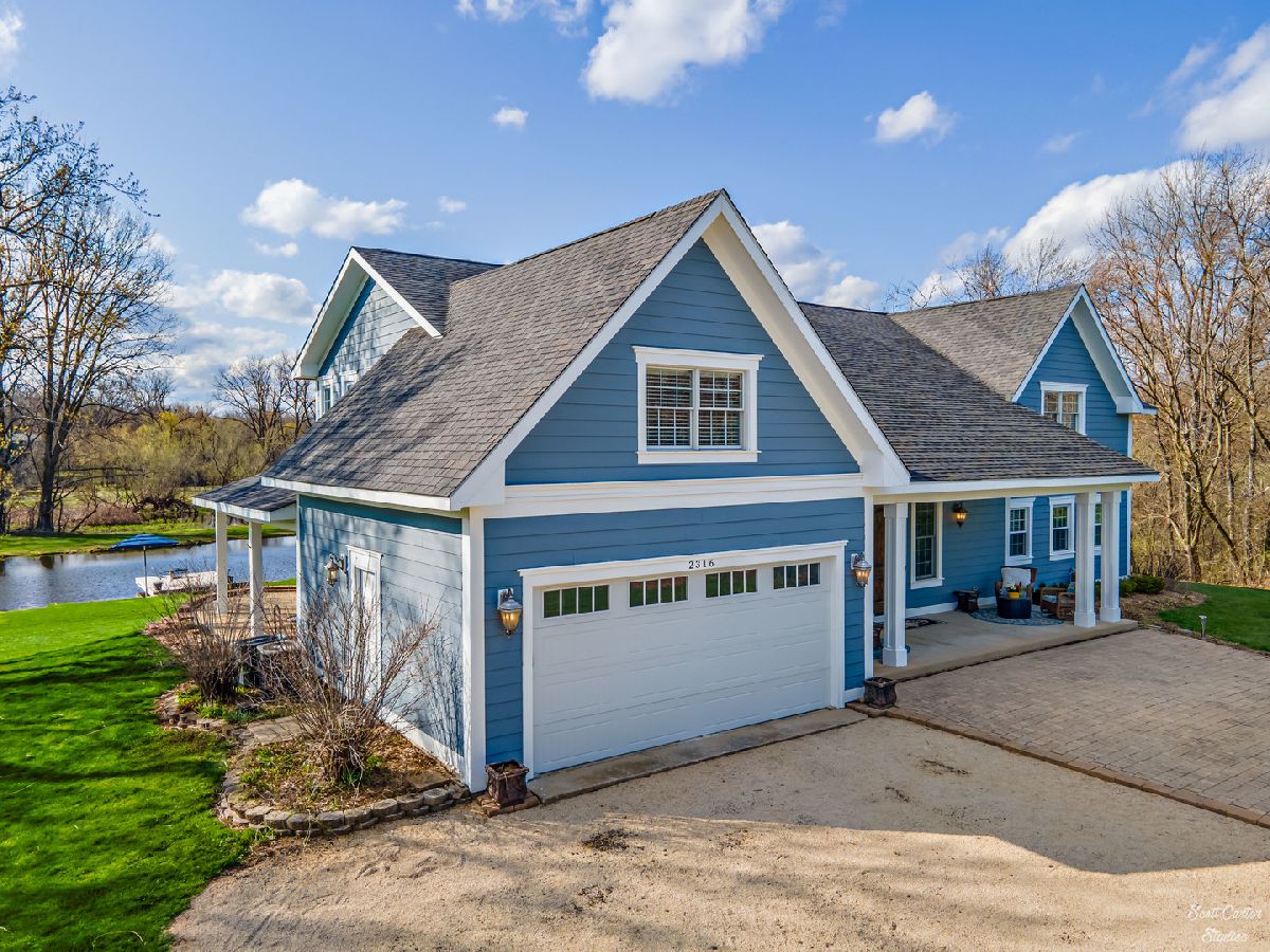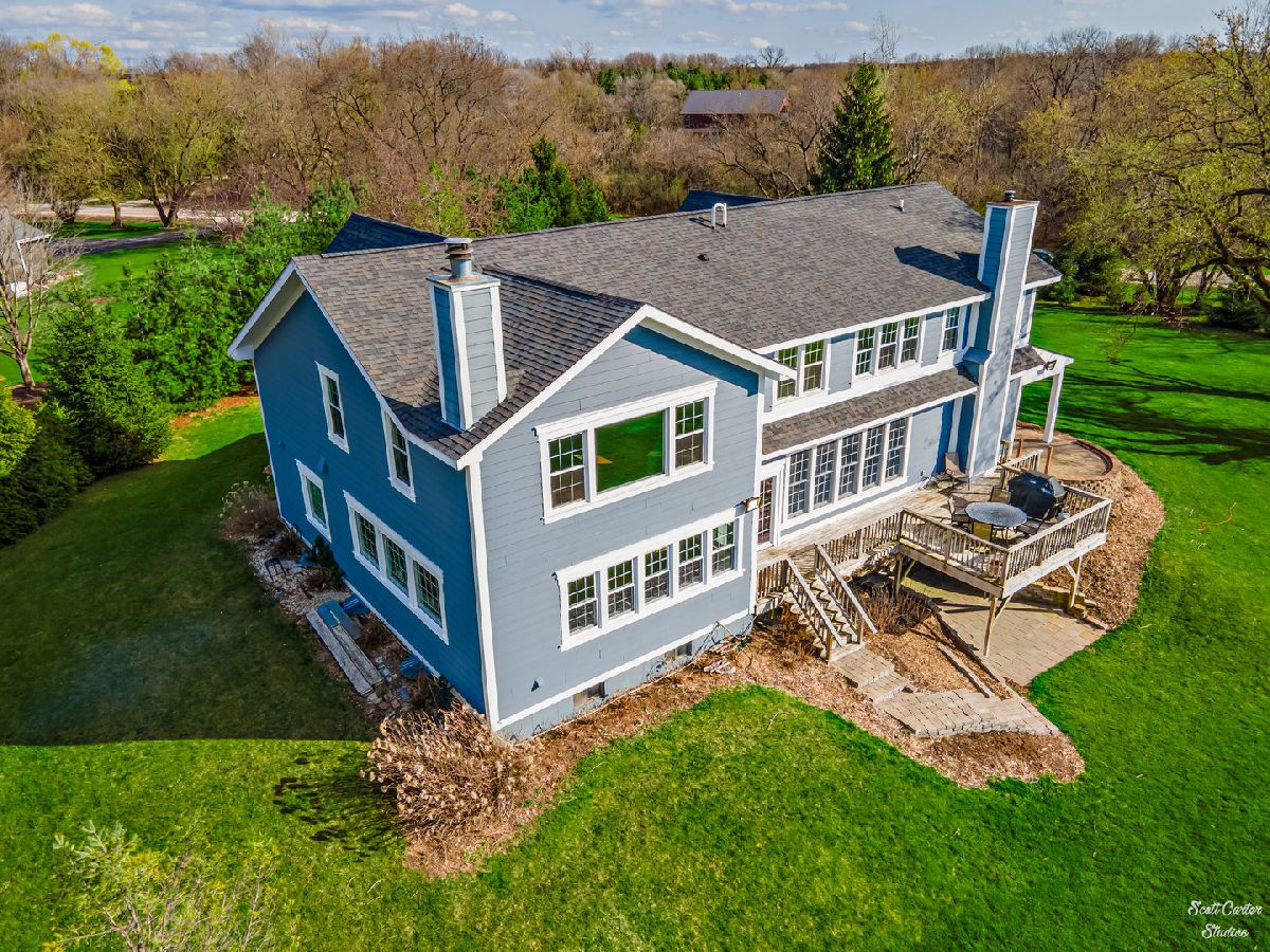 Over 5 ACRES of gorgeous PRIVATE ESTATE like property with your own FULLY STOCKED SPRING FED POND. Grand entrance into the spacious and inviting two-story foyer featuring marble flooring. Truly spectacular SCENIC WATERFRONT VIEWS greet you from every angle! UPDATED HOME completely remodeled with custom addition in 2015. 4000 SQ FT of finished space with 4 bedrooms and 3 bathrooms. WIDE OPEN FLOOR PLAN offers 9 ft ceilings and surround sound system on main level & 10 ft ceilings on 2nd level. CHEFS KITCHEN highlighted by HIGH END stainless steel appliances, huge custom CENTER ISLAND, built-in EATING AREA, and slate stone corner FIREPLACE. Welcoming family room with more views and additional wood burning fireplace. Gorgeous SLATE TILE and HARDWOOD flooring throughout main living spaces. Plus a Bedroom and Full Bathroom to complete the Main Level. Beautiful master suite with amazing walk-in closet that functions as the perfect DRESSING ROOM. Sliding BARN DOOR detail leads to master bath with marble flooring, huge shower, and SOAKING TUB. Generously sized additional bedrooms and updated bathrooms. Large closet on 2nd Level between bedroom and office was originally planned as an additional bathroom, so easy to convert to 3rd full bathroom. Basement offers 2000 SQ FT additional space to add on in any way you can dream up! Enjoy picturesque sunsets and beautiful water and wooded views all day long from your SPACIOUS DECK or WALK OUT LOWER LEVEL. Freshly painted exterior, attached garage, and attractive front porch. Relax and enjoy your serene surroundings; every detail has been considered here in this home you won't want to miss. So close to the Fox River for boating and natural recreation fun! Award winning PRAIRIE GROVE AND PRAIRIE RIDGE SCHOOLS.