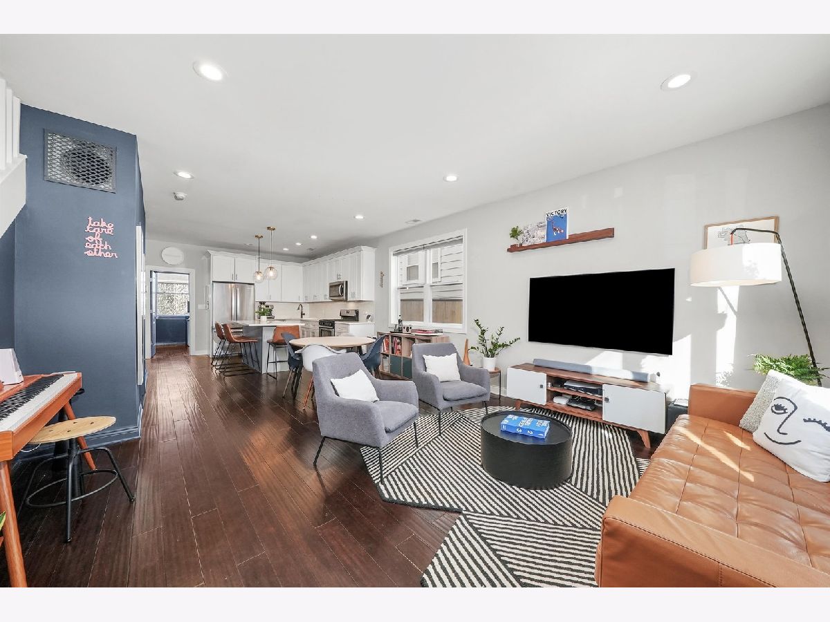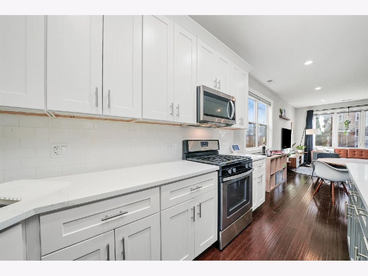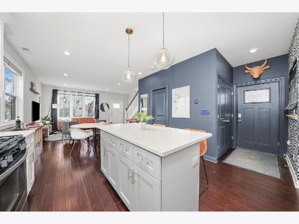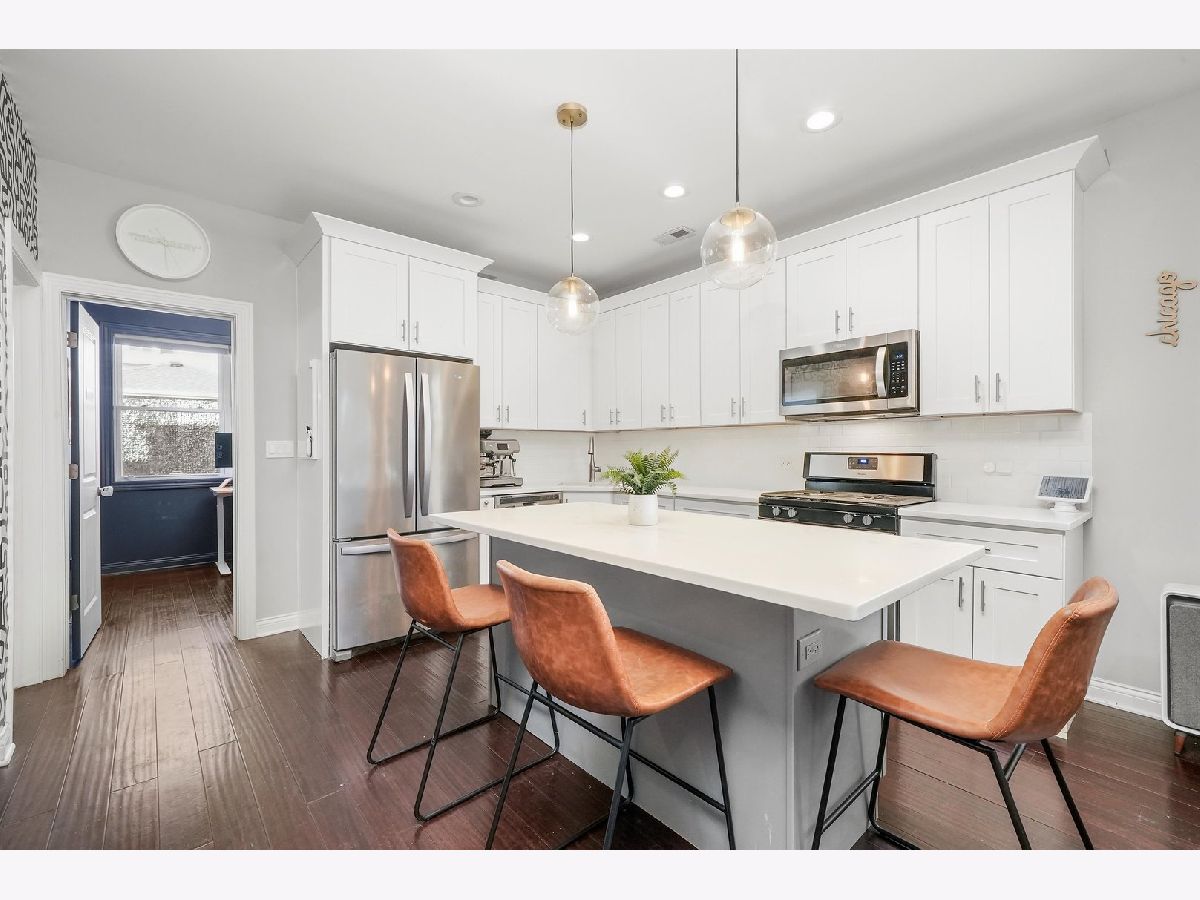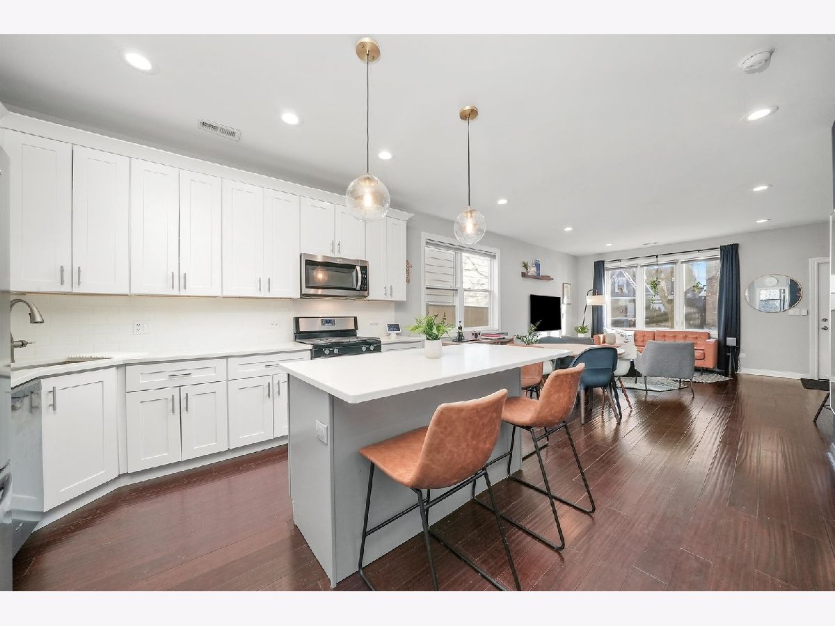 Stylish, Newer Construction home in Belmont-Cragin area just blocks from Metra Station, Riis Park and The Brickyard Shopping District! This open concept main living space is perfect for entertaining. It features a bright kitchen with plenty of cabinetry. Additional seating at the quartz counter island and more storage in the 1st fl laundry and pantry area. Main floor also includes a FULL bathroom and another bedroom with large closet. The living room windows brings in plenty of sun and have smart blinds! Take the gorgeous wooden staircase up to the Master Suite with Walk-In Closet! Bathroom has double sink vanity and walk in Shower. Two more generous sized bedrooms PLUS another full bathroom on the second level. The yard is also perfect for entertaining! NEW composite wood gates (2018), new fence (2021), new concrete (2020-2022). Home also includes a 2.5 garage plus car concrete pad. Make this your home today! Please Note: no Homeowner exemption on taxes; they will be lowered. See floor-plans and 3d walk through!!