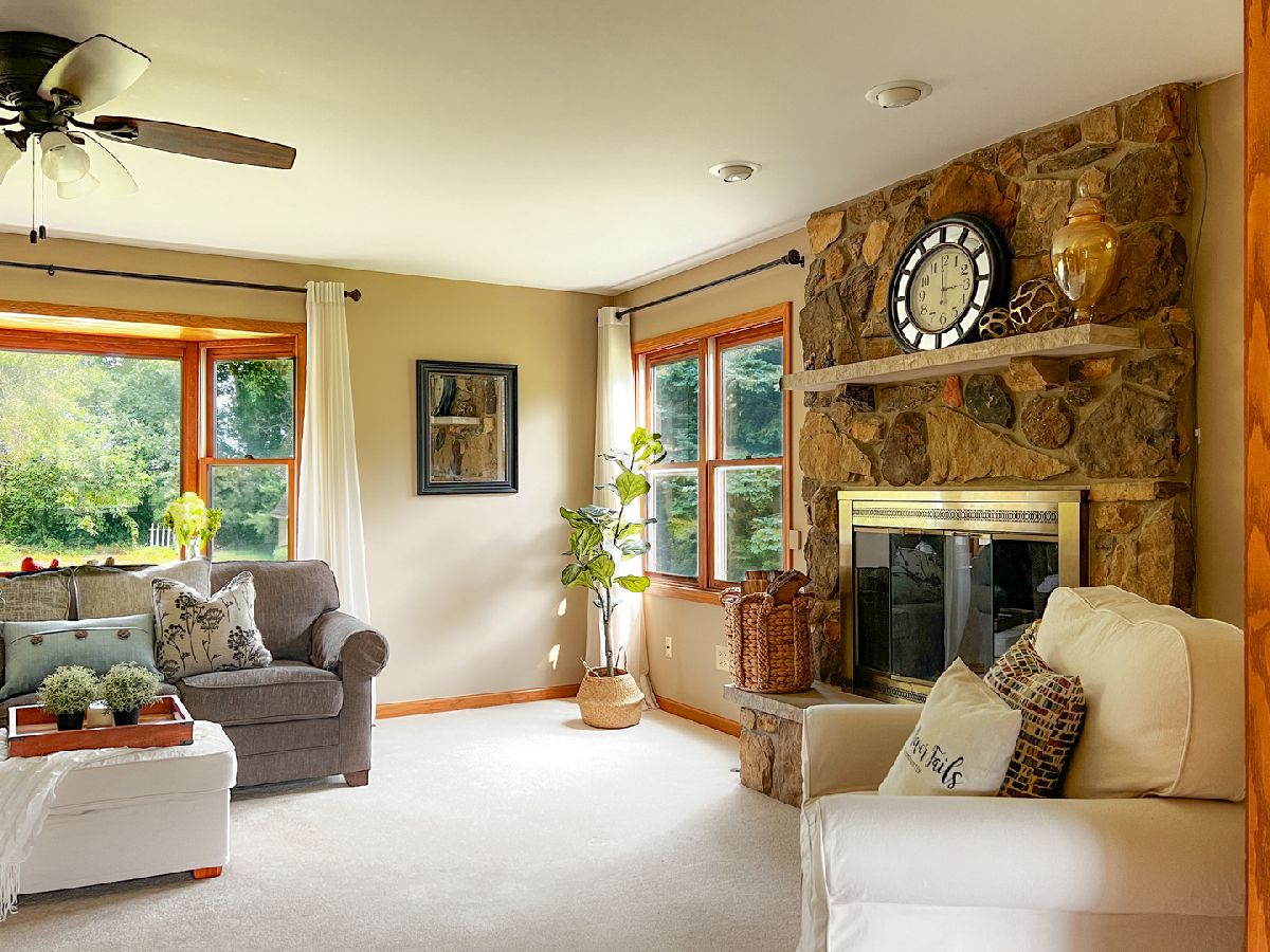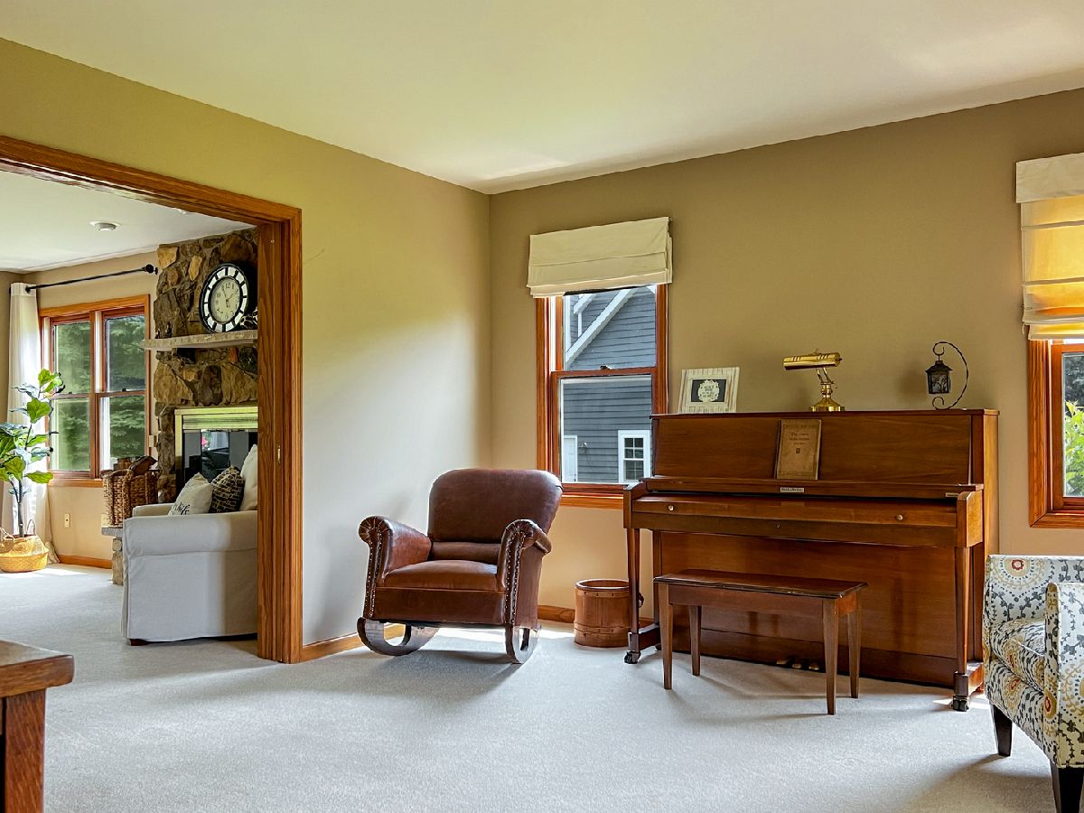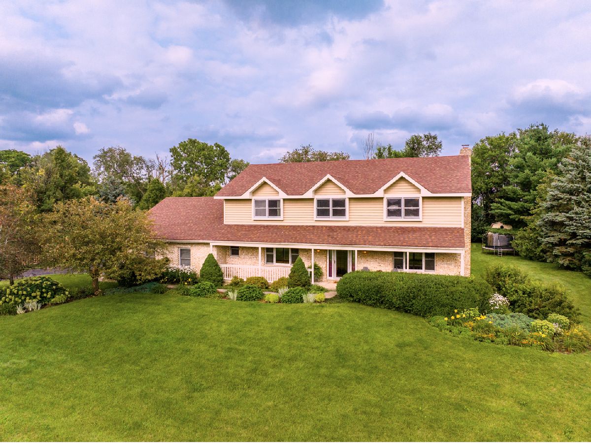 Experience the charm of country living in this meticulously maintained 4-bedroom house on a generous 1-acre lot in an exclusive, UNINCORPORATED neighborhood with its ESTATE homes and friendly community. NO HOA! Perfect for homesteading with space for CHICKENS and BEES, backing up to open farmland and riding trails. Just 8 minutes from shopping and the Woodstock Square, this QUALITY property features SPACIOUS rooms, hardwood flooring, solid core doors, and a stone gas fireplace. Gather around the 7ft ISLAND solving world problems... or just cooking together. Enjoy both the OPEN and PRIVATE spaces, 2 BAY WINDOWS, and first-floor living room/office ideal for REMOTE working. Additional highlights include a large primary suite, WALK-IN PANTRY, stainless appliances, 3-car garage, and a professionally landscaped yard with a DOG RUN. With over 2800 sqft of living space and a partially finished ENGLISH basement, this home offers ample space for functional living and entertaining. Don't miss the opportunity to live the quiet life on the massive covered FRONT PORCH, sipping coffee while watching the sun set over the trees. Exterior just painted, Furnace/ Air Conditioner (2017), Roof ~2015.