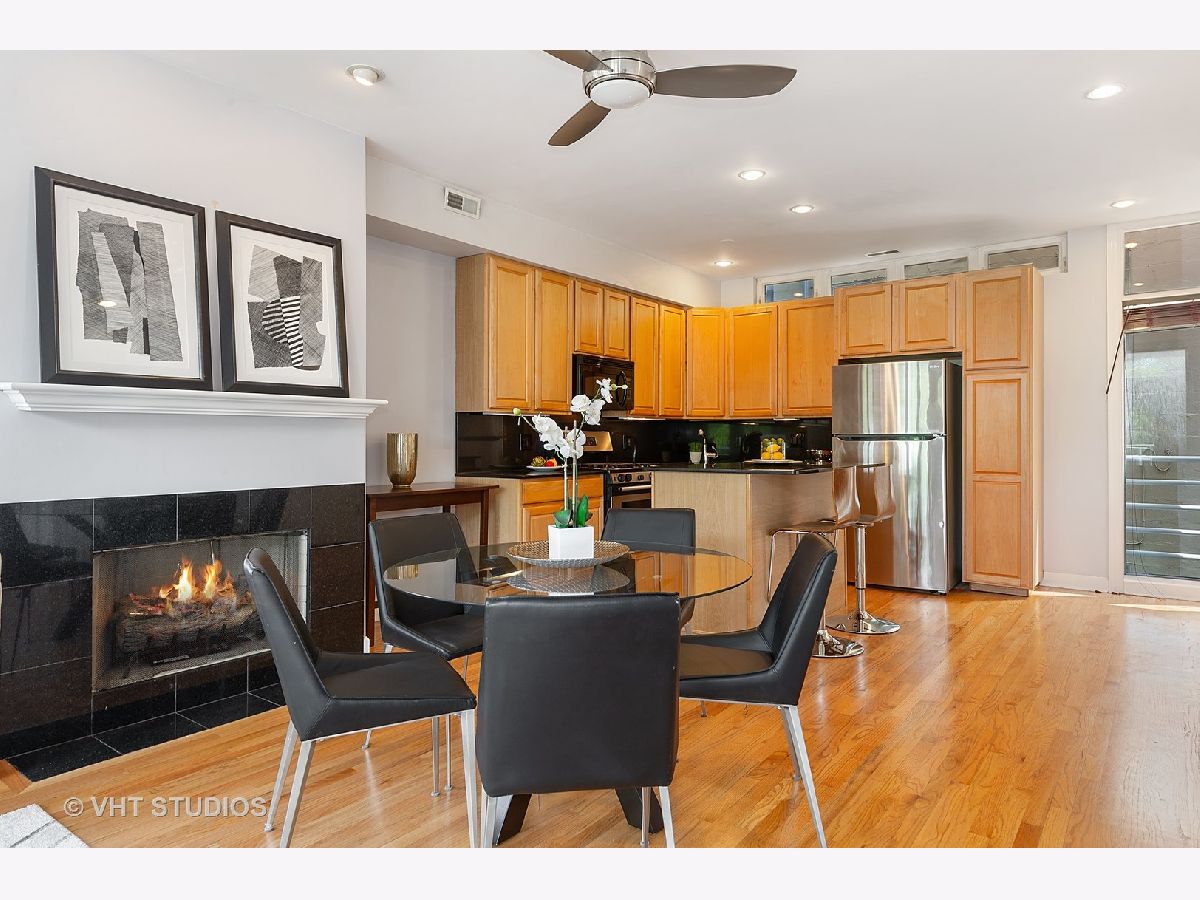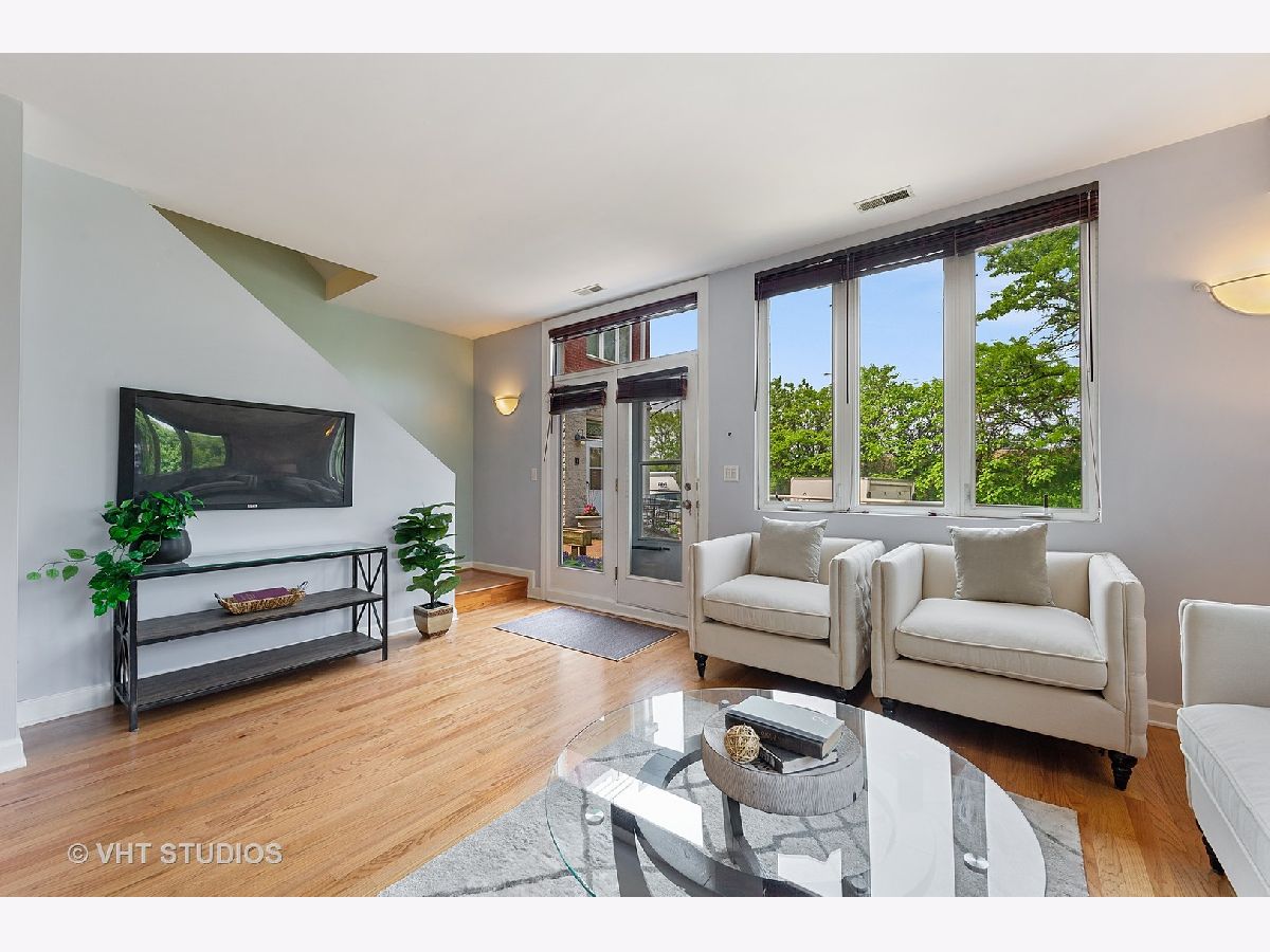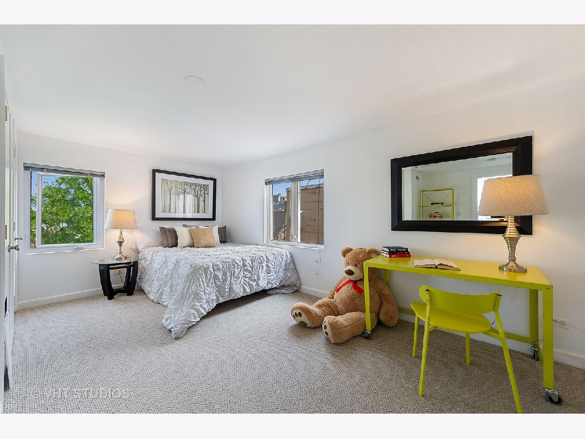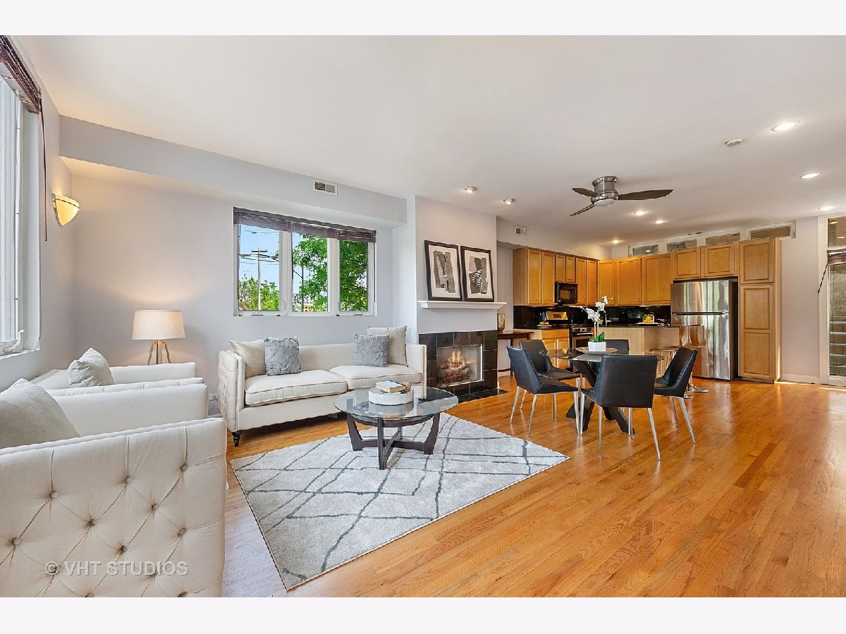 Bucktown sun filled corner town home is ready for you to move right in! Three incredible outdoor space includes a landscaped front terrace, private fenced in yard and roof top deck with city views. Bright main level with hardwood throughout, living room / dining room combo with gas fireplace and open kitchen with granite and stainless-steel appliances. Powder room and washer / dryer on main level . 2ndlevel features office / den and the master bedroom with attached bath. Third level offers an oversized 3rdbedroom and a private roof deck with great city views. The best part is the attached heated 2-car garage that is included in the price. Lives like a single-family home. Walk to the Blue line and all that Bucktown has to offer!