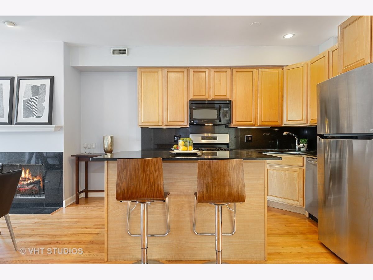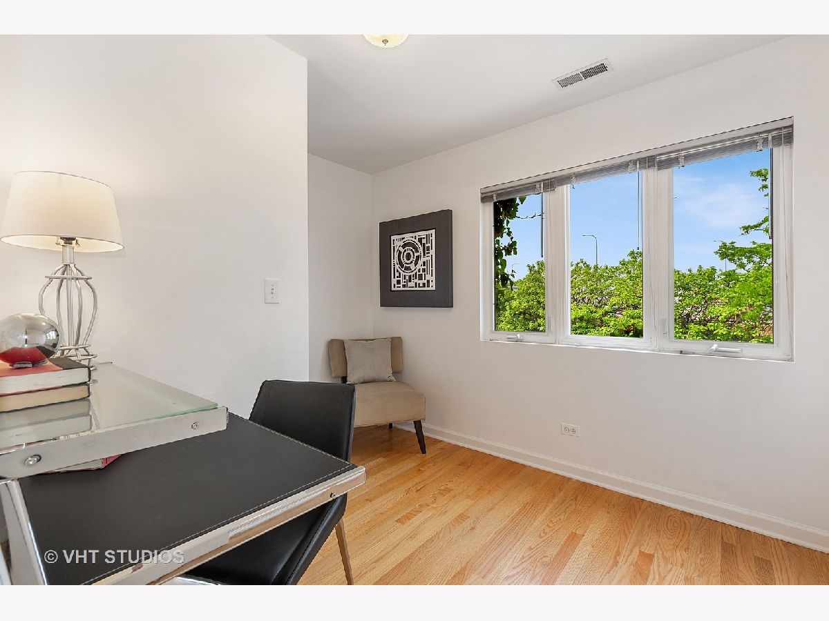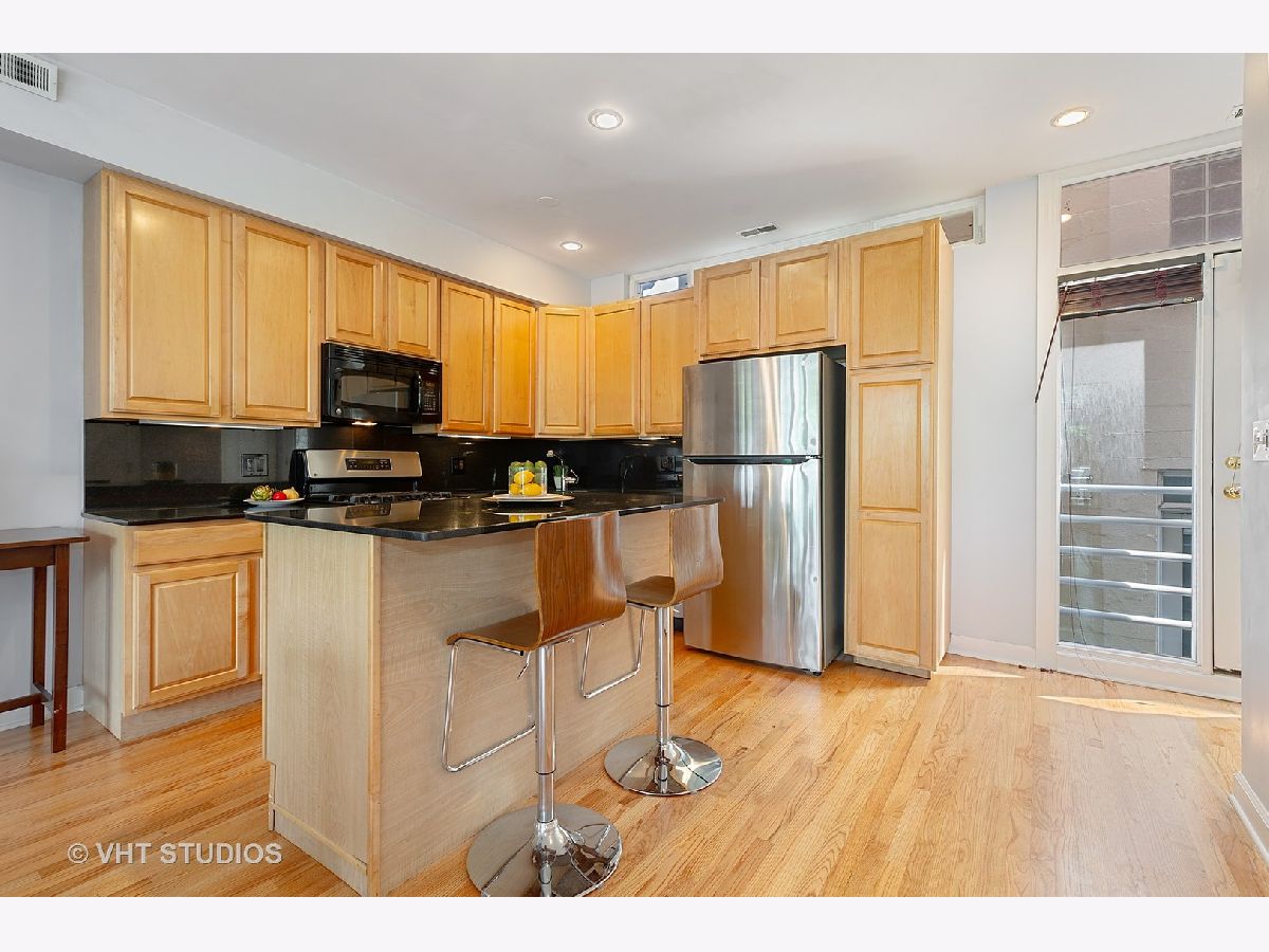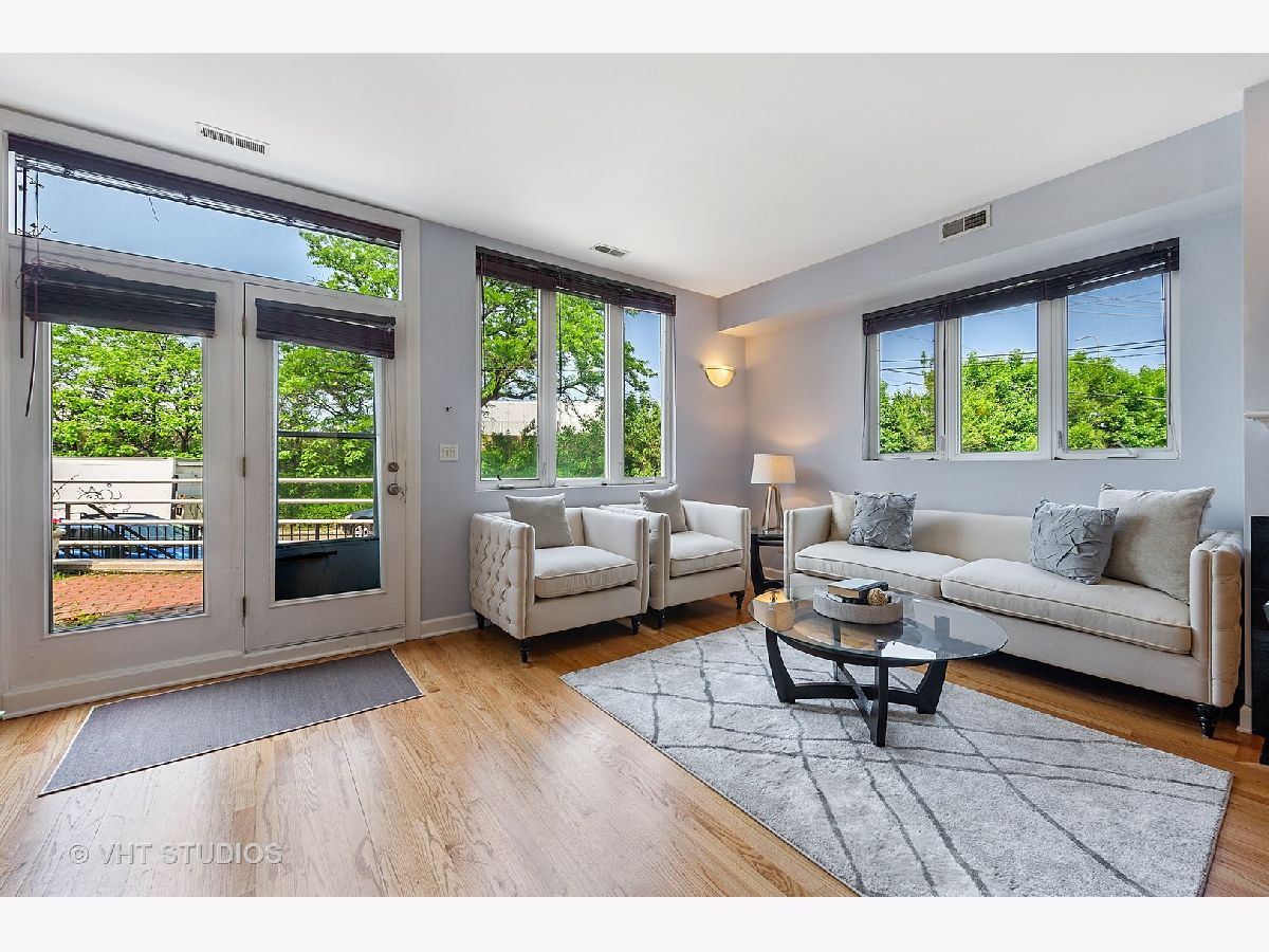Bucktown sun filled corner town home is ready for you to move right in! Three incredible outdoor space includes a landscaped front terrace, private fenced in yard and roof top deck with city views. Bright main level with hardwood throughout, living room / dining room combo with gas fireplace and open kitchen with granite and stainless-steel appliances. Powder room and washer / dryer on main level . 2ndlevel features office / den and the master bedroom with attached bath. Third level offers an oversized 3rdbedroom and a private roof deck with great city views. The best part is the attached heated 2-car garage that is included in the price. Lives like a single-family home. Walk to the Blue line and all that Bucktown has to offer!