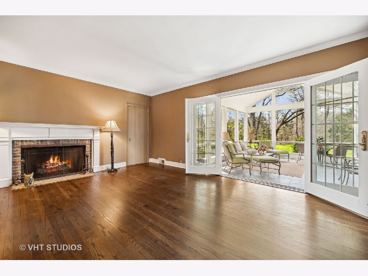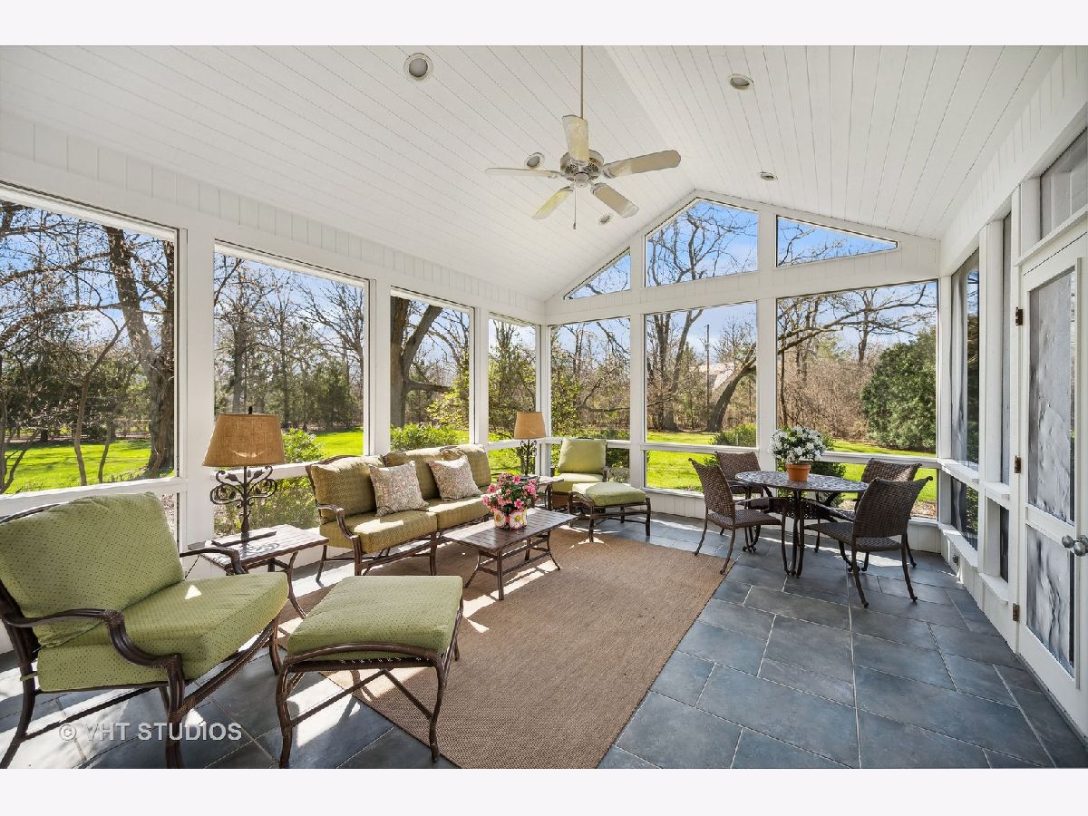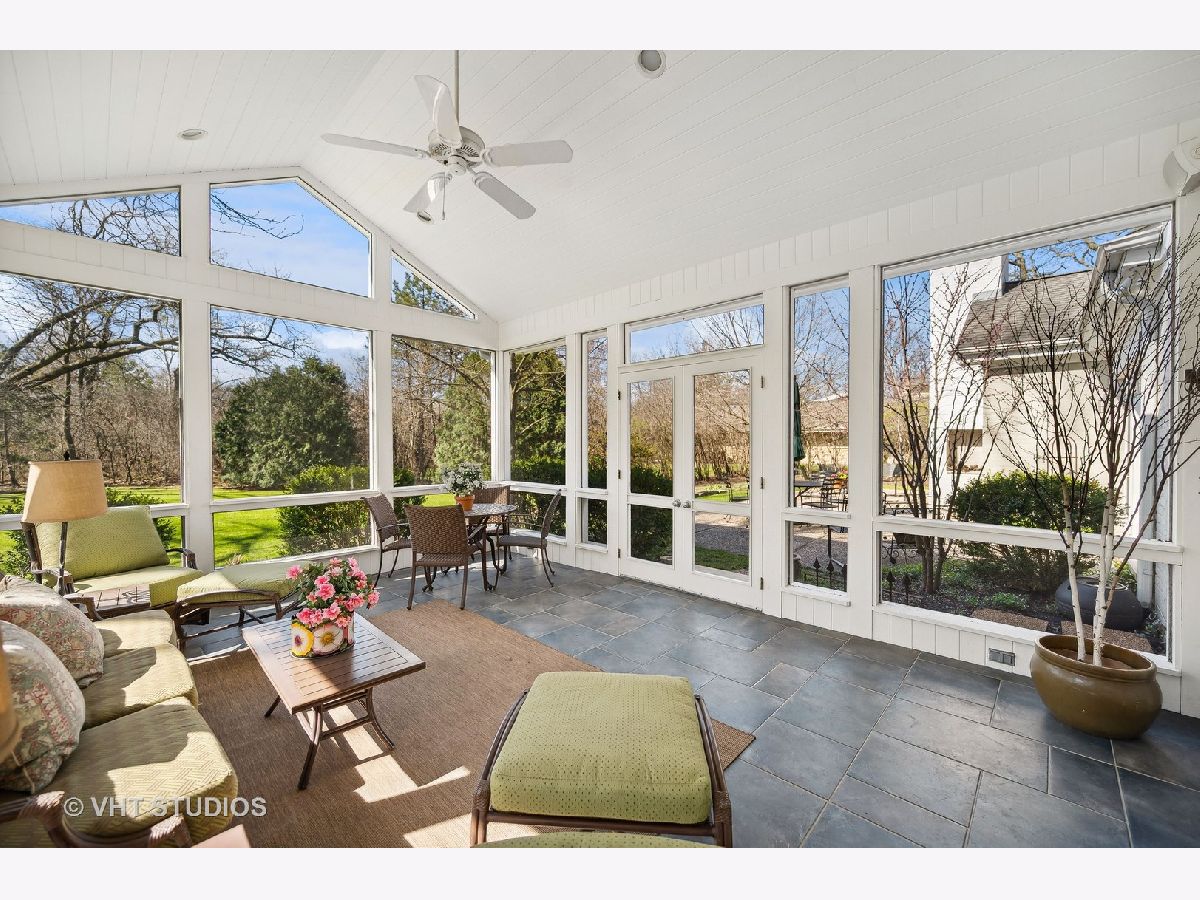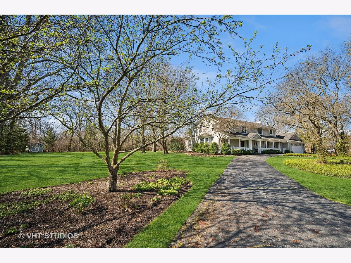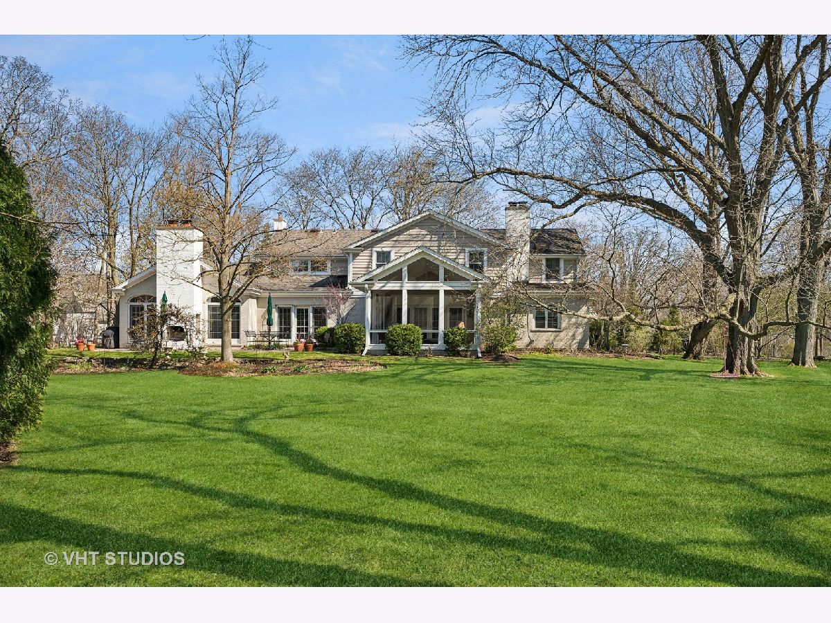Ultimate privacy awaits on a full acre parcel on this highly-coveted, tranquil lane. Surrounded by rolling lawns, this home is hard to believe. The first floor flows ideally amidst generously-sized entertaining rooms allowing your family and guests alike plenty of room to spread out. Hardwood flooring throughout is accentuated by multiple sets of French doors along the southern side of the home through which sunlight streams in. The newly rehabbed eat-in kitchen leads into the dining room which can accommodate well-attended dinner parties. Immediately adjacent is an immense, vaulted family room with a soaring fireplace indoors and a companion fireplace immediately outdoors on the stone patio. The first floor library could be used as an in-law/guest suite with its own fireplace, lovely bay window, floor to ceiling bookcase, walk-in closet and a full bath. The sought-after screened porch is afforded extra grandeur with its vaulted ceiling. The second floor boasts four bedrooms, three full baths, an open homework/craft room area, and convenient laundry room. The primary suite has a beautiful spa-like bath and walk-in closet. An attached 2.1-car garage affords ease of entry and the location is near to the expressway, tollway, commuter trains, and O'Hare. Northfield is known for its terrific schools and family-friendly community, a perfect village to call home.