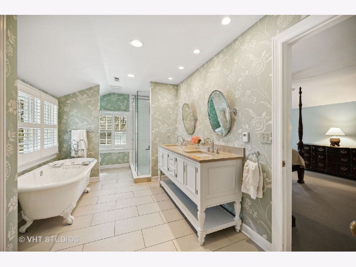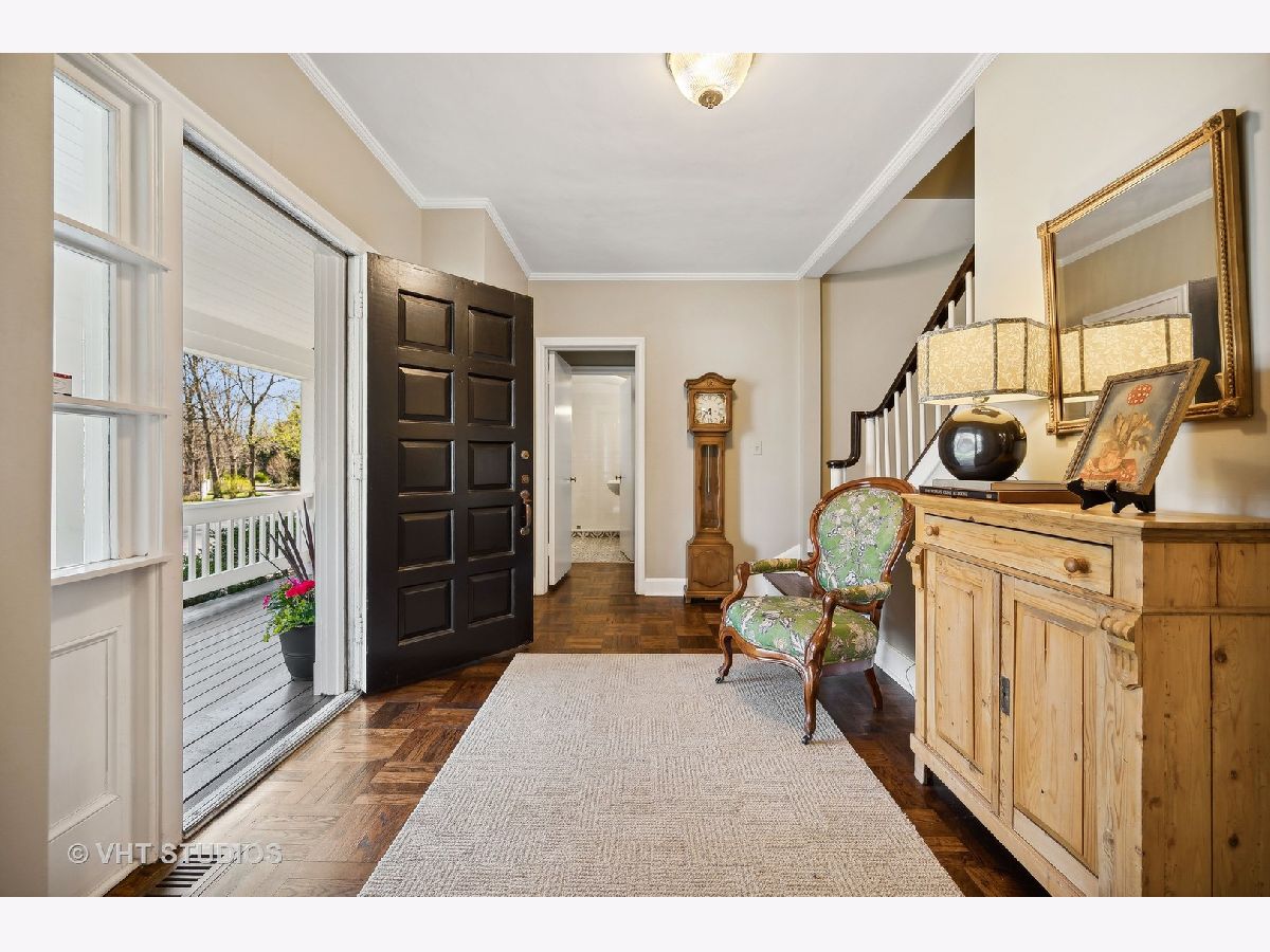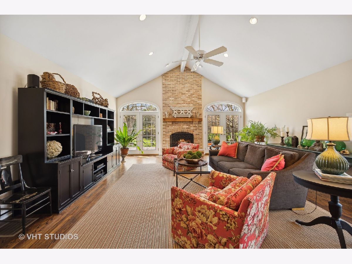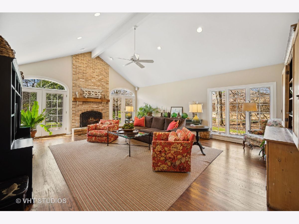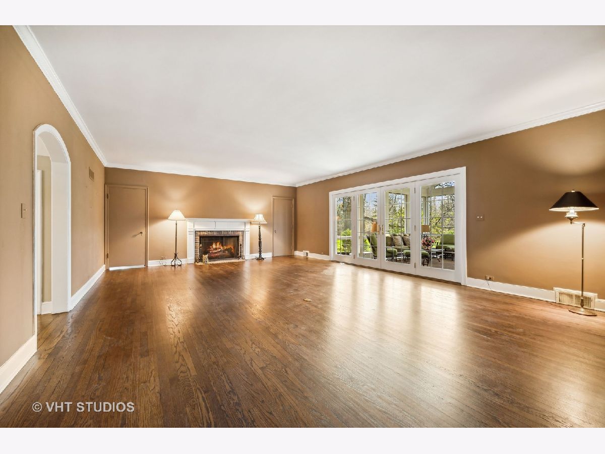 Ultimate privacy awaits on a full acre parcel on this highly-coveted, tranquil lane. Surrounded by rolling lawns, this home is hard to believe. The first floor flows ideally amidst generously-sized entertaining rooms allowing your family and guests alike plenty of room to spread out. Hardwood flooring throughout is accentuated by multiple sets of French doors along the southern side of the home through which sunlight streams in. The newly rehabbed eat-in kitchen leads into the dining room which can accommodate well-attended dinner parties. Immediately adjacent is an immense, vaulted family room with a soaring fireplace indoors and a companion fireplace immediately outdoors on the stone patio. The first floor library could be used as an in-law/guest suite with its own fireplace, lovely bay window, floor to ceiling bookcase, walk-in closet and a full bath. The sought-after screened porch is afforded extra grandeur with its vaulted ceiling. The second floor boasts four bedrooms, three full baths, an open homework/craft room area, and convenient laundry room. The primary suite has a beautiful spa-like bath and walk-in closet. An attached 2.1-car garage affords ease of entry and the location is near to the expressway, tollway, commuter trains, and O'Hare. Northfield is known for its terrific schools and family-friendly community, a perfect village to call home.