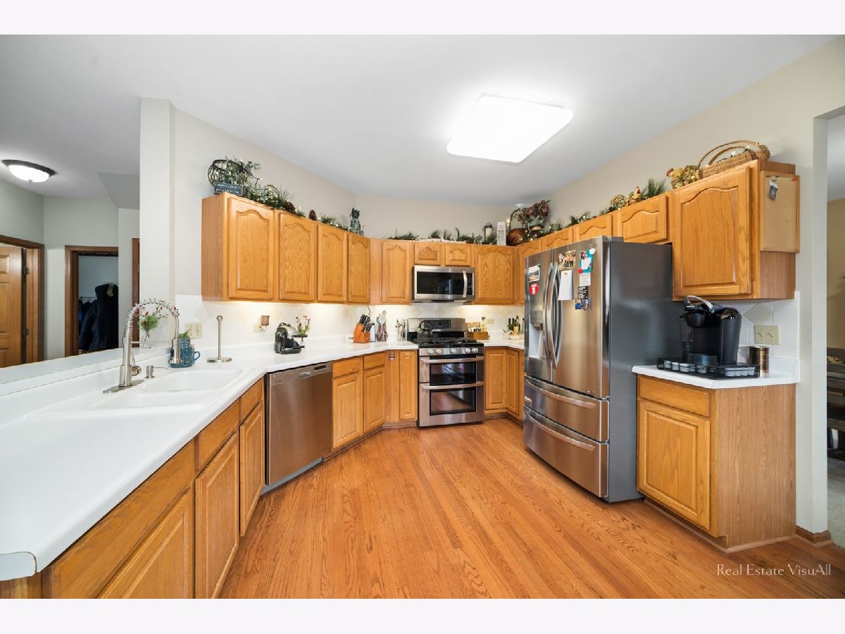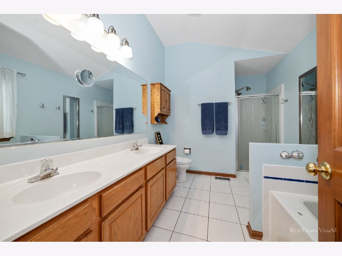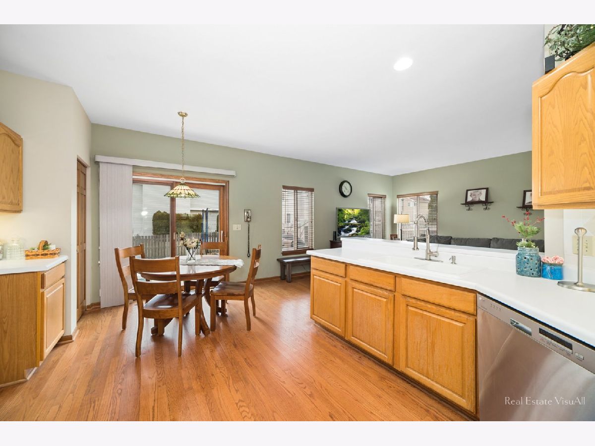 Sun filled two story home is sought after Westridge Subdivision! A two story foyer greets you with hardwood flooring, coat closet, send story window and steel insulated entry door with dual side lites. It opens to the living room which features plush neutral carpet, stained oak baseboards, blinds and opens to the dining room. The dining room offers plush carpet and stained oak trim as well as an updated ceiling light and kitchen access. The kitchen sparkles with hardwood flooring, oak cabinets, pantry closet, breakfast bar, stainless steel appliances, table space with decorative light and a slider to the patio. A family room is open to the kitchen and features hardwood flooring, neutral paint and oak trim. A powder room and laundry/mud room complete the first floor. The second floor is boasts a master suite with angled ceiling, decorative paint, oak trim, walk-in closet and private master bath. The bath sparkles with tile flooring, dual bowl vanity, soaker tub and separate shower. Three additional bedrooms feature plush neutral carpet, decorative paint and spacious closets. A full bath completes this floor with ceramic tile flooring, dual sink vanity and acrylic surround tub/shower. The basement is 3/4 finished with a rec room, game area and den. An unfinished area gives plenty of space for storage. A fenced yard boasts brick planters, concrete patio and landscaping. Other great features include an attached garage with new insulated door and wi-fi hook up, new roof w/50yr architectural grade shingles, new siding, HVAC New 2017, new sump pump w/battery back up, 3 Ring cameras, 3rd car driveway apron. All this on a professionally landscaped lot that has an in subdivision school and is minutes from METRA, Shopping and the Expressways.