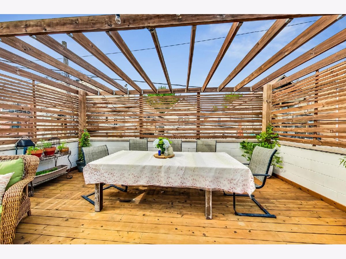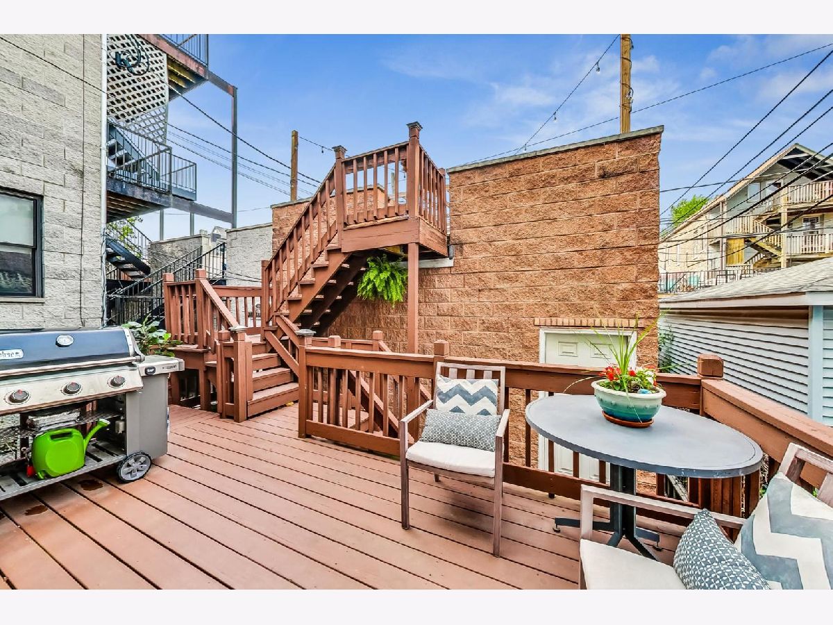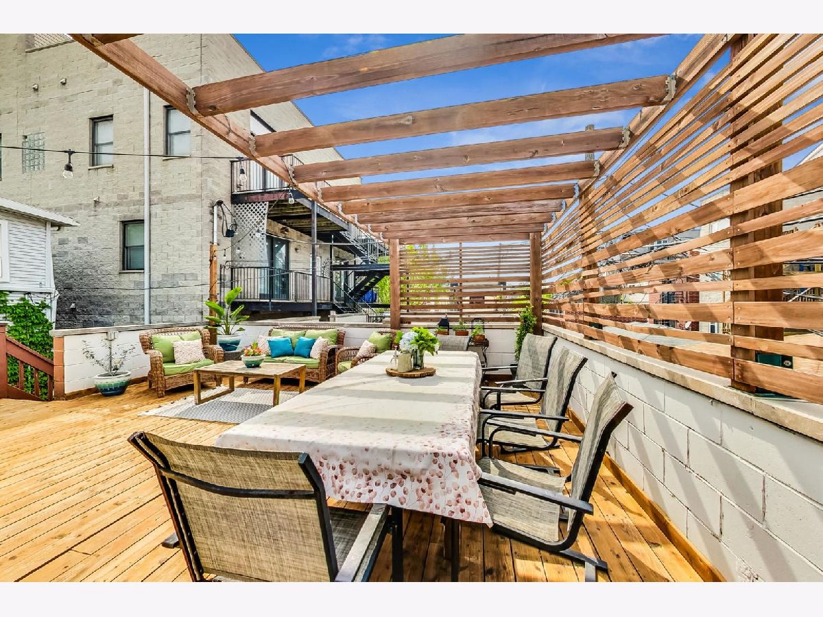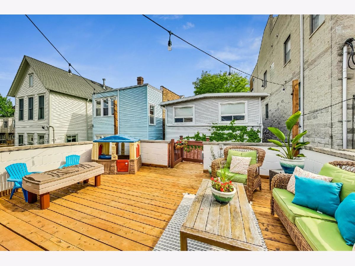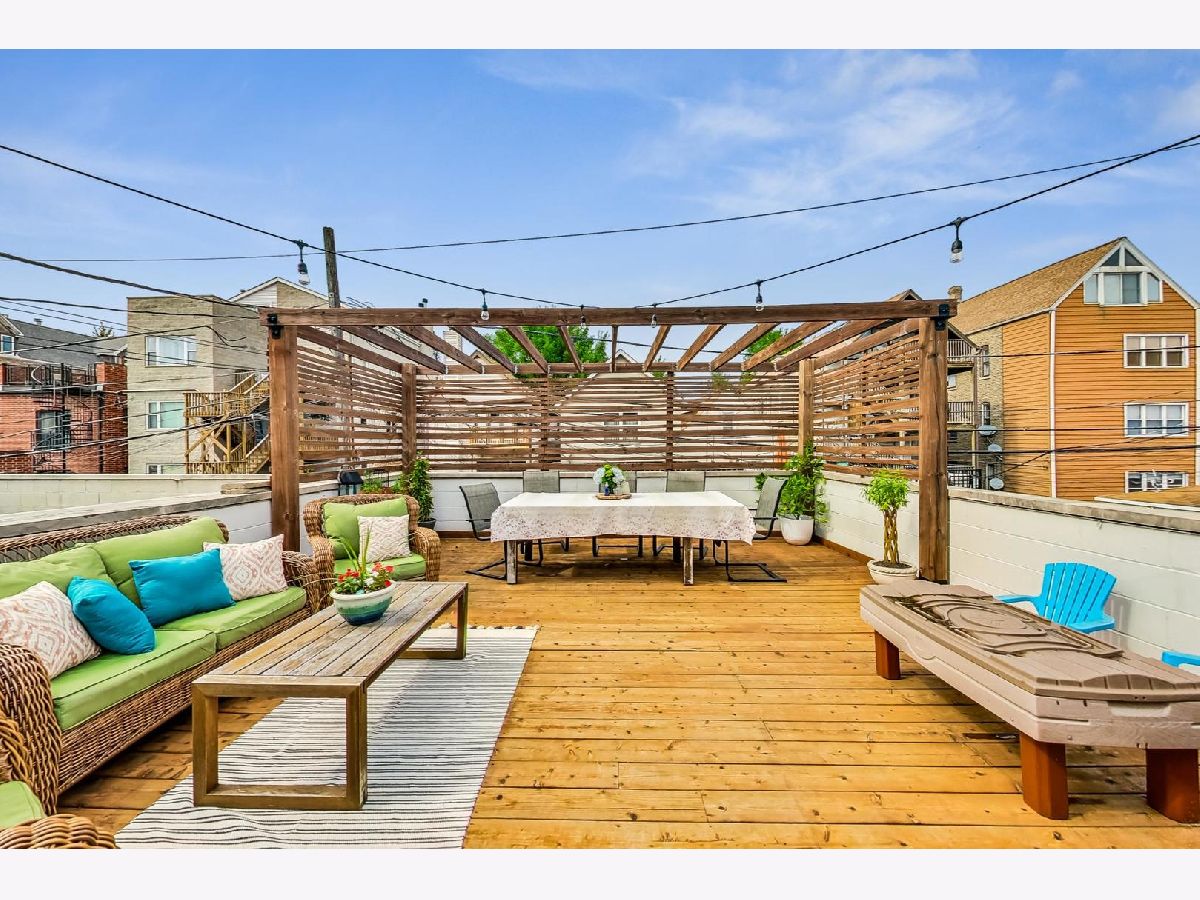 Charming & chic 5 bedroom Bucktown home over looking a picturesque park with towering trees and a community garden in the acclaimed Pulaski IB boundary! Sunlight dances across the newly refinished hardwood floors in the flowing open floorplan on the main level. Cook away in the stylish white kitchen with white marble tile backsplash, black granite counters and a breakfast bar. Updated mid-century mod powder room! Your home will function so much better with this lovely mud room - all the extra space for storage and play and even work from home! The mudroom then leads out a 2 tiered deck with a full ROOFTOP DECK - ideal for grilling & chilling! Highly desired 2nd level floorplan with 3 full bedrooms upstairs, en-suite primary bath and 2nd full bath upstairs. Retreat to your King sized primary suite with vaulted ceilings, sky lights, a wall of closets and the perfect desk nook adorned by a custom blue accent wall. Step into the spa-like bathroom with oversized double vanity, double marble shower with shower sprays and a giant soaker tub! Many recent updates include new hardwood stairs converting this once an income generating 2 flat into a now single family home with 5 bedrooms! New carpet and wet bar in the family room ideal for that extra recreational space and full ceiling height! The additional 2 bedrooms are great for guests and an office! New 2021 garage roof, 2023 EV charger and a CEDAR roof top deck creating an outdoor oasis! Enjoy evenings under the Pergola with strings of twinkle lights while the little ones will have a ball at the turf playground under the deck - complete with a slide & swings! Premium Bucktown location - Senior Citizen Park is out your front door leading to Holstein Park - where you can swim all Summer long for FREE & play at the parks and Fieldhouse all year round! Walk to a number of shops & restaurants from tacos to burgers, to Asian - infusion, to Margie's Candies, Red June coffee, Leavitt St Inn and soo many more!! Easy access to the Blue Line & the highway - live the good life here!