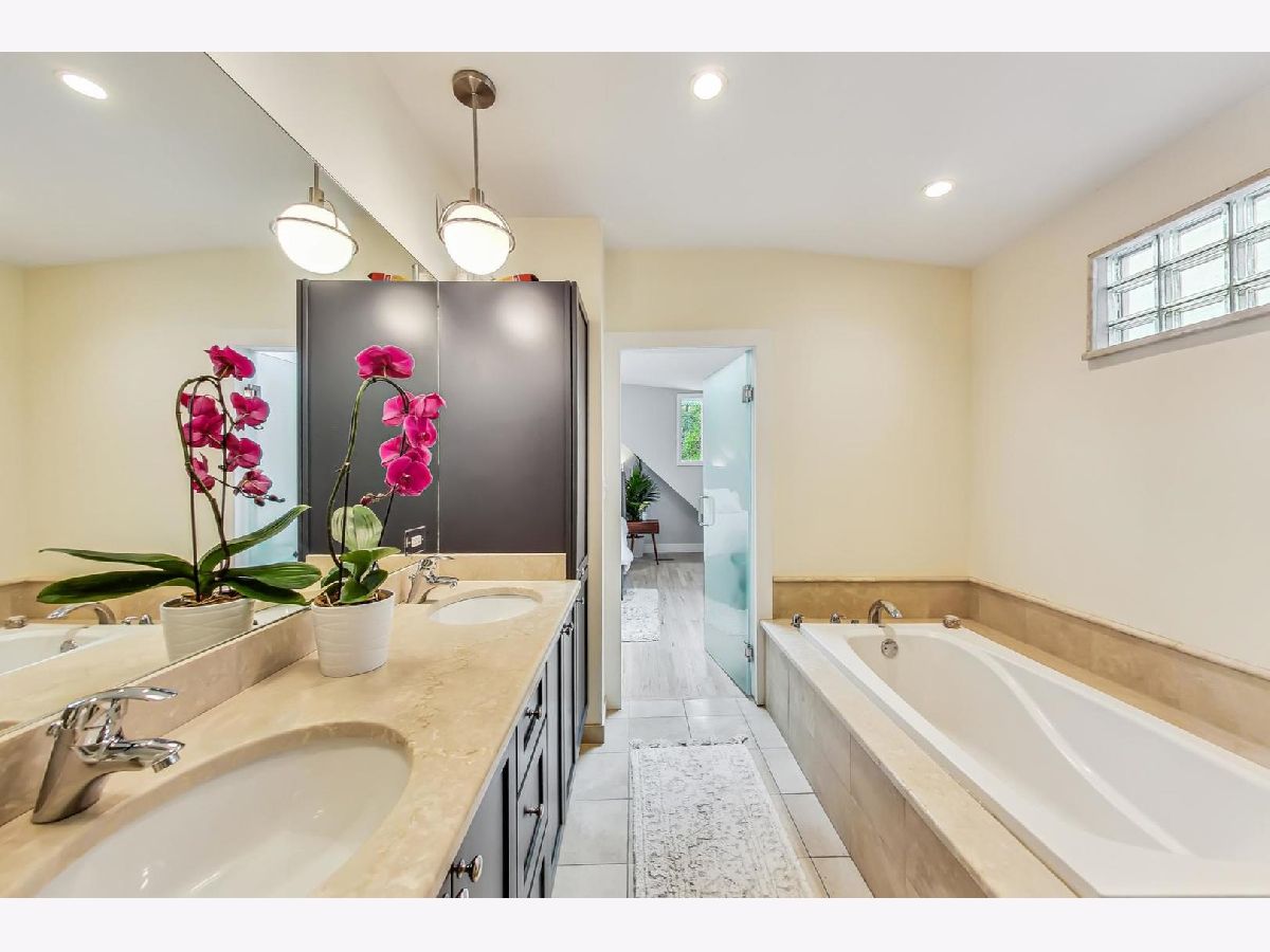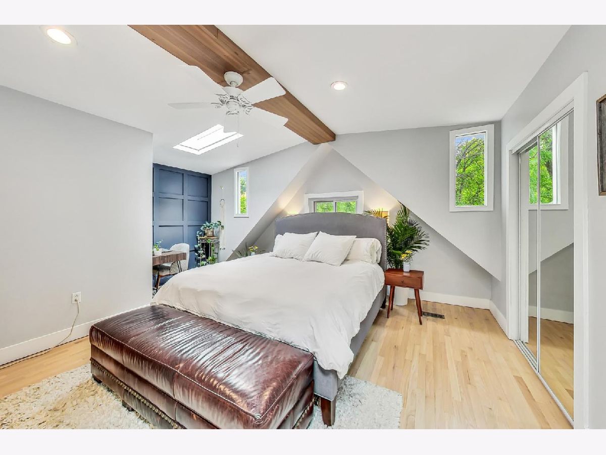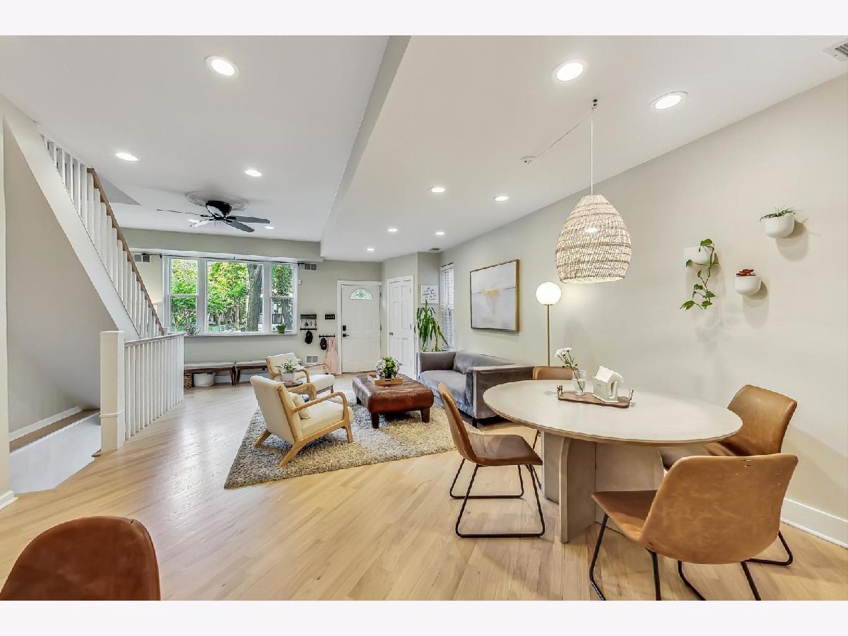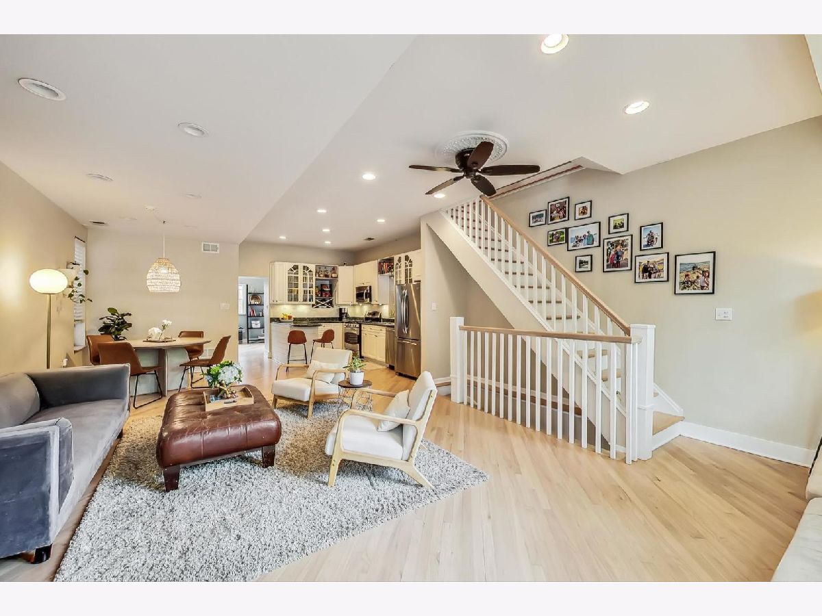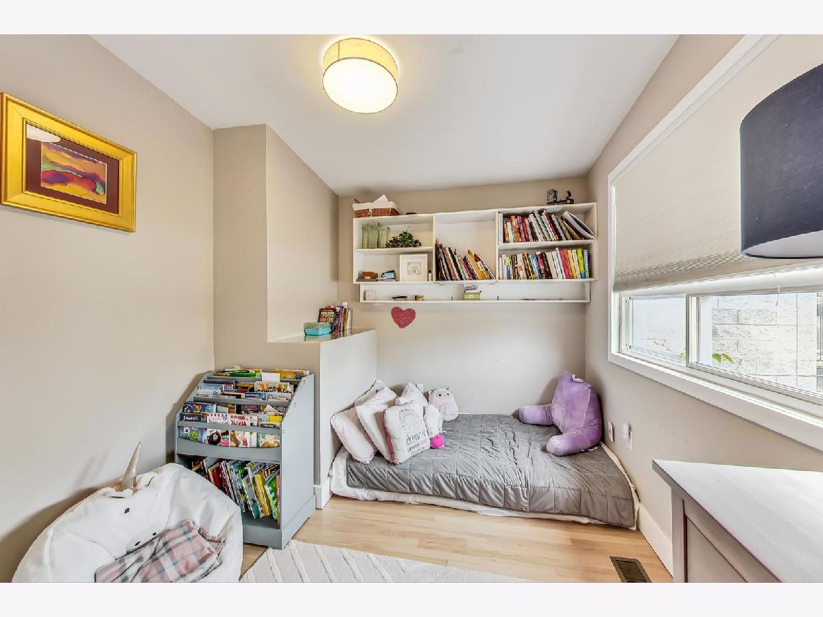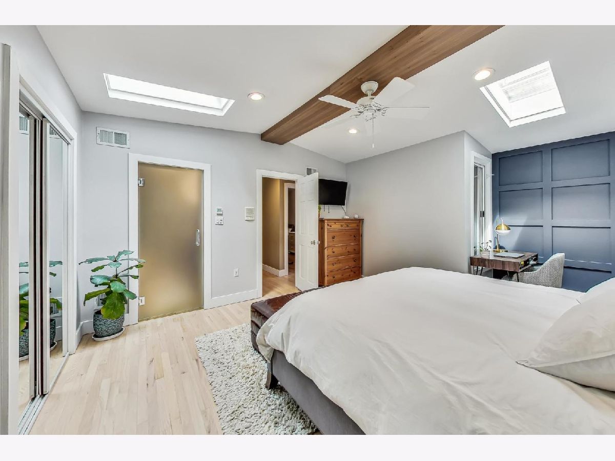 Charming & chic 5 bedroom Bucktown home over looking a picturesque park with towering trees and a community garden in the acclaimed Pulaski IB boundary! Sunlight dances across the newly refinished hardwood floors in the flowing open floorplan on the main level. Cook away in the stylish white kitchen with white marble tile backsplash, black granite counters and a breakfast bar. Updated mid-century mod powder room! Your home will function so much better with this lovely mud room - all the extra space for storage and play and even work from home! The mudroom then leads out a 2 tiered deck with a full ROOFTOP DECK - ideal for grilling & chilling! Highly desired 2nd level floorplan with 3 full bedrooms upstairs, en-suite primary bath and 2nd full bath upstairs. Retreat to your King sized primary suite with vaulted ceilings, sky lights, a wall of closets and the perfect desk nook adorned by a custom blue accent wall. Step into the spa-like bathroom with oversized double vanity, double marble shower with shower sprays and a giant soaker tub! Many recent updates include new hardwood stairs converting this once an income generating 2 flat into a now single family home with 5 bedrooms! New carpet and wet bar in the family room ideal for that extra recreational space and full ceiling height! The additional 2 bedrooms are great for guests and an office! New 2021 garage roof, 2023 EV charger and a CEDAR roof top deck creating an outdoor oasis! Enjoy evenings under the Pergola with strings of twinkle lights while the little ones will have a ball at the turf playground under the deck - complete with a slide & swings! Premium Bucktown location - Senior Citizen Park is out your front door leading to Holstein Park - where you can swim all Summer long for FREE & play at the parks and Fieldhouse all year round! Walk to a number of shops & restaurants from tacos to burgers, to Asian - infusion, to Margie's Candies, Red June coffee, Leavitt St Inn and soo many more!! Easy access to the Blue Line & the highway - live the good life here!