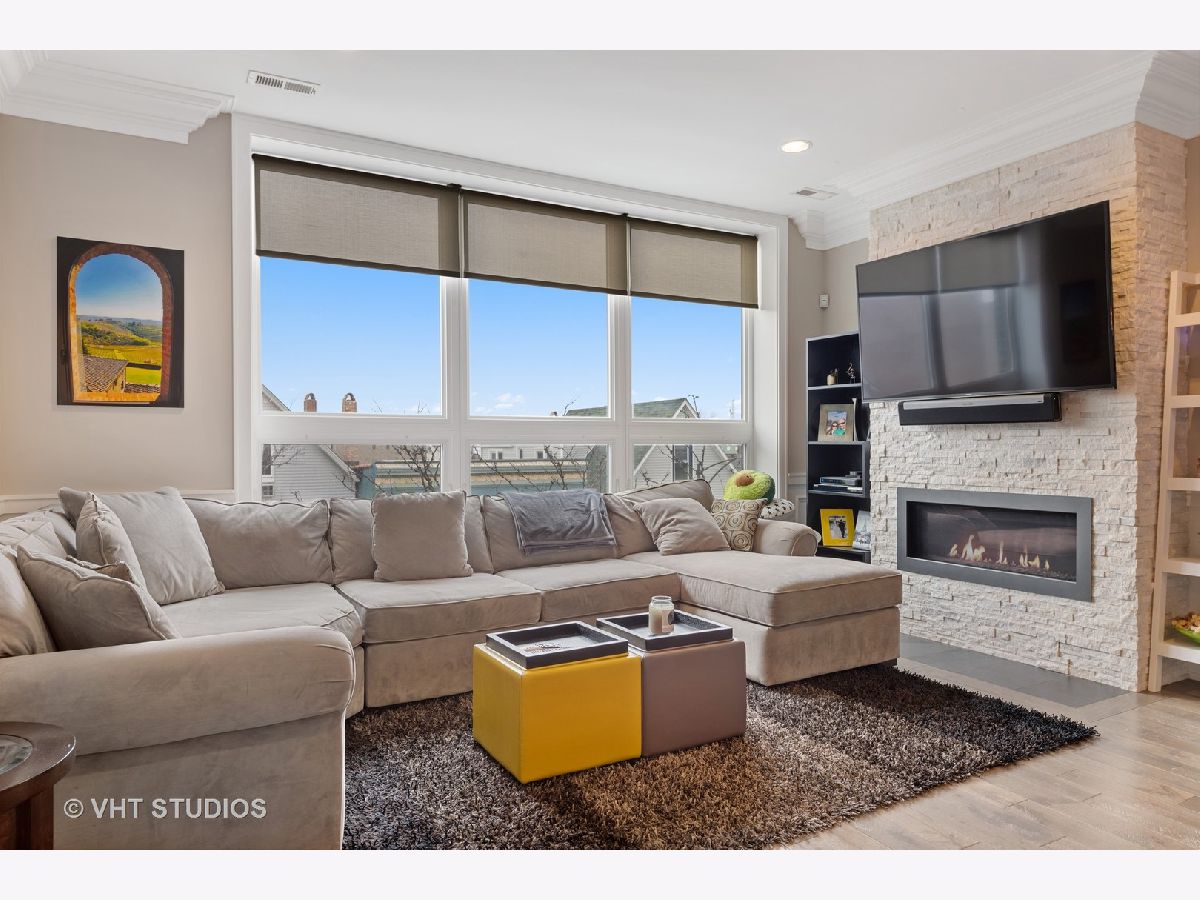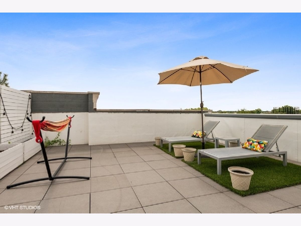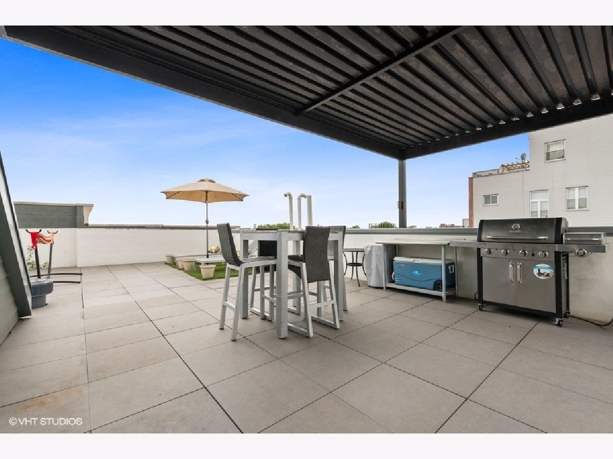 Spectacular 3 bedroom/2 bathroom PENTHOUSE with PRIVATE ROOFTOP DECK and GARAGE PARKING in the heart of Roscoe Village and Level 1+ Audubon District. This space is a perfect combination of sleek style and well-planned functionality. Rich hardwood floors and custom millwork, which are continued throughout the property, welcome you to the spacious open concept living/dining room complete with stacked stone fireplace, floor-to-ceiling windows, and custom window treatments. The space flows seamlessly into the pristine white kitchen with top-of-the-line Fisher Paykel stainless steel appliances, kitchen island, mosaic backsplash, and quartz counters. The master bedroom features dramatic tray ceilings, a private balcony. A luxurious master bathroom with heated floors, dual vanities with Grohe fixtures, whirlpool tub and separate rain shower with body spray, and a custom California walk-in closet complete this relaxing space. Two additional large bedrooms, and a full bath with soaking tub round out the main level. A stunning grand staircase leads upstairs to the private rooftop deck which spans the entire footprint of the unit and features a pergola, gas fireplace, grill, built-in planters, enough space for true outdoor living, and stunning city views. Additional features include: private storage space, wine cooler, custom kitchen cabinetry, WiFi thermostat, Sonance surround sound speakers, in-unit laundry. Fantastic Roscoe Village location with close proximity to schools, multiple bus routes, Hamlin Park, Mariano's, Jewel-Osco, Kennedy Expressway and all of the wonderful shops and restaurants Roscoe Village has to offer. Pet-friendly!