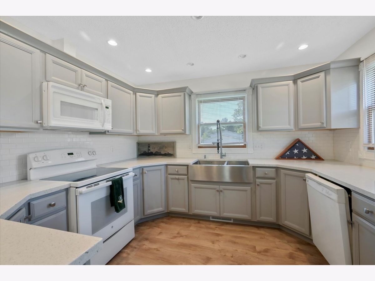 Classic Southwood split level with an oversized two car garage that is 27' deep. Nice deck off the living room and a full fenced back yard. Upstairs has the sought after open floorplan and an updated kitchen with solid surface counters. This house has the advantage of two full bathrooms on the upper level with the second bathroom off the main bedroom which few Southwood split levels have. Lower level has a walk out family and a flex room with egress that can function as a 4th bedroom or a great home office/den. Hardwood floors in the bedrooms and a new concrete walk in front. New flooring upstairs! Ready for your buyers. All appliances stay with the house but are deeded as-is. Sellers willing to offer credit for decorating.