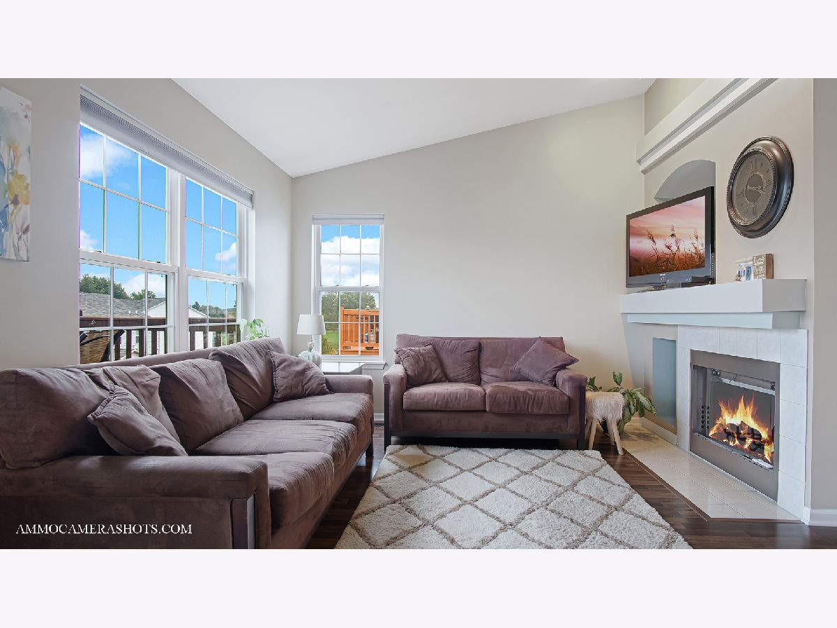 Beautiful condo in Naperville w/over 1500 sq ft! 2 car garage. Right away you will notice the soaring ceilings and tons of natural light. Kitchen has 42 inch maple cabinetry, loads of counter space, a pantry & a huge peninsula. Open living room, dining room and kitchen make it great for entertaining. Cozy family room with a fireplace & media niche. Generous sized master bedroom with a huge walk in closet and master bath. Second bedroom, another full bath, and the laundry room are right down the hall. Large deck to relax on. Cul-de-sac location with a huge park and walking path. Close to shopping, restaurants, train & I88!