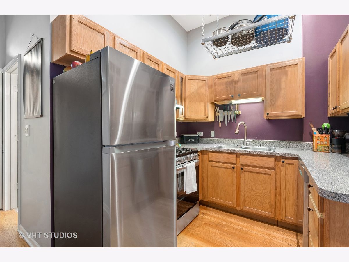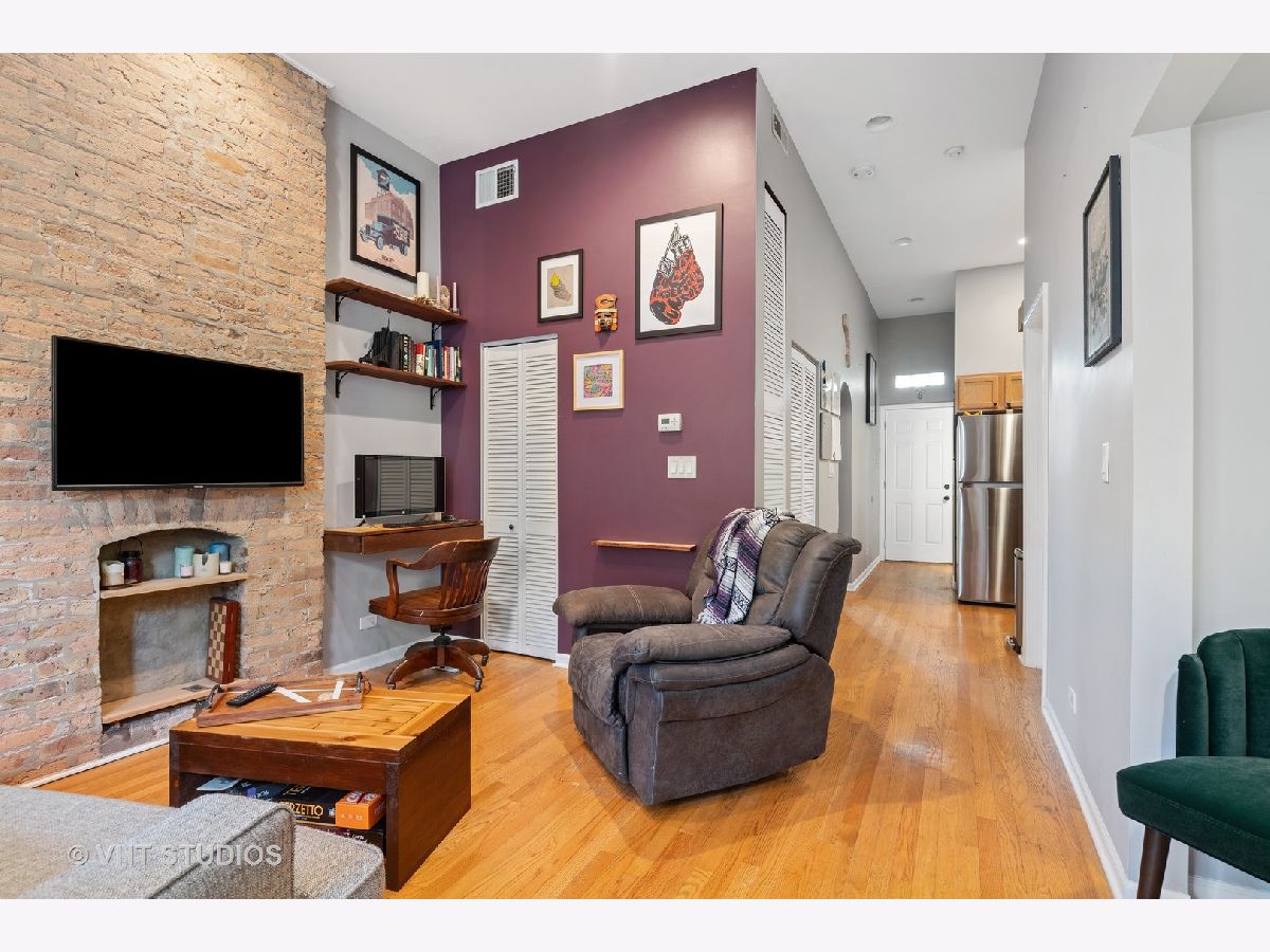 Incredible curb appeal from this utterly charming vintage rehab in Tri-Taylor. You are welcomed into this light-filled home with a delightful bay window + exposed brick wall. Nook to the right of the entryway holds endless possibilities for a reading nook, bar area, built in office and more. Hardwood flooring + 10' ceiling height throughout. Well-appointed kitchen with brand new stainless steel appliances. Bedroom features new LVT flooring and a generous closet. Fabulous oversized deck perfect for grilling, relaxing + entertaining. In unit W/D. One gated, exterior parking space included in the price. Minutes to medical district, UIC, public transportation + I-290.