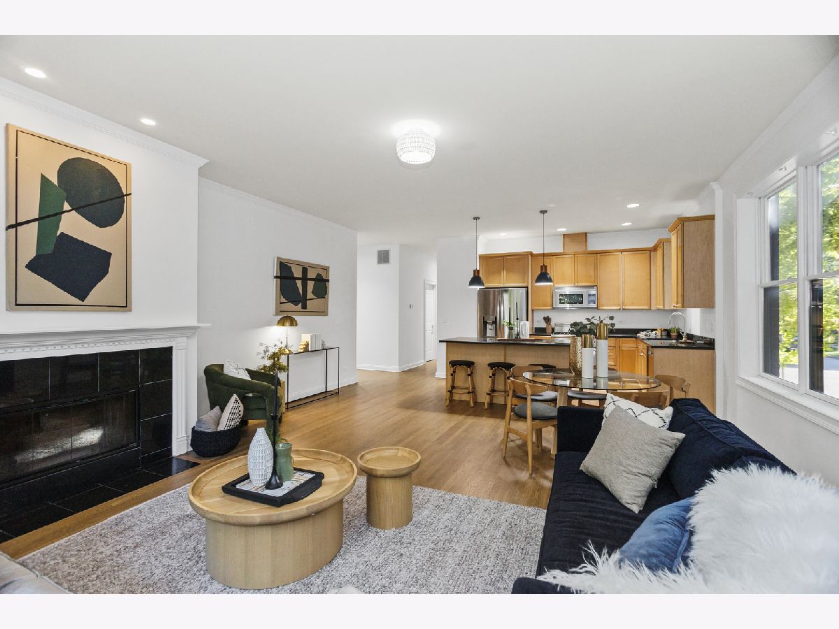 Perfectly located across from Welles Park in Coonley school district, this all brick duplex boasts 3 bedrooms and 3 full baths with a total of 2600 square feet of living space. This one-of-a-kind home is flooded w/ natural light w/ 2 exposures, white oak hardwood floors throughout the main level which includes an x-wide living/dining area w/ a front balcony overlooking the park & a fireplace. Open kitchen w/ stainless steel appliances, 42" maple cabinetry, granite counters w/ an island. Massive chef's pantry plus an oversized storage room. Full basement includes 10 foot ceilings, a third bedroom and office nook, complete with hardwood floors. Refinished floors on the main level and fresh paint throughout awaits new owners. Prime Lincoln Square/North Center location walking distance to the EL!
