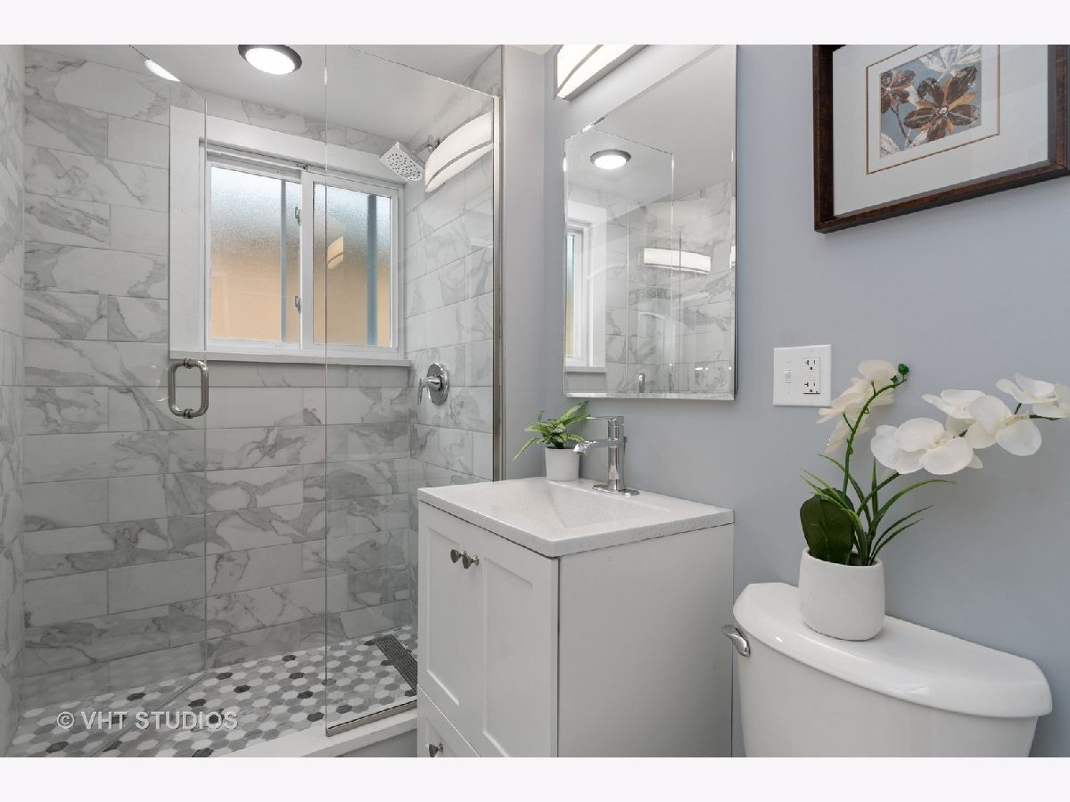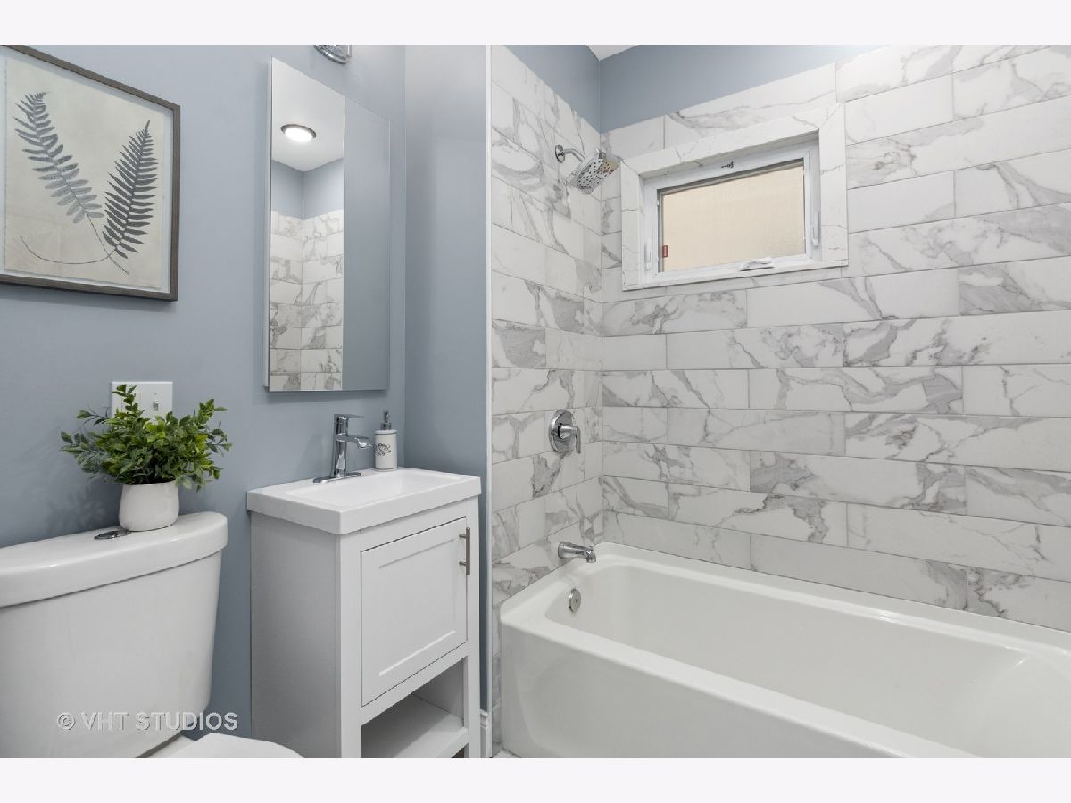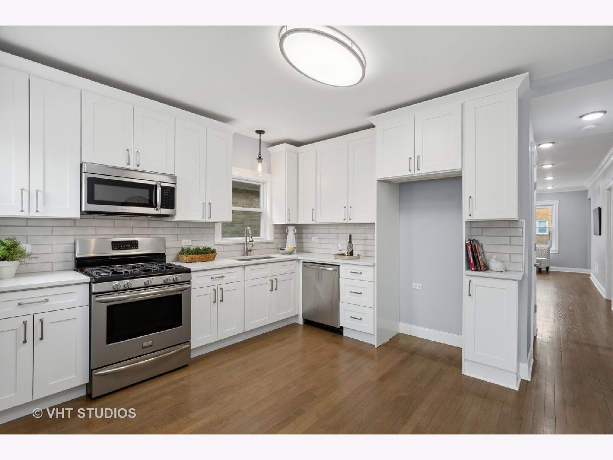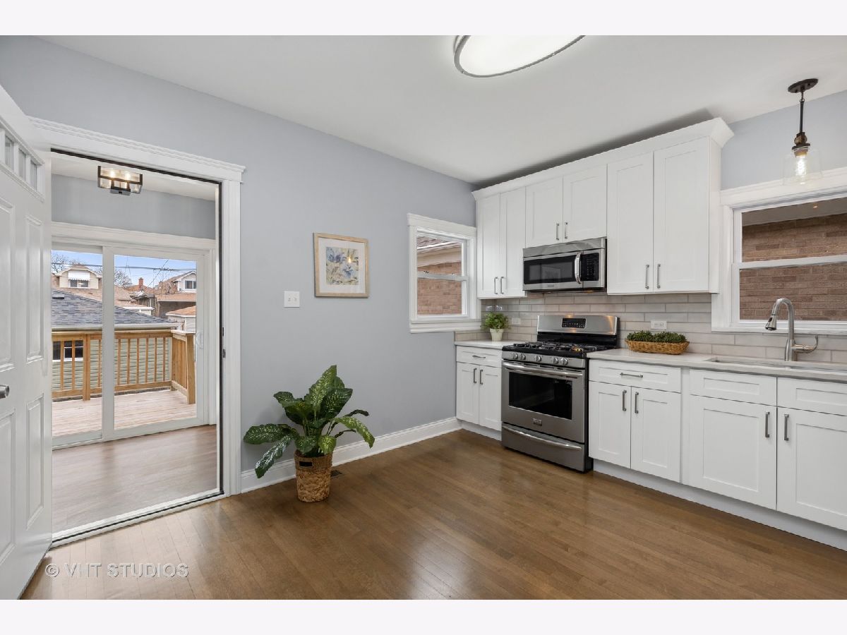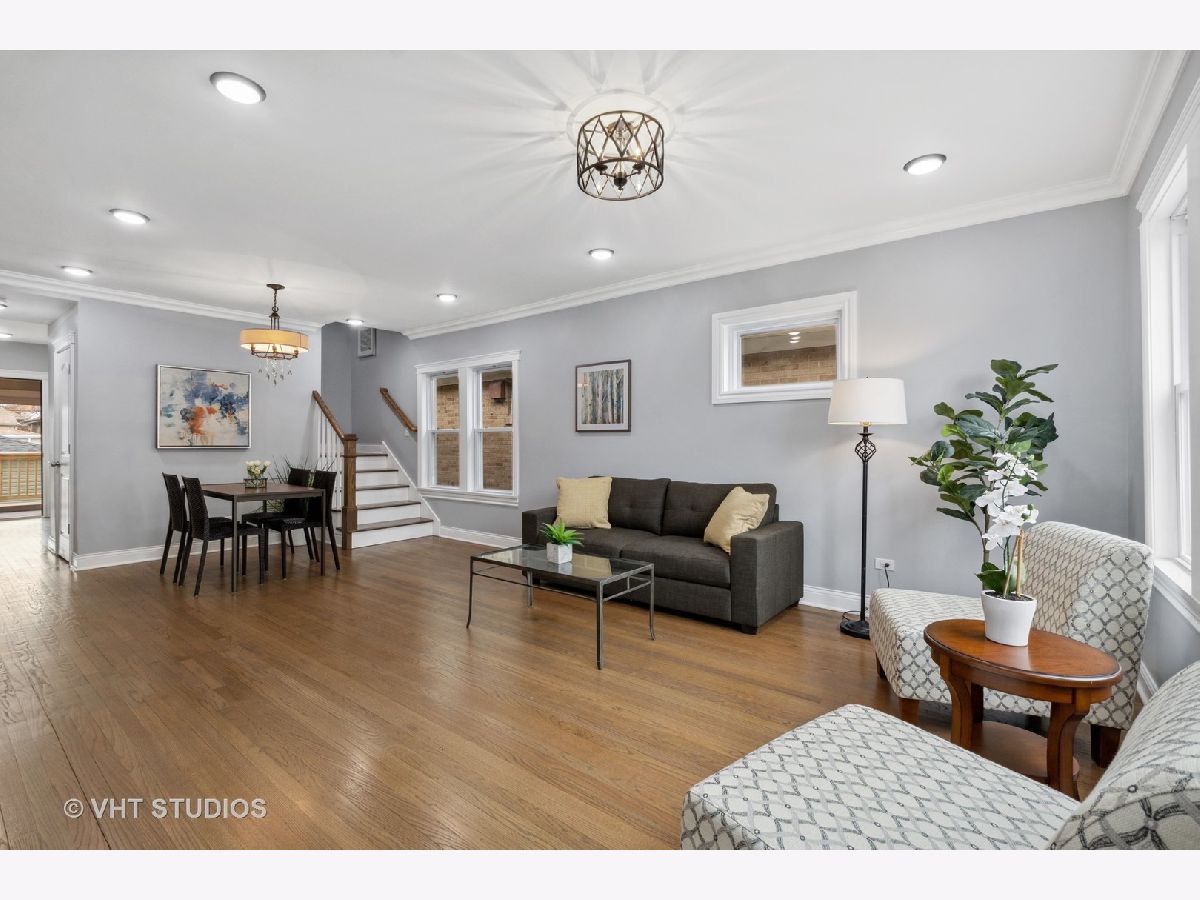 Beautiful renovation of this 4 bedroom/2 bath home in Belmont/Cragin neighborhood. All new electric, plumbing (including service to the home) and windows. New deck and Newer roof. Refinished hardwood floors on main level featuring living room/dining room, gracious foyer entry, full porcelain bath, 2 spacious bedrooms and large kitchen leading to back deck. Quartz countertops, white cabinets and SS appliances (refrigerator on back order) and walk-in pantry. Second floor, accessed with two staircases, features 2 additional bedrooms, an office, den, skylight and porcelain bath. Finished basement with all new drain tile system and sump pump, laundry room, new HVAC/CA and hot water heater. 2 car garage with new roof. Fenced yard. Great location near Riis Park and Brickyard shopping area. West Belden School one block away.