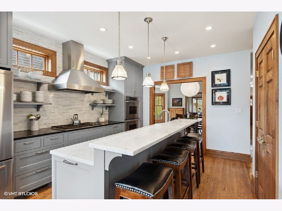 Fully updated and ready for move-in, this home is located in picturesque north Evanston, walkable to schools, shops, parks, trains...AND this home is part of the sought after BACK LOT - A unique one block area with a private park in the center. An inviting front porch welcomes you and inside you'll be wowed by the great floor plan that includes a large foyer entry, a light and bright 1st floor family room, a warm living room with a wood burning fireplace, a separate dining room with bay windows, a gorgeous kitchen with sunny views of the yard and Koi pond, plus an office space, 1st floor laundry and a mud-room. The upgraded kitchen offers stainless steel appliances, a double oven, a big eat-in counter, a prep sink and a huge pantry. Upstairs you'll find 4 good-sized bedrooms all with surprisingly big closets, plus a hall bath with double sink and tub/shower combo. The primary has a large walk-in closet and a private bathroom with a spacious walk-in shower. During the major renovation and addition work, a deep basement addition was added. The basement family room has 10ft ceilings plus a gas fireplace. You'll also find bedroom #5 and a full bathroom in the lower level. Updated windows, plumbing and electric, a 2+ car garage, a rear patio, pergola, beautiful landscaping and walk out of your back gate on to the BACK LOT...The Back Lot is a magical hidden park where you will find lighted basketball, tennis, Pickleball courts, an ice rink in the winter, soccer, baseball and other warm-weather activities like campouts, 4th of July float, movie night and fantasy football league. The Back Lot is shared with your neighbors. Homes on the Back Lot don't come up often! This home is walking distance to schools, Central St. shops and restaurants, the Metra and El and 1.5 miles from Lighthouse Beach. Love where you live!