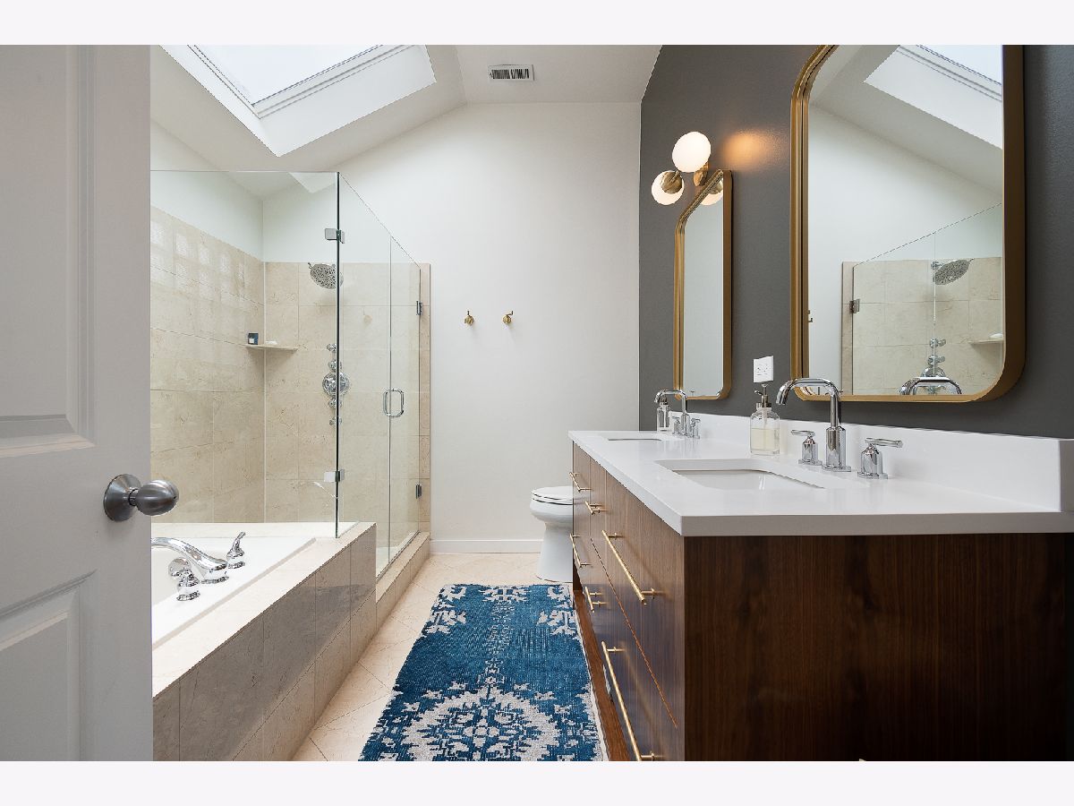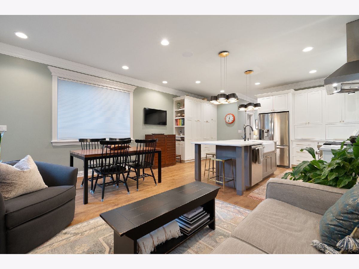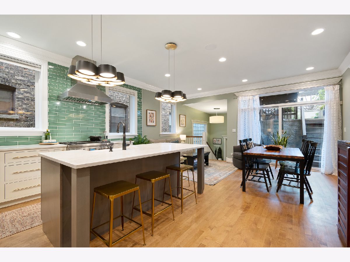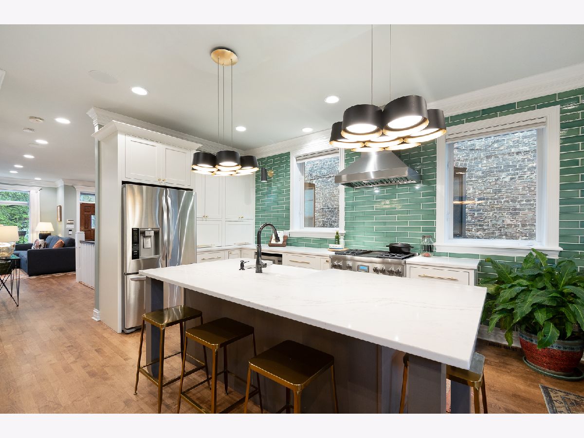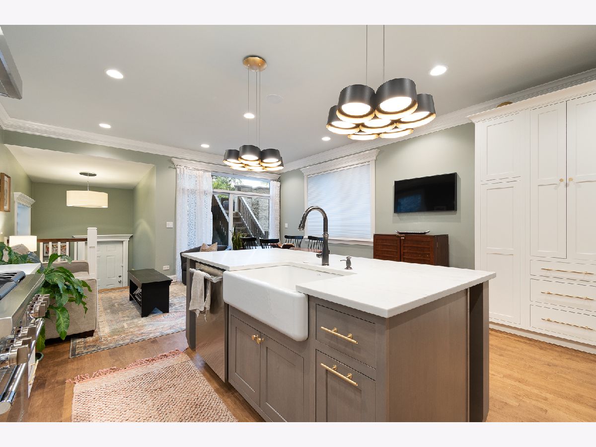 Welcome to this stunning and unique 4 bedroom, 3.5 bathroom home in the heart of Bucktown surrounded by everything the neighborhood has to offer. This beautiful home showcases a vast open living layout with dual staircases, hardwood floors, skylights adding an abundance of natural light, two wood burning fireplaces creating an extra homey feel, and a multi-level deck, perfect for entertaining friends and family. The custom kitchen boasts quartz countertops, flush inset cabinetry design, stainless steel appliances including a Thermador range, Bosch dishwasher, an expansive eat-in island, Fireclay handmade tile backsplash, a pantry, and ample room for a dining room table. The generously sized main bedroom is bright, cozy, and showcases vaulted ceilings and a spa-like en-suite bath with a dual vanity and a separate tub and shower with body sprays. The bedroom also includes a massive walk-in closet and access to the beautiful deck and patio. Three of the bedrooms are located on the upper level and the fourth is located on the lower level. The basement is yet another amazing entertainment space. The lower level family room is very spacious and the fourth bedroom can be a perfect flex space for either an at-home gym or office, whatever best fits your needs. This home comes with tons of character and lies in a great location, close to many Michelin star many great restaurants, coffee shops, breweries, boutiques, and walking distance to both the Western blue line and the 606! Holstein Park is one block away and acts as your backyard, with a large green space, pool and a playground. Your new home lies less than 2 blocks from Pulaski school, a level 1+ rated neighborhood K-8 school. Attached two car garage included. You don't want to miss this one!