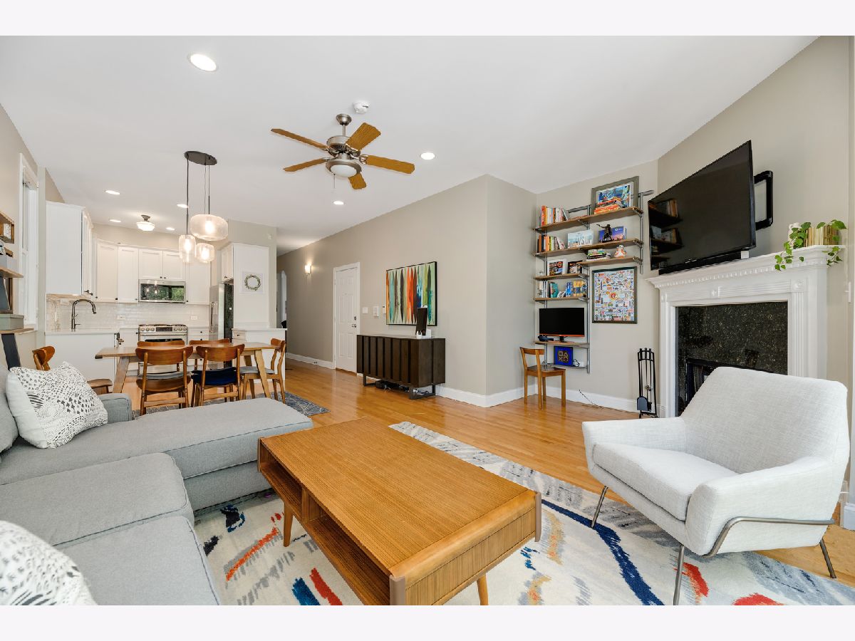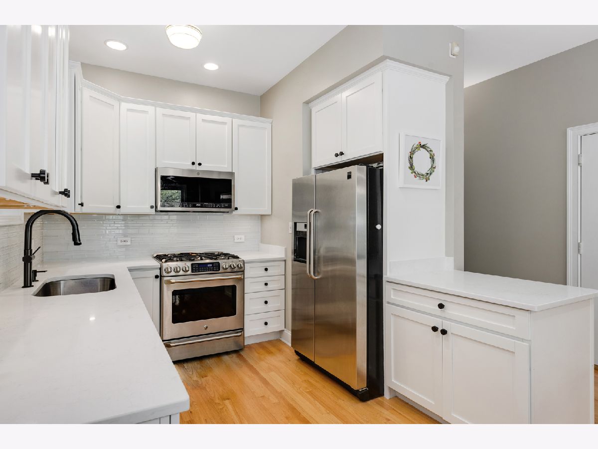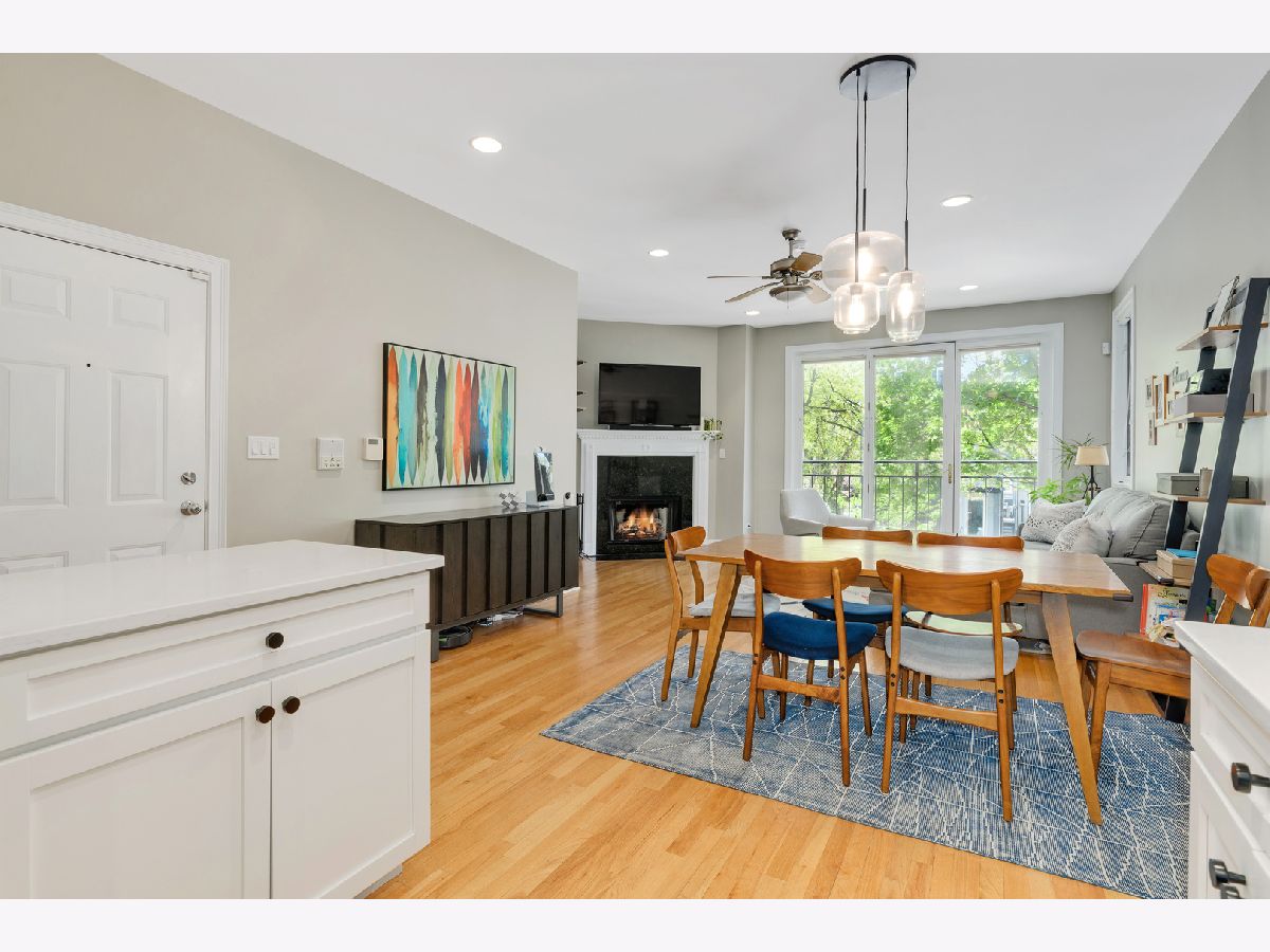 Bright and gorgeous Bucktown 2 Bed/2 Bath with stunning new kitchen! Enjoy a spacious layout that's perfect for relaxing and entertaining. White shaker cabinets, quartz countertops and stunning backsplash paired with stainless appliances complete your culinary dream. Wood burning fireplace! Hardwood floors throughout the living space. King sized primary bedroom with plenty of closet space. Dual vanity master bath with separate shower and tub. Enjoy summer on the back balcony! Queen sized second bedroom is perfect for guests, home office or the obligatory Peloton. Garage parking included! Walk to the best restaurants and nightlife in Bucktown, as well as CTA blue line and bus! Easy highway access! Low assessments, healthy HOA, no rental restrictions.