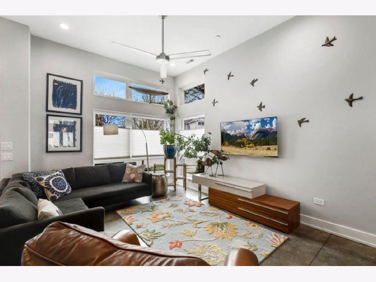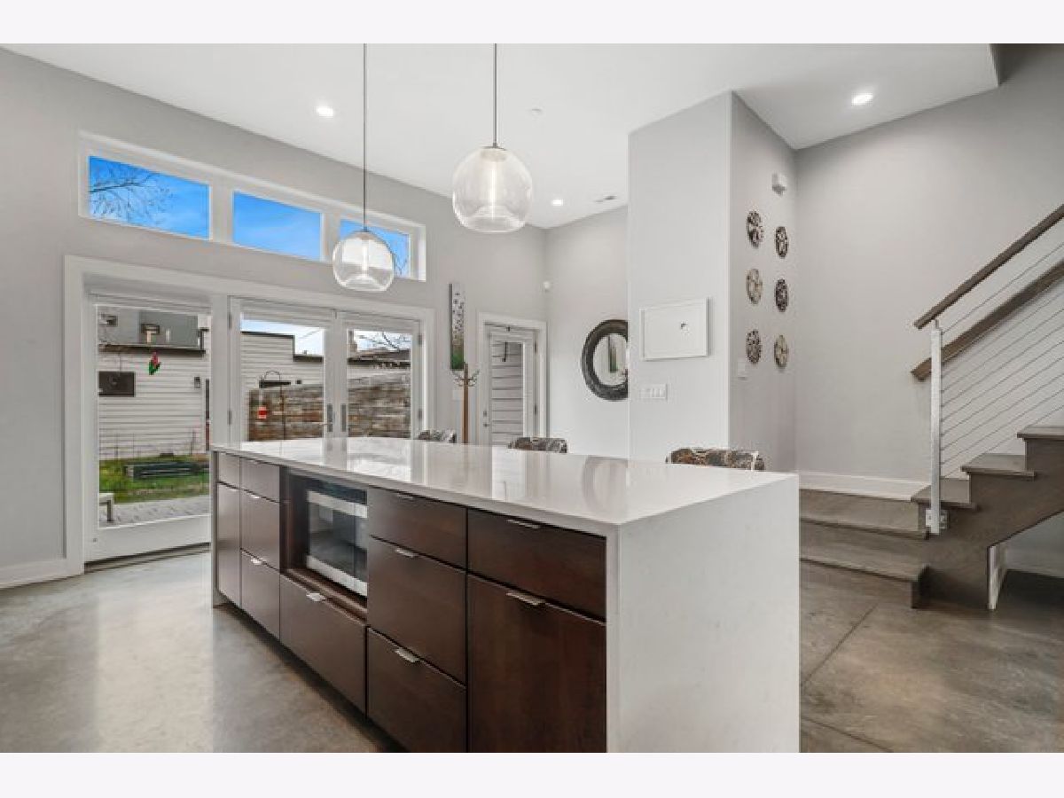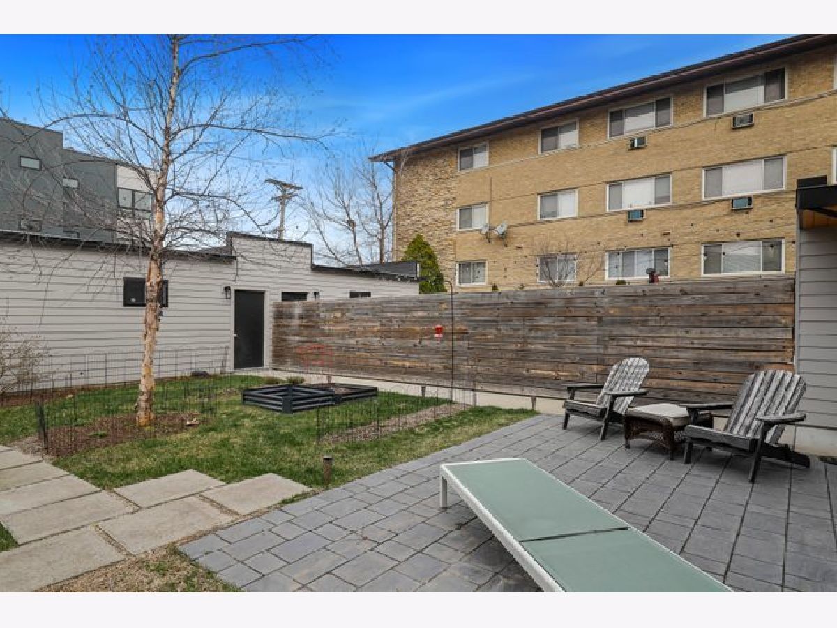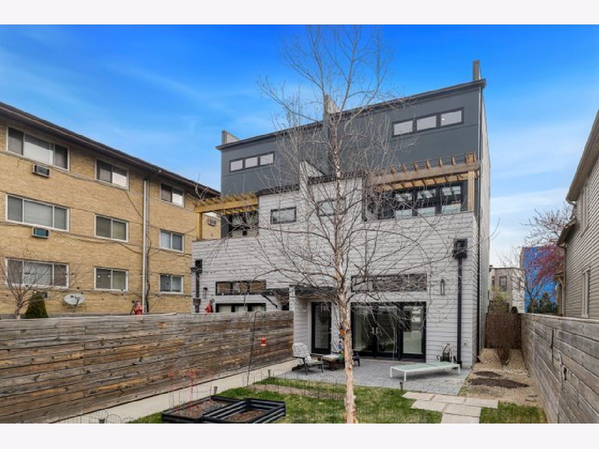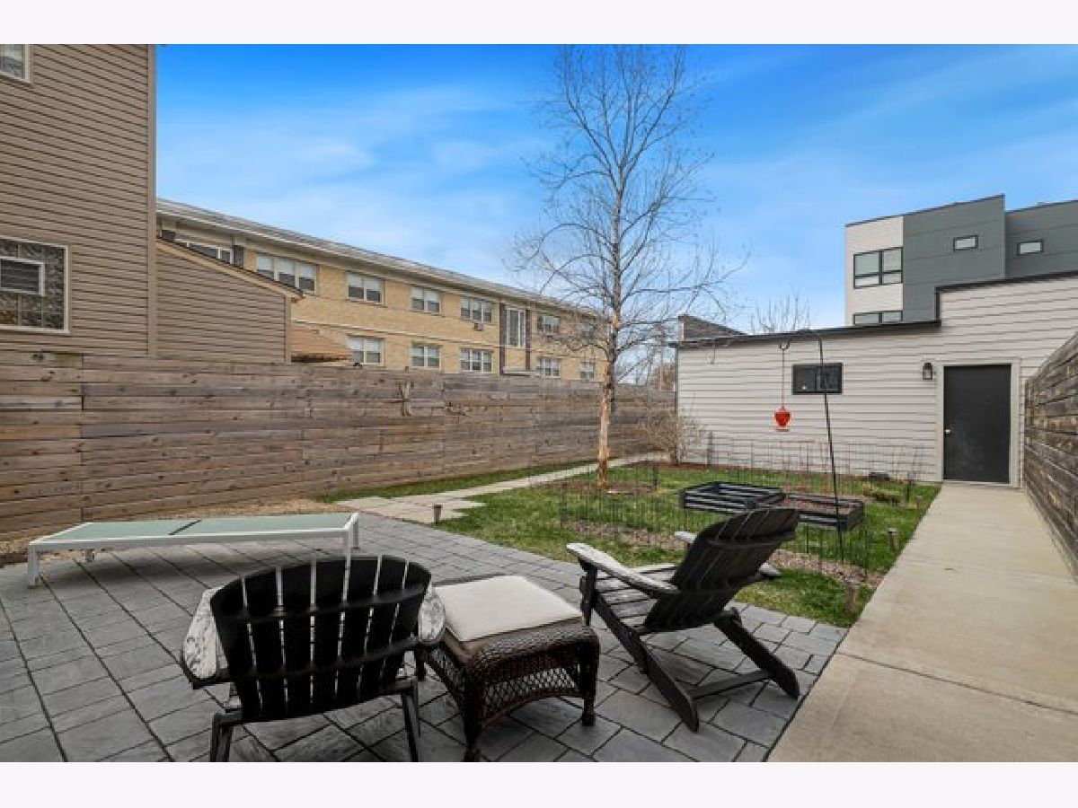 Indulge in luxury living with this spacious 3 story townhome, boasting expansive first floor eleven-foot ceilings. The open living-dining-kitchen area features heated concrete flooring, a convenient powder room, large windows, and a fantastic paver patio off the kitchen. The chef's kitchen is a masterpiece, showcasing a massive center island with elegant white quartz countertops, contemporary two-tone cabinetry, and stainless steel appliances. Enjoy the airy, light-filled spaces that seamlessly flow for perfect entertaining. On the second level, practicality meets luxury with a convenient laundry room. Enjoy the expansive primary suite, offering a large bedroom, ensuite office, a private outdoor terrace, dual walk-in custom closets, and a generously sized spa like bath. The third level features two generously sized bedrooms connected by a Jack and Jill full bath, featuring a white quartz double vanity, w/ a combo bathtub/shower. With an eye towards sustainability, this townhome features a green roof on the garage. Unwind in the private yard, featuring raised garden beds and perennial landscaping, paired with a two-car garage for added convenience. Conveniently situated near the CTA green & blue line, metra train, easy access to 290 as well as shopping and restaurants.