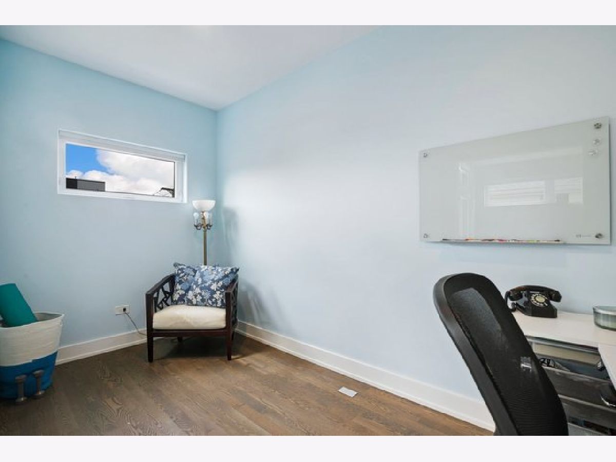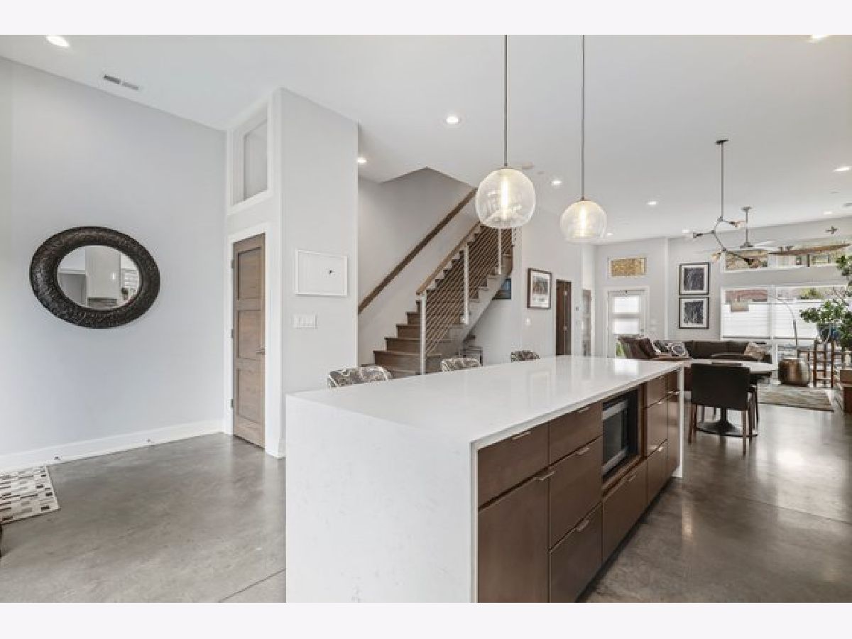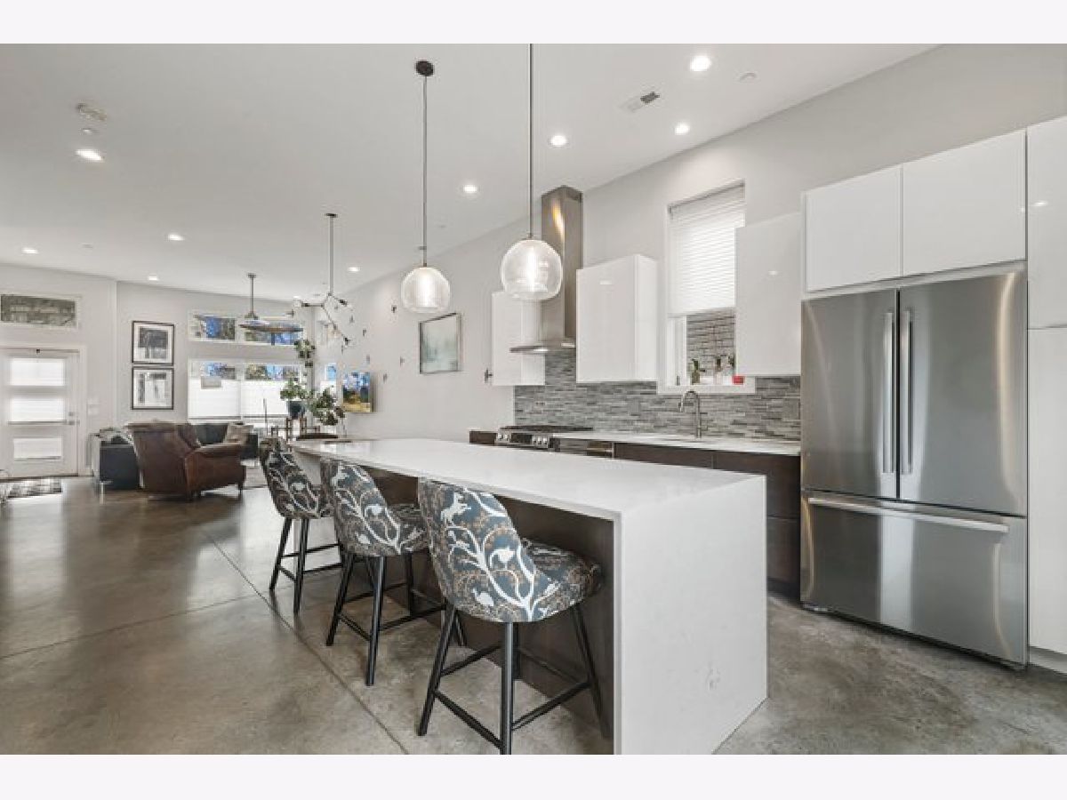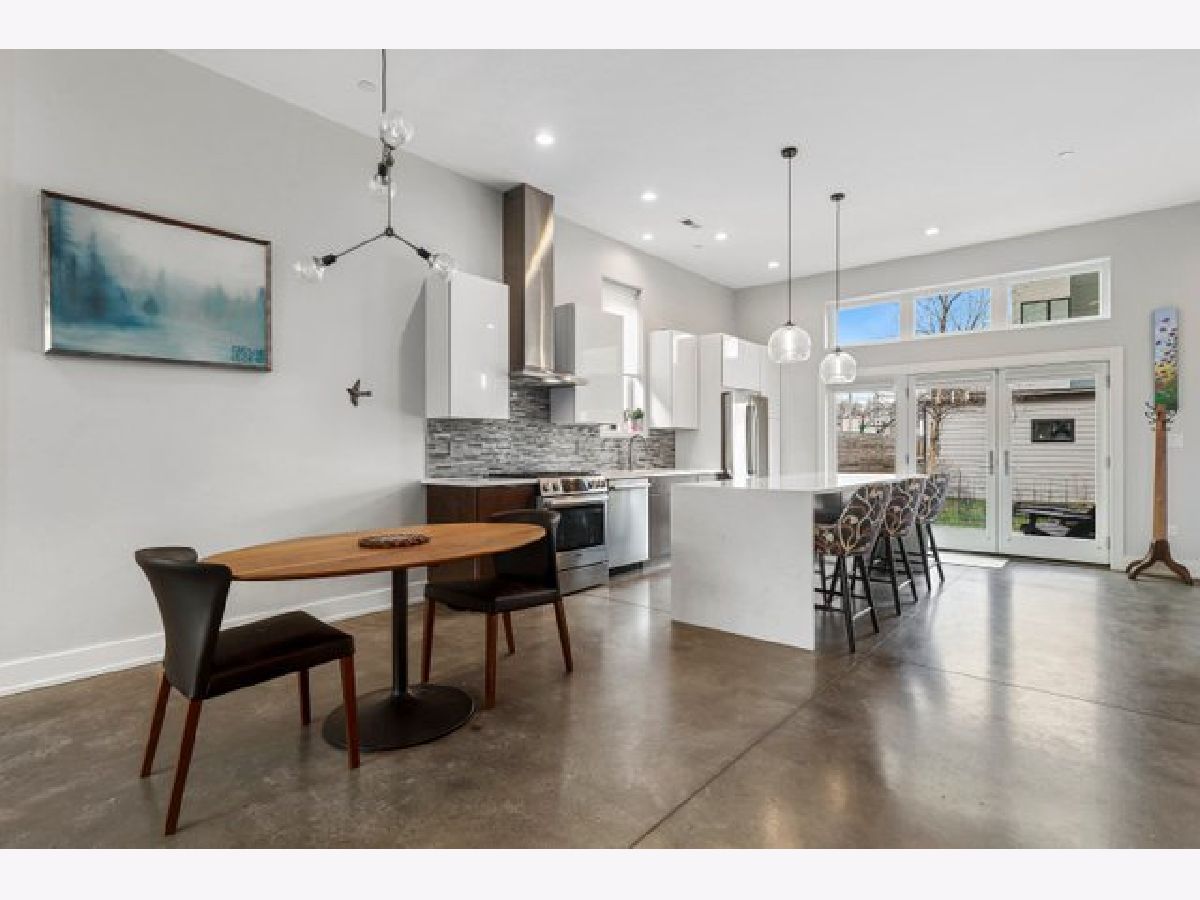 Indulge in luxury living with this spacious 3 story townhome, boasting expansive first floor eleven-foot ceilings. The open living-dining-kitchen area features heated concrete flooring, a convenient powder room, large windows, and a fantastic paver patio off the kitchen. The chef's kitchen is a masterpiece, showcasing a massive center island with elegant white quartz countertops, contemporary two-tone cabinetry, and stainless steel appliances. Enjoy the airy, light-filled spaces that seamlessly flow for perfect entertaining. On the second level, practicality meets luxury with a convenient laundry room. Enjoy the expansive primary suite, offering a large bedroom, ensuite office, a private outdoor terrace, dual walk-in custom closets, and a generously sized spa like bath. The third level features two generously sized bedrooms connected by a Jack and Jill full bath, featuring a white quartz double vanity, w/ a combo bathtub/shower. With an eye towards sustainability, this townhome features a green roof on the garage. Unwind in the private yard, featuring raised garden beds and perennial landscaping, paired with a two-car garage for added convenience. Conveniently situated near the CTA green & blue line, metra train, easy access to 290 as well as shopping and restaurants.