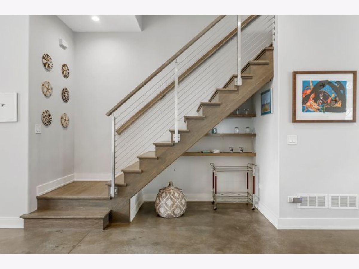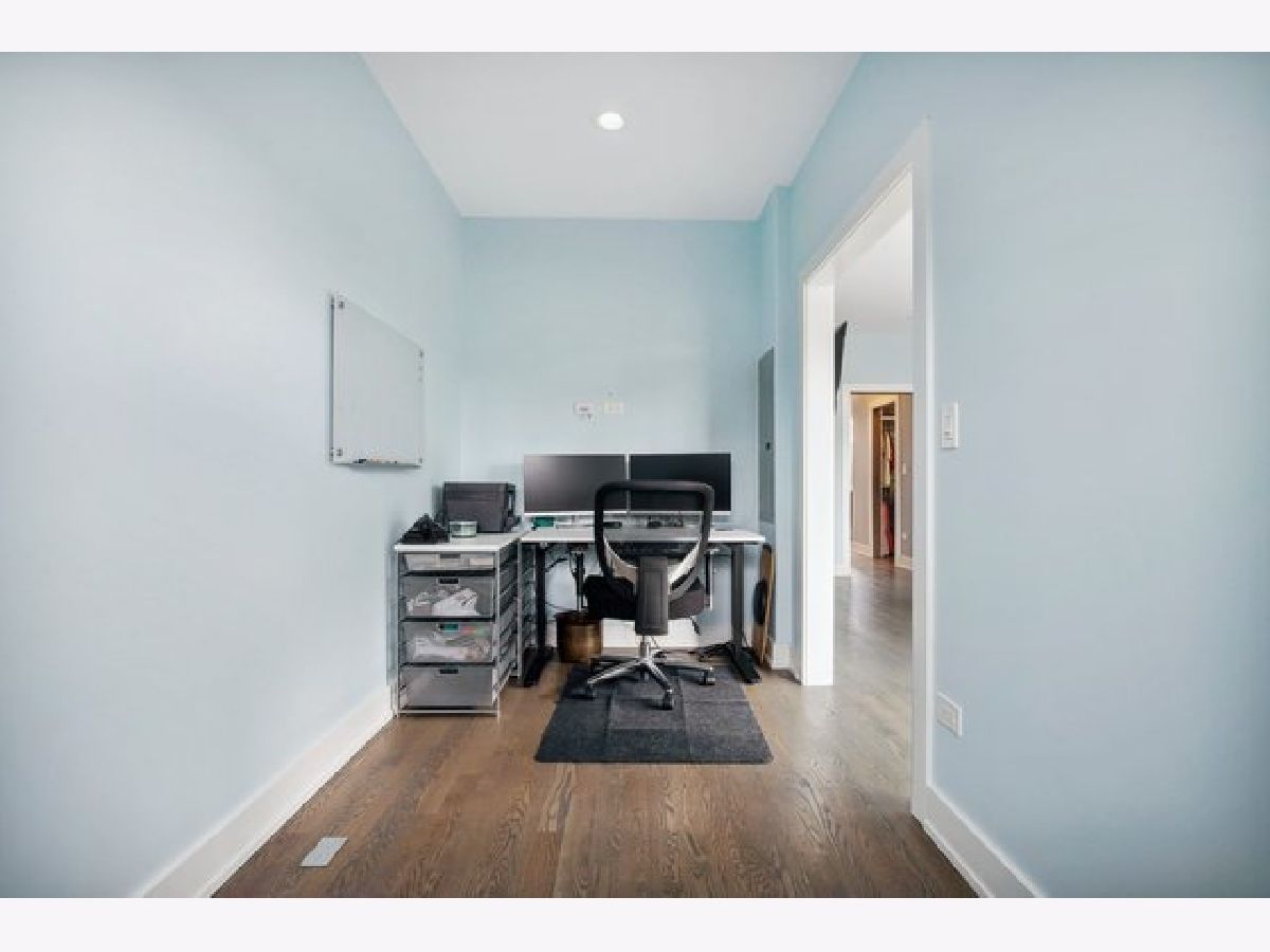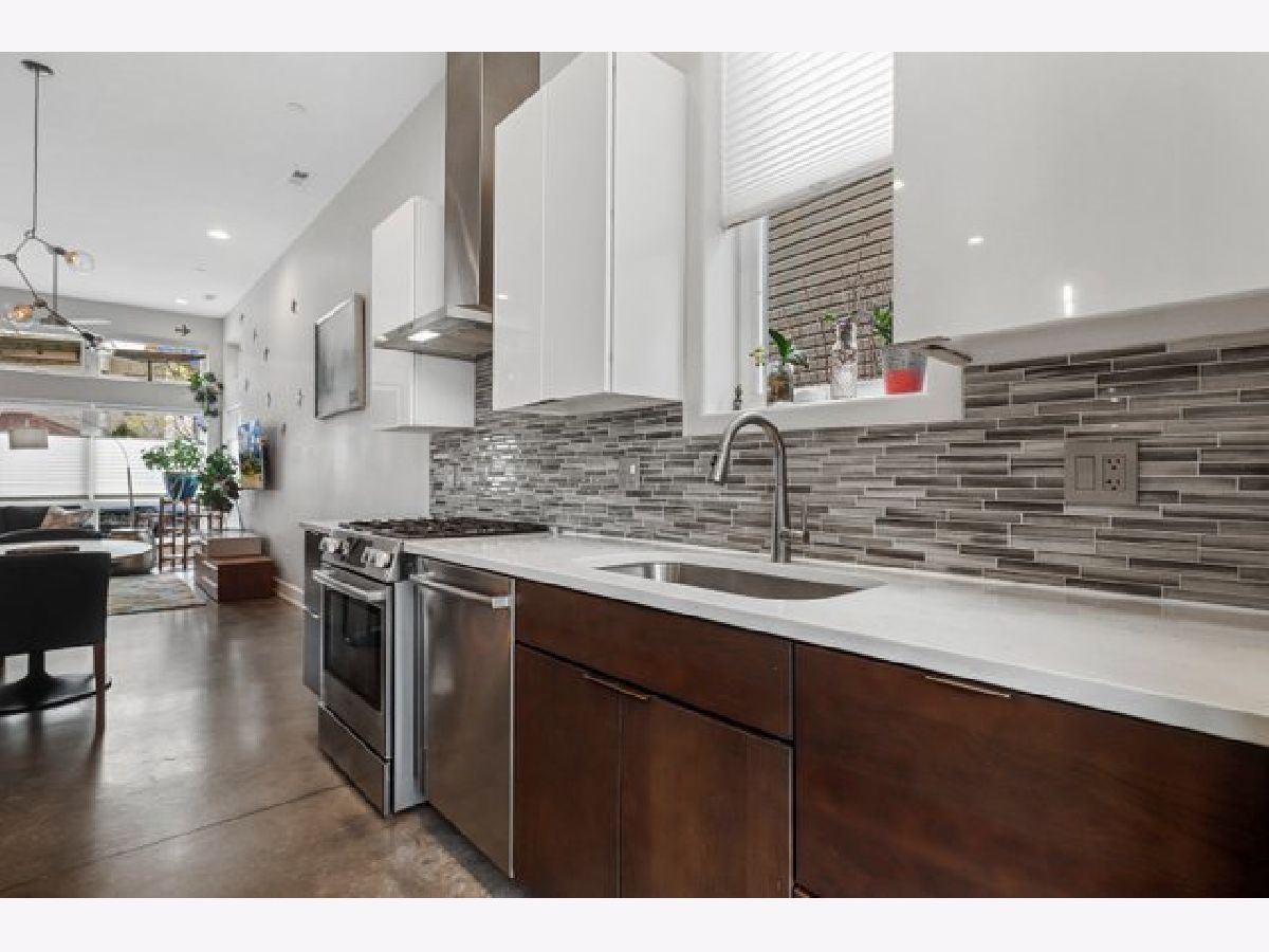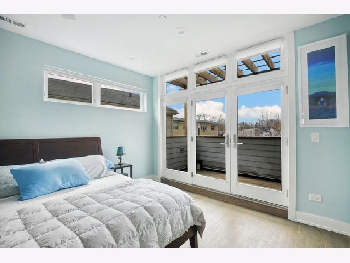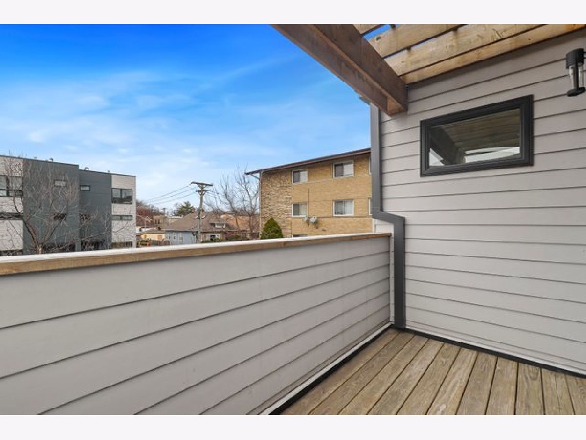 Indulge in luxury living with this spacious 3 story townhome, boasting expansive first floor eleven-foot ceilings. The open living-dining-kitchen area features heated concrete flooring, a convenient powder room, large windows, and a fantastic paver patio off the kitchen. The chef's kitchen is a masterpiece, showcasing a massive center island with elegant white quartz countertops, contemporary two-tone cabinetry, and stainless steel appliances. Enjoy the airy, light-filled spaces that seamlessly flow for perfect entertaining. On the second level, practicality meets luxury with a convenient laundry room. Enjoy the expansive primary suite, offering a large bedroom, ensuite office, a private outdoor terrace, dual walk-in custom closets, and a generously sized spa like bath. The third level features two generously sized bedrooms connected by a Jack and Jill full bath, featuring a white quartz double vanity, w/ a combo bathtub/shower. With an eye towards sustainability, this townhome features a green roof on the garage. Unwind in the private yard, featuring raised garden beds and perennial landscaping, paired with a two-car garage for added convenience. Conveniently situated near the CTA green & blue line, metra train, easy access to 290 as well as shopping and restaurants.