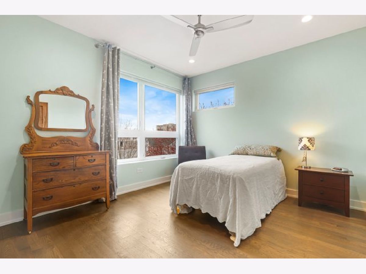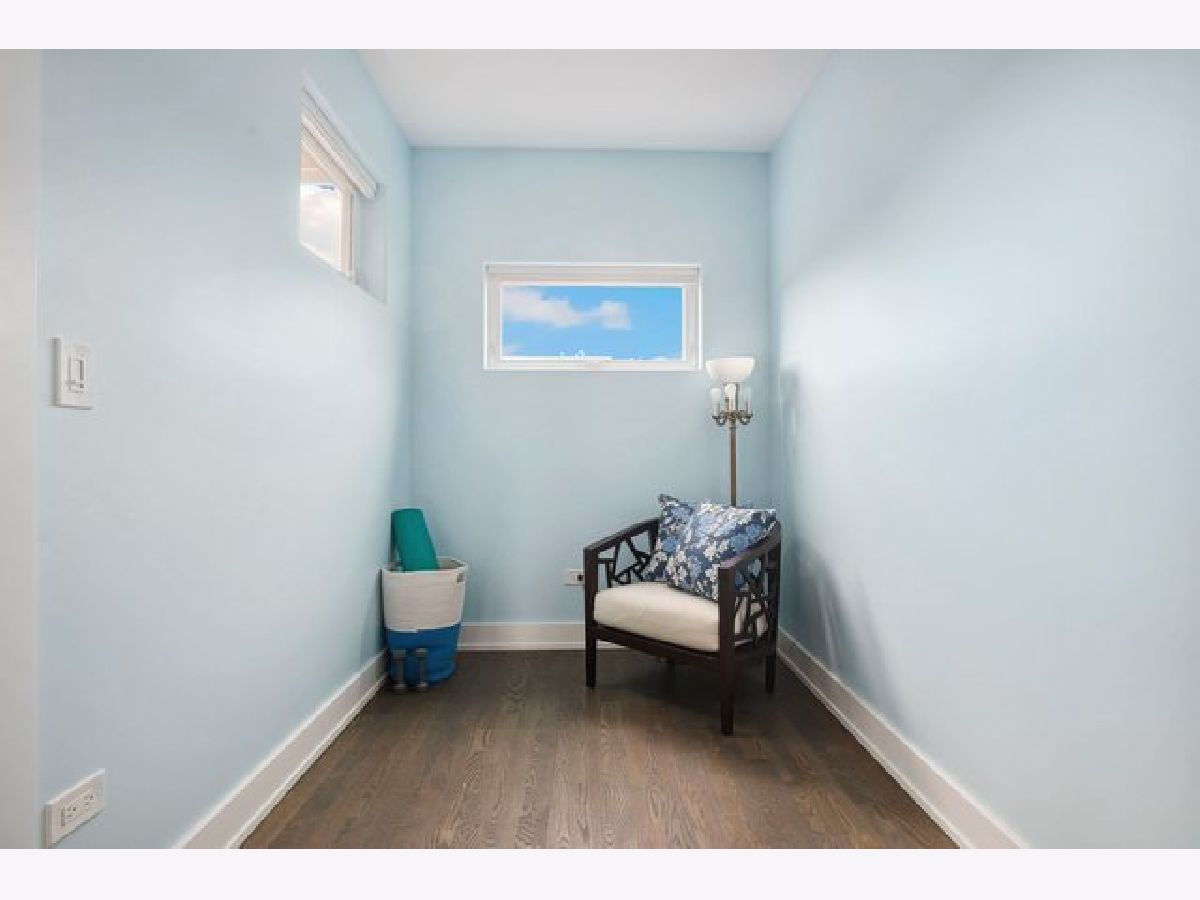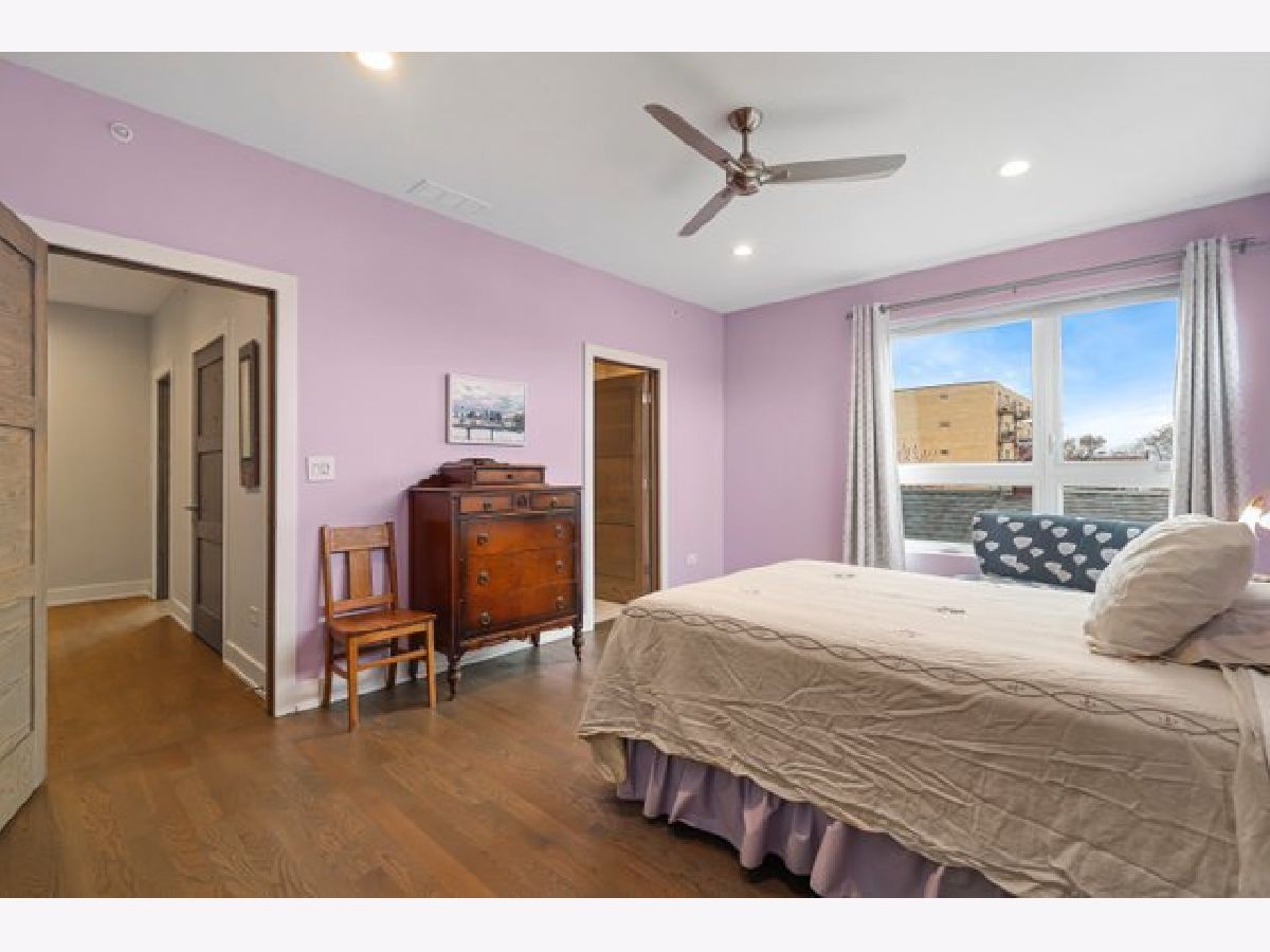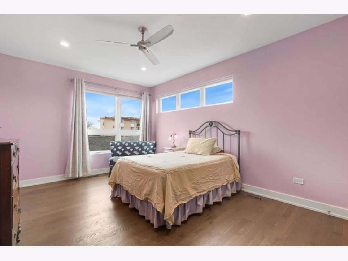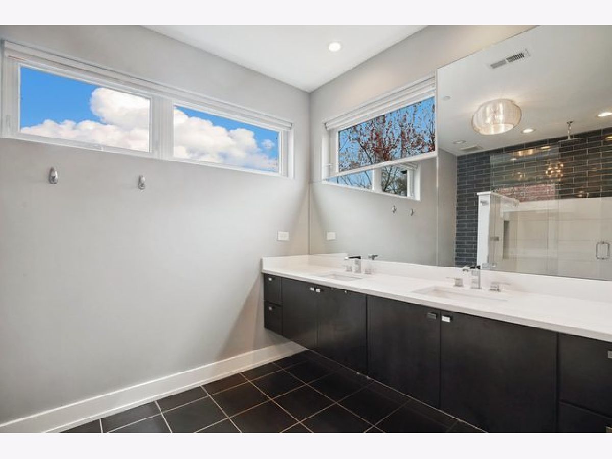 Indulge in luxury living with this spacious 3 story townhome, boasting expansive first floor eleven-foot ceilings. The open living-dining-kitchen area features heated concrete flooring, a convenient powder room, large windows, and a fantastic paver patio off the kitchen. The chef's kitchen is a masterpiece, showcasing a massive center island with elegant white quartz countertops, contemporary two-tone cabinetry, and stainless steel appliances. Enjoy the airy, light-filled spaces that seamlessly flow for perfect entertaining. On the second level, practicality meets luxury with a convenient laundry room. Enjoy the expansive primary suite, offering a large bedroom, ensuite office, a private outdoor terrace, dual walk-in custom closets, and a generously sized spa like bath. The third level features two generously sized bedrooms connected by a Jack and Jill full bath, featuring a white quartz double vanity, w/ a combo bathtub/shower. With an eye towards sustainability, this townhome features a green roof on the garage. Unwind in the private yard, featuring raised garden beds and perennial landscaping, paired with a two-car garage for added convenience. Conveniently situated near the CTA green & blue line, metra train, easy access to 290 as well as shopping and restaurants.