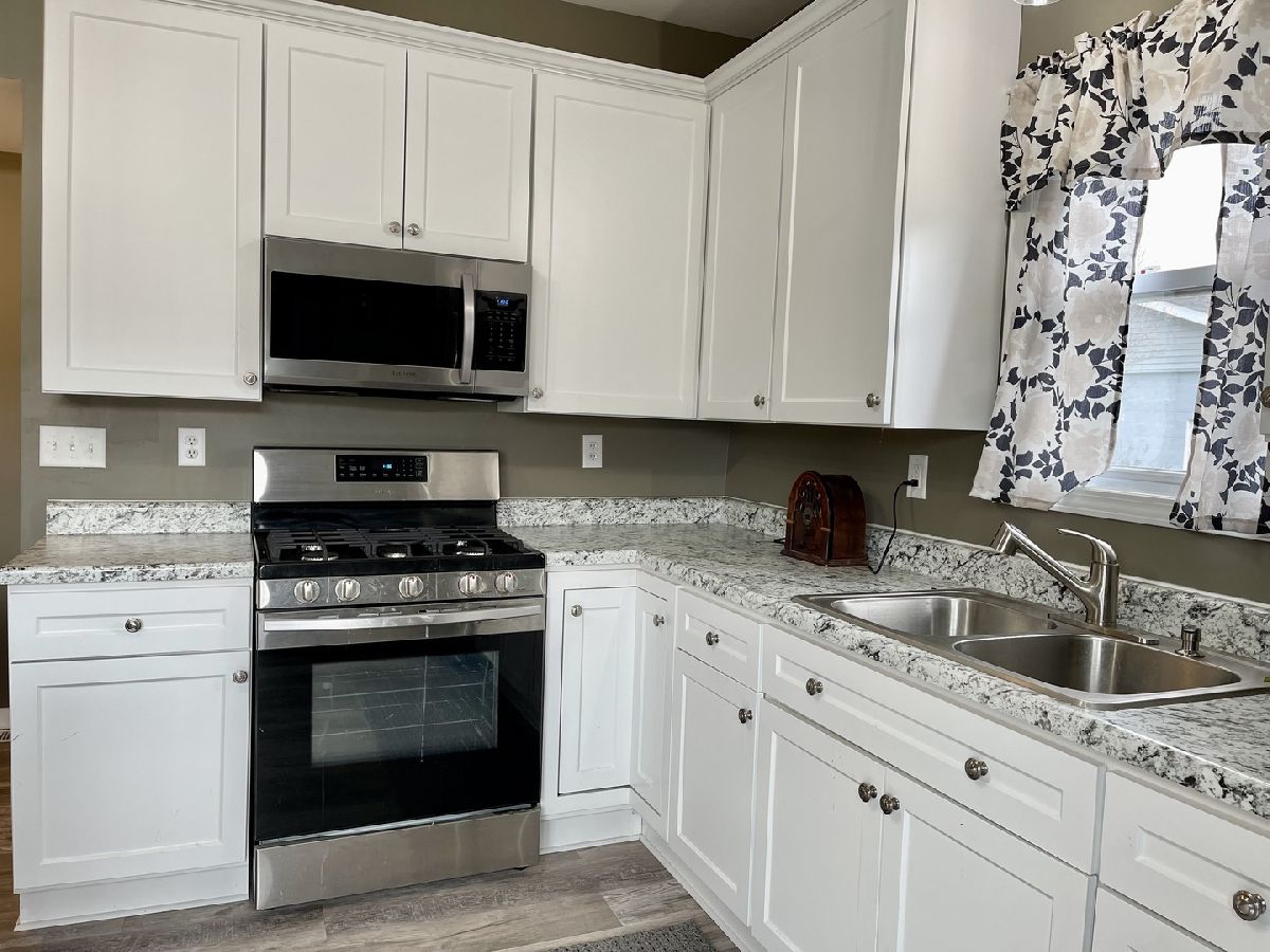 Move right in to this completely remodeled home. Features include beautiful light and airy kitchen, plenty of all new birch cabinets, center island with storage and bar stools, double sink, stainless steel refrigerator, stove and microwave included, pantry closet, sliding glass doors to deck, living room, bedroom, full bathroom on main level. Partially finished lower level has bonus room with walk in closet. Could be 2nd bedroom, office, craft room etc. New sub pump. Furnace (2020), Central A/C (2021), Water heater (2020). Maintenance free vinyl sided exterior. Lovely front porch, 30x30 heated garage has 2 overhead doors and access to attic. 12x12 storage shed. Nice Lot.