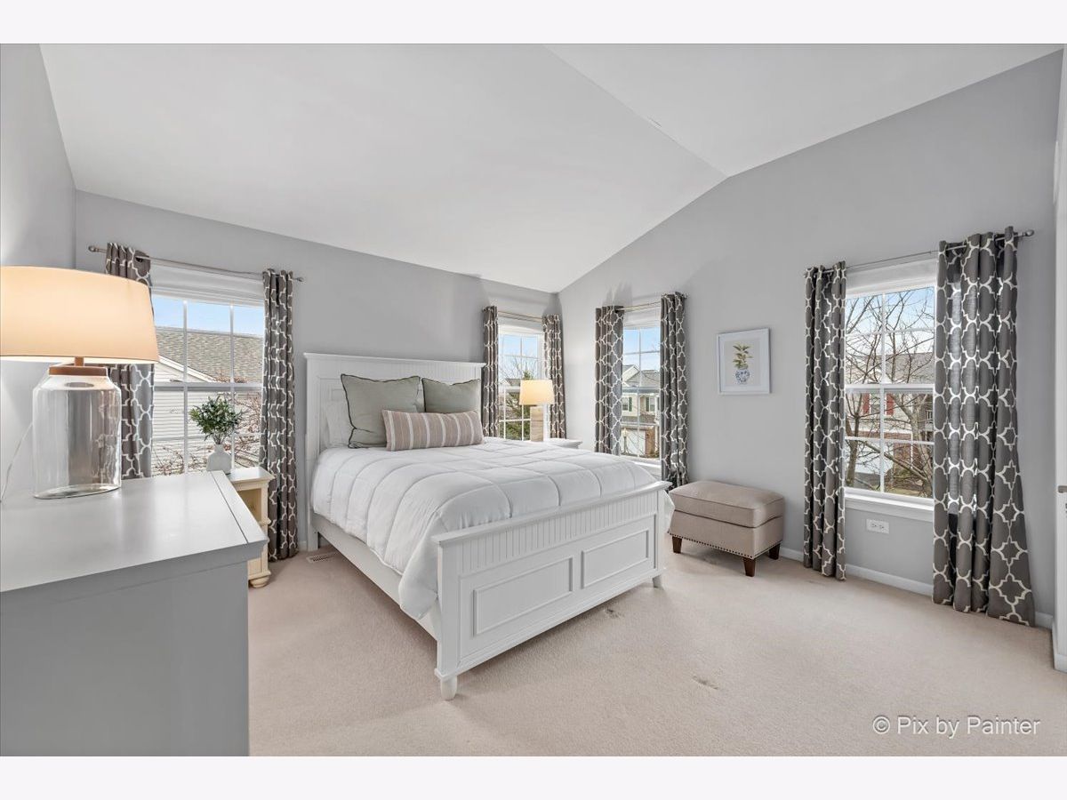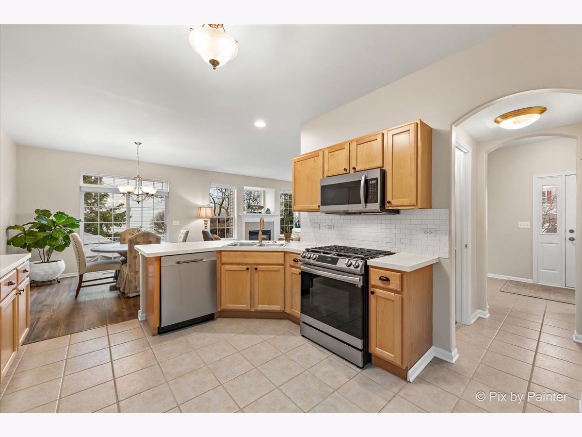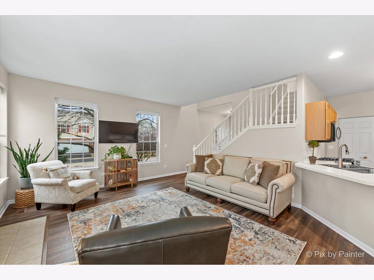 Welcome to popular Fisher Farms in Geneva! Conveniently located behind the Geneva Commons, this light-filled corner unit has 3 bedrooms and 2.5 bathrooms on an over-sized lot. This home is drenched in sun with its many windows and tall ceilings. Recent updates to the living space include gorgeous new Pergo floors along with neutral paint. The kitchen is outfitted with new stainless-steel Samsung appliances and modern subway tile backsplash. Laundry room holds a brand-new washer/dryer and ample storage space. Enjoy the spacious patio off the eating area surrounded with evergreen trees for privacy. Expect to be impressed with gorgeous views of Frank K. Burgess Park from the upstairs loft area and primary bedroom. The primary bedroom easily fits a king-size bed and has a large en-suite bathroom. The other two bedrooms have tall vaulted ceilings and easily fit queen-sized beds with plenty of room to spare. The basement is a perfect hangout spot with luxury plank vinyl flooring, wet bar, and plenty of room for crafts, exercise, and storage. New HVAC installed in December 2022.