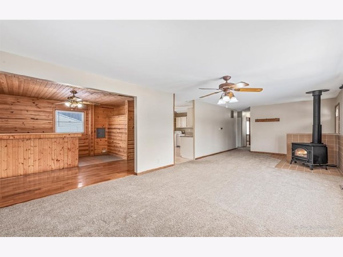 This EXPANDED RANCH Home is Conveniently Located Just Minutes to Downtown Carpentersville, Dundee & Spring Hill Shopping Area with Plenty of Shopping & Restaurants! Backs to a Wooded Tree Line & Across the Street is Raceway Woods Preserve with Walking & Biking Trails! LARGE Brick Paver Patio Off Kitchen! Ceramic Tile Entry! Living & Dining Rooms are EXPANDED from the Original 1 Car Attached Garage to Add Extra Living Space to Create a Large Living Room & Dining Room! BRAND NEW CARPET (2020) in Living Room, Hallway & ALL Bedrooms! FRESHLY PAINTED Throughout in (2020)! LARGE Living Room with Large Bay Window with New Glass Panels (2021), Ceiling Fan & Franklin Stove! Dining Room with ALL Wood Beamed Ceiling, Walls & Hardwood Floor! Ceramic Tile in Bar Area with Built-In Wet Bar PLUS Ceiling Fan! Kitchen with White Painted Cabinets, Updated Countertops, White Appliances Includes NEWER Dishwasher (2019), Ceramic Tile Floor, Ceiling Fan PLUS NEWER Washer (2018) & Dryer (2019)! 3 Bedrooms with Master & 2nd Bedroom with Ceiling Fans! REMODELED Hall Bathroom (in 2020) with Ceramic Tile Walls, Floors & Tub Surround, 3 Shower Heads, Light Fixture, Mirror, Vanity, Faucet & Toilet! Roof (Done in 2011)! NEWER Water Heater (2018)! 1.5 Car Detached Garage is AS-IS and Currently Used As a Shed! (Please note will need new roof & working door - also has a gravel floor.) **Credit Will be Given of $5,000 Towards a New Driveway at Closing!**Great Opportunity to Live In or Rent Out!