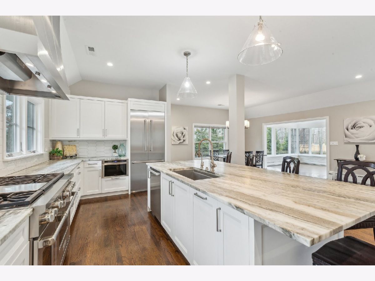 Meticulously Maintained 4BD Home Located In The Most Highly Sought After East Lake Bluff Enclave! The exceptional attention to detail is evident from the moment you walk through the door as every element has been thoughtfully curated down to the finest details. Gleaming hardwood floors greet you as you enter and lead you to the chef inspired kitchen complete with dual Wolf oven & range w/hood, quartz countertops, premium SS appliance package, soft close cabinetry, and oversized island with seating for 5. The floorplan flows effortlessly to the living/dining room, perfect for hosting, and the south facing windows ensure your home will be drenched in sunlight throughout the day. Enjoy your morning coffee or an evening cocktail in your spacious sun room which offers panoramic views of your lush wooded lot. The massive primary suite is complete with a cavernous walk-in closet, en suite with spa quality finishes including dual vanity, heated floors, and multi head shower w/glass surround. Thoughtful floorplan boasts robust bedroom sizes and ample closet space. The sizable family room features a dry bar and is anchored by a handsome fireplace w/mantle, and leads to a large laundry room and attached 3 car garage. All of this plus a finished sub basement which makes for a great home gym or yoga studio. The serene wooded backyard feels like your own secluded private retreat, complete with paver brick patio and stone fireplace, the perfect backdrop for those warm summer nights. This idyllic home is conveniently located less than a mile from both Lake Michigan and Downtown Lake Bluff and is walking distance to Lake Bluff Middle School. Schedule your private tour today!