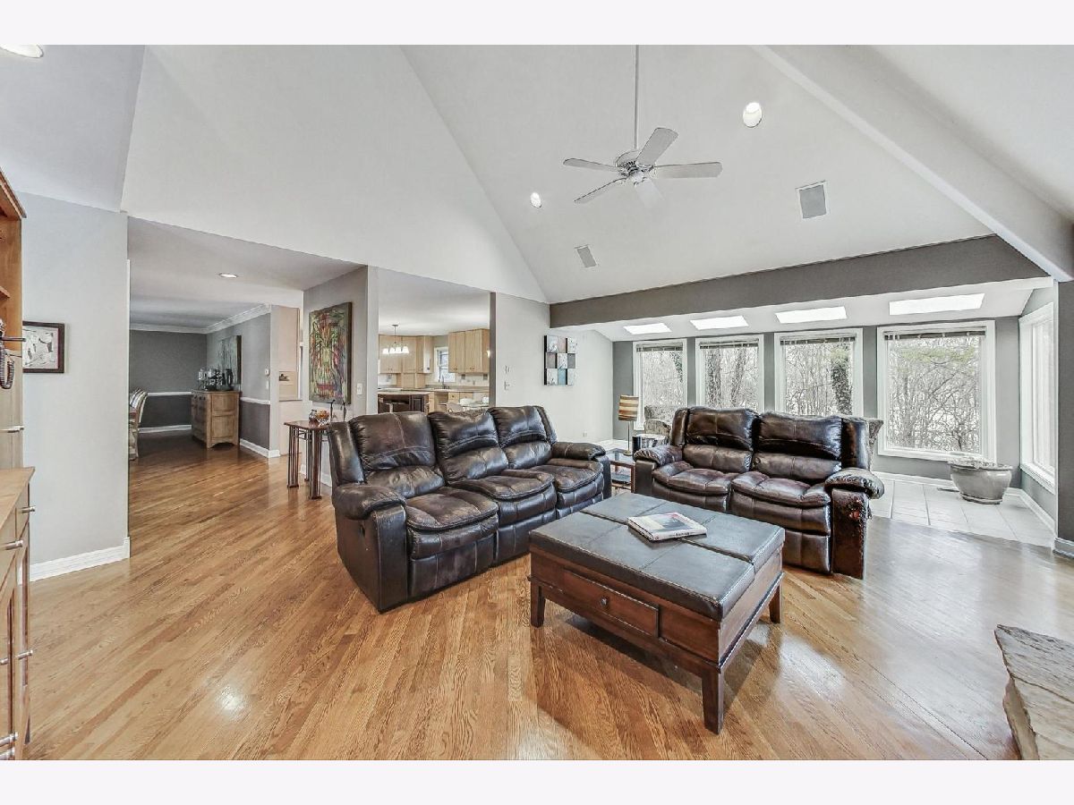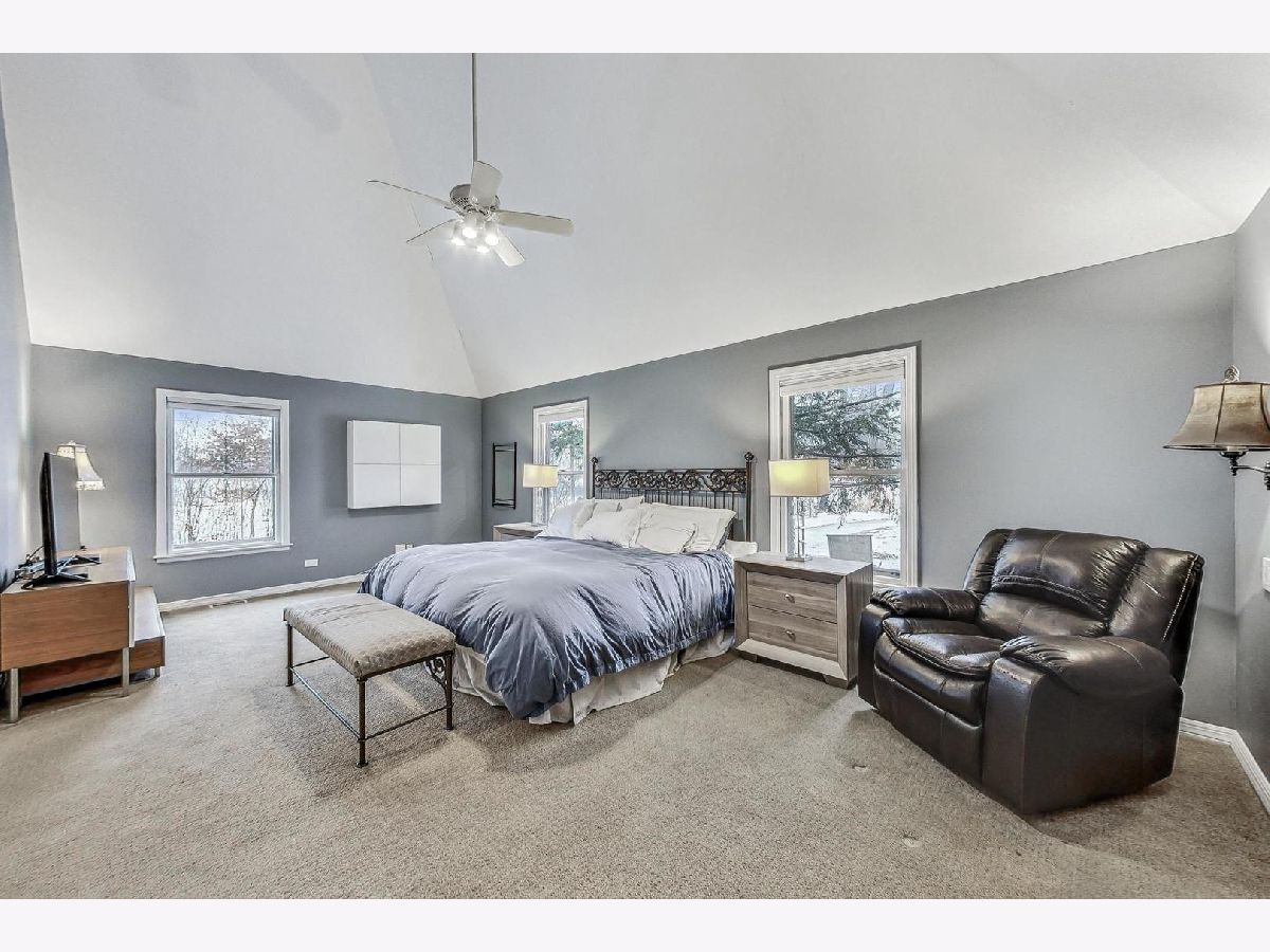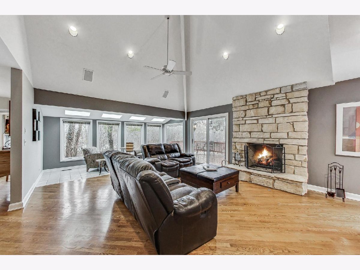 Nestled amidst the serene landscape of Riverwoods, this expansive 5800 square-foot residence exudes sophistication and comfort, evoking the charm of the French countryside. With 4 bedrooms and 4.5 baths, this home invites you to enjoy the sprawling one-acre lot surrounded by beautiful nature-a haven for peace and privacy. It offers generous living spaces, ample room for comfortable living, an open floor plan, a cozy fireplace, and vaulted ceilings that create an airy and open ambiance. Plenty of windows flood the living spaces with natural light, while hardwood floors add warmth and elegance. The main 1st floor bedroom is a true retreat, complete with huge walk-in closets and a spa-quality primary bathroom. 3 additional bedrooms on the 2nd floor. The fully finished basement provides ample space for entertainment, relaxation, and endless possibilities. Priced to sell, this home offers a harmonious blend of comfort, style, and natural beauty and is looking for a new visionary owner.
