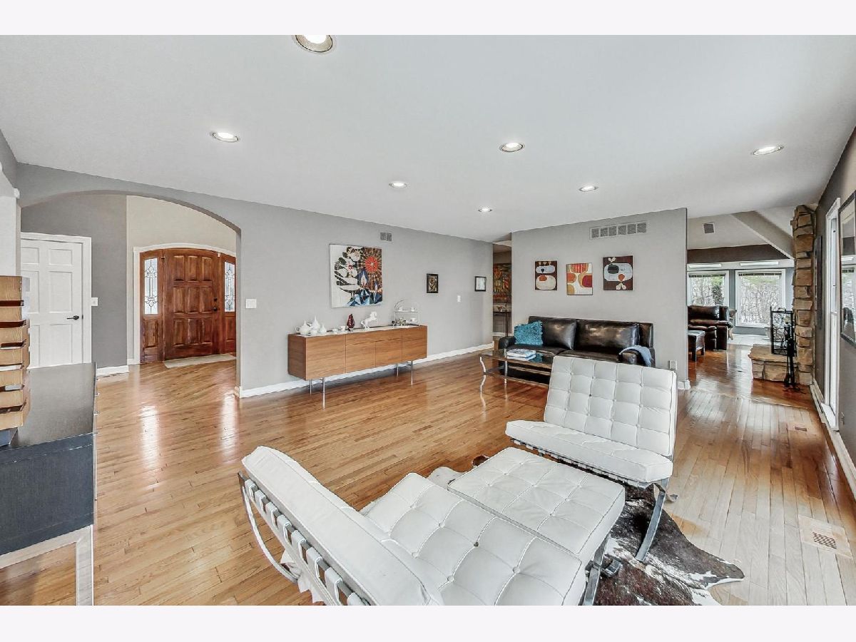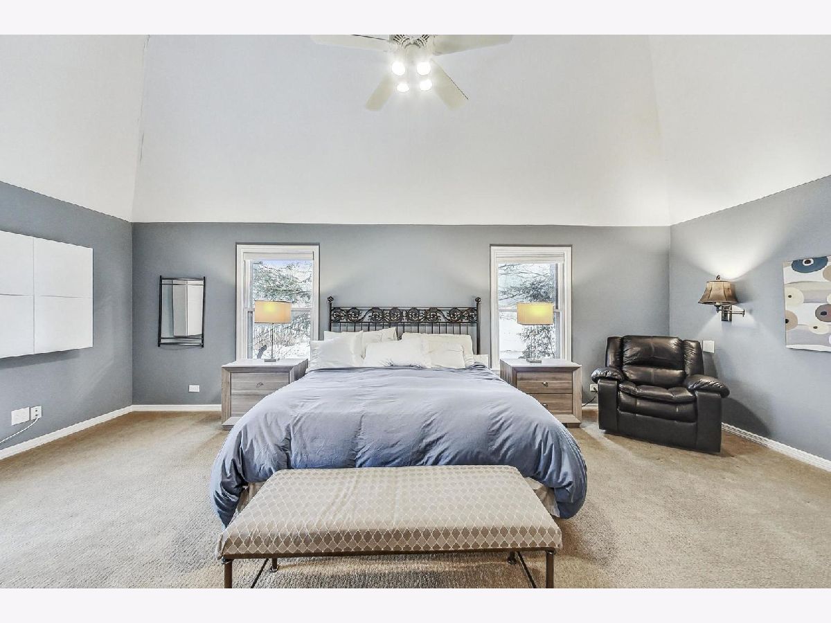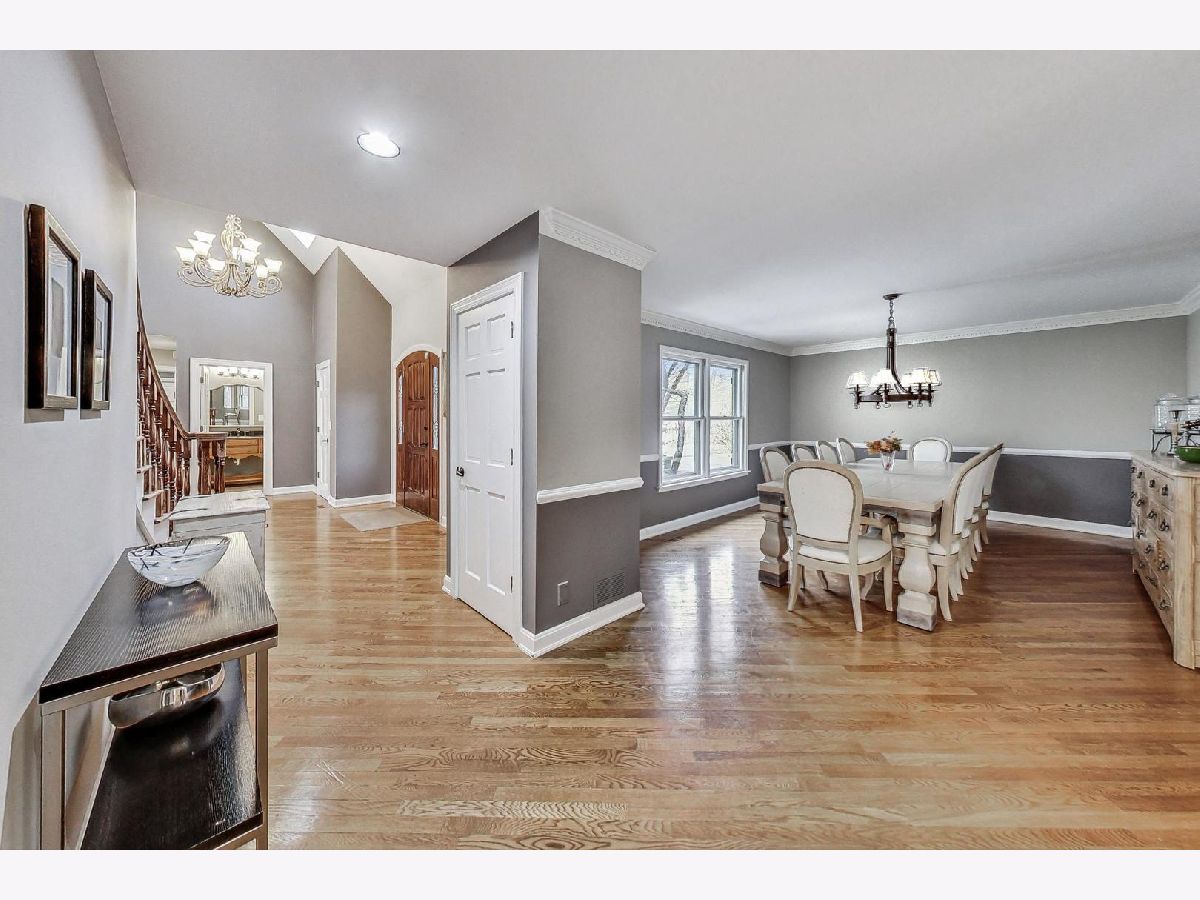 Nestled amidst the serene landscape of Riverwoods, this expansive 5800 square-foot residence exudes sophistication and comfort, evoking the charm of the French countryside. With 4 bedrooms and 4.5 baths, this home invites you to enjoy the sprawling one-acre lot surrounded by beautiful nature-a haven for peace and privacy. It offers generous living spaces, ample room for comfortable living, an open floor plan, a cozy fireplace, and vaulted ceilings that create an airy and open ambiance. Plenty of windows flood the living spaces with natural light, while hardwood floors add warmth and elegance. The main 1st floor bedroom is a true retreat, complete with huge walk-in closets and a spa-quality primary bathroom. 3 additional bedrooms on the 2nd floor. The fully finished basement provides ample space for entertainment, relaxation, and endless possibilities. Priced to sell, this home offers a harmonious blend of comfort, style, and natural beauty and is looking for a new visionary owner.