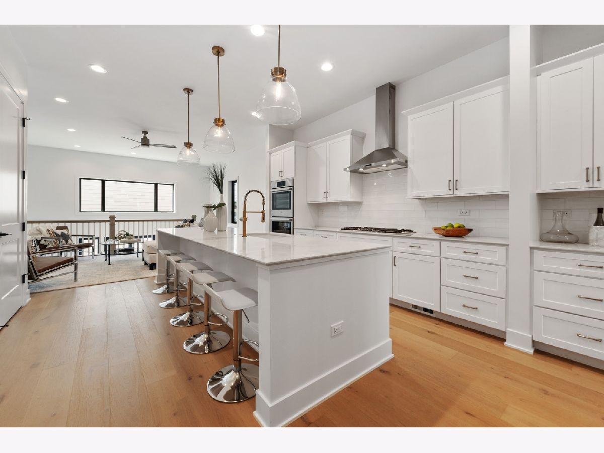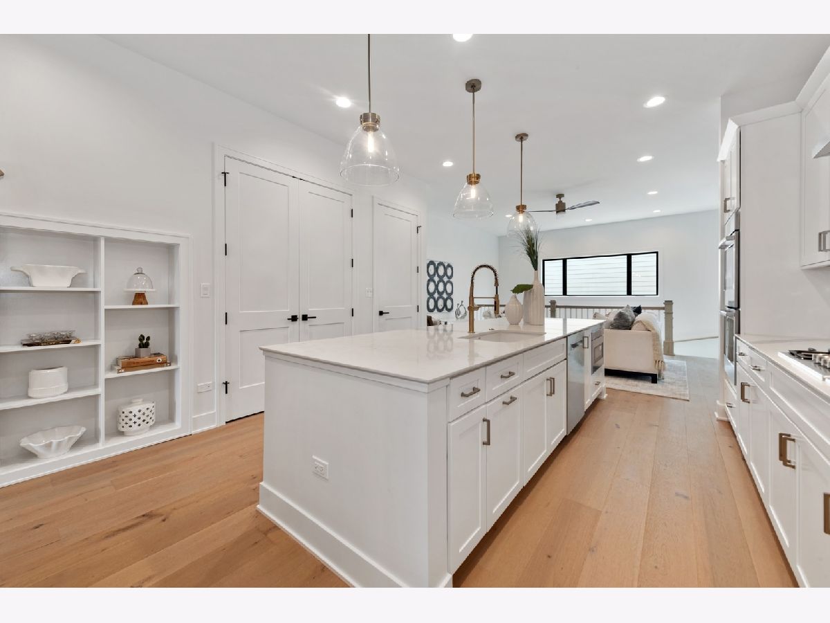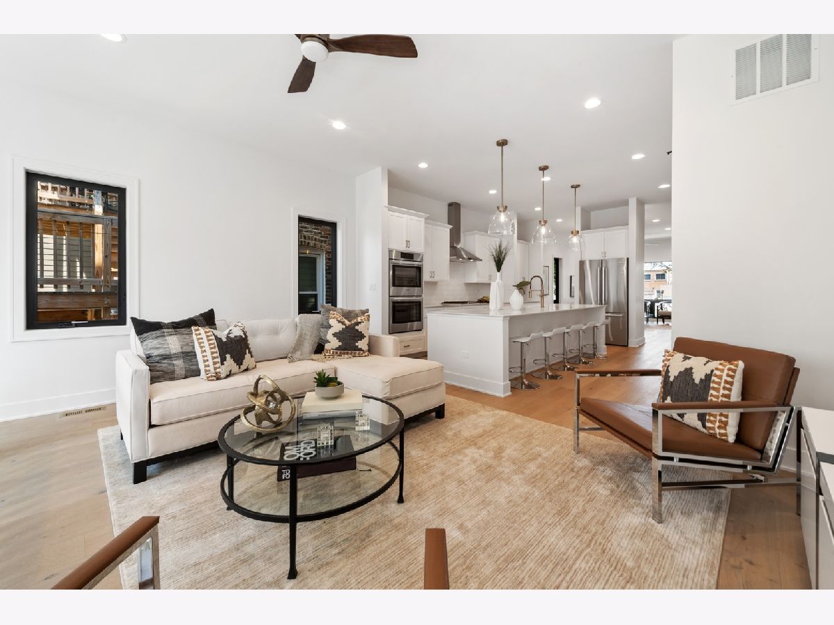 Introducing a new standard of relaxed sophistication in Chicago. 2331 Montana blends classic design with coastal influences and modern lines to deliver urban refined living that is inviting, casual and timeless. The contemporary urban architecture integrates a brick facade, large, black-framed windows and light-filled interiors with clean lines in light, neutral tones to produce an elegant, design-forward home with a hint of edge. The five-bedroom, three-and-a-half-bathroom home offers flexible living spaces on the main and lower levels with thoughtfully designed transitions to the home's multiple outdoor spaces, including a grade-level, brick-paver patio and options for rooftop decks on the home and two-car garage. Natural light floods the home with 10-foot ceilings and eight-foot doors on the main level, nine-foot ceilings on the second and lower levels, an open floor plan and naturally finished, wide-plank, white-oak hardwood flooring that enhances the home's interior airiness, design cohesion and organic aura. The chef-inspired kitchen is anchored by an impressive, 10-foot island and outfitted with contemporary Shaker-style cabinetry, generously sized pantry and closet, Bosch appliances, subway-tile backsplash and marble-inspired porcelain countertops that offer beauty and durability. Kohler and Grohe plumbing fixtures and designer-selected lighting are appointed throughout the kitchen, bathrooms, bedrooms and living spaces. A custom-built staircase leads to the luminous second level where the spacious primary en-suite enjoys greenspace and streetscape views, a massive walk-through closet and sophisticated, sunlit bathroom with herringbone tile floors, double vanities and an oversized shower with full-slab tiled walls. A wide hallway offers access to the rooftop Penthouse and two additional bedrooms with walk-in closets, full bathroom and side-by-side laundry. An oversized, French-Clay honed, radiant-ready tile floor adds warmth and elan to the lower level with a multi-purpose/family room, two bedrooms, a full bathroom and additional laundry access. The Smart-enabled home features CAT-6 data wiring with ports in bedrooms and living areas, 200-amp electrical service, a Google Nest Smart thermostat, Ring doorbell and security cameras and wiring. High-efficiency mechanical systems, windows and doors complement the home's natural aesthetic. A clean-lined, black wrought-iron fence frames the home's front elevation, and a natural Cedar, stained fence encloses the exterior. 2331 Montana is situated between the bustling and dynamic Logan Square and Bucktown neighborhoods, a short distance to the Kennedy, public transportation, Midtown Athletic Club, parks and countless shops, eateries and other destinations. A talented team of architects, designers and builders has joined together to conceptualize, design and build this special home ready for you to enjoy. Immediate delivery.