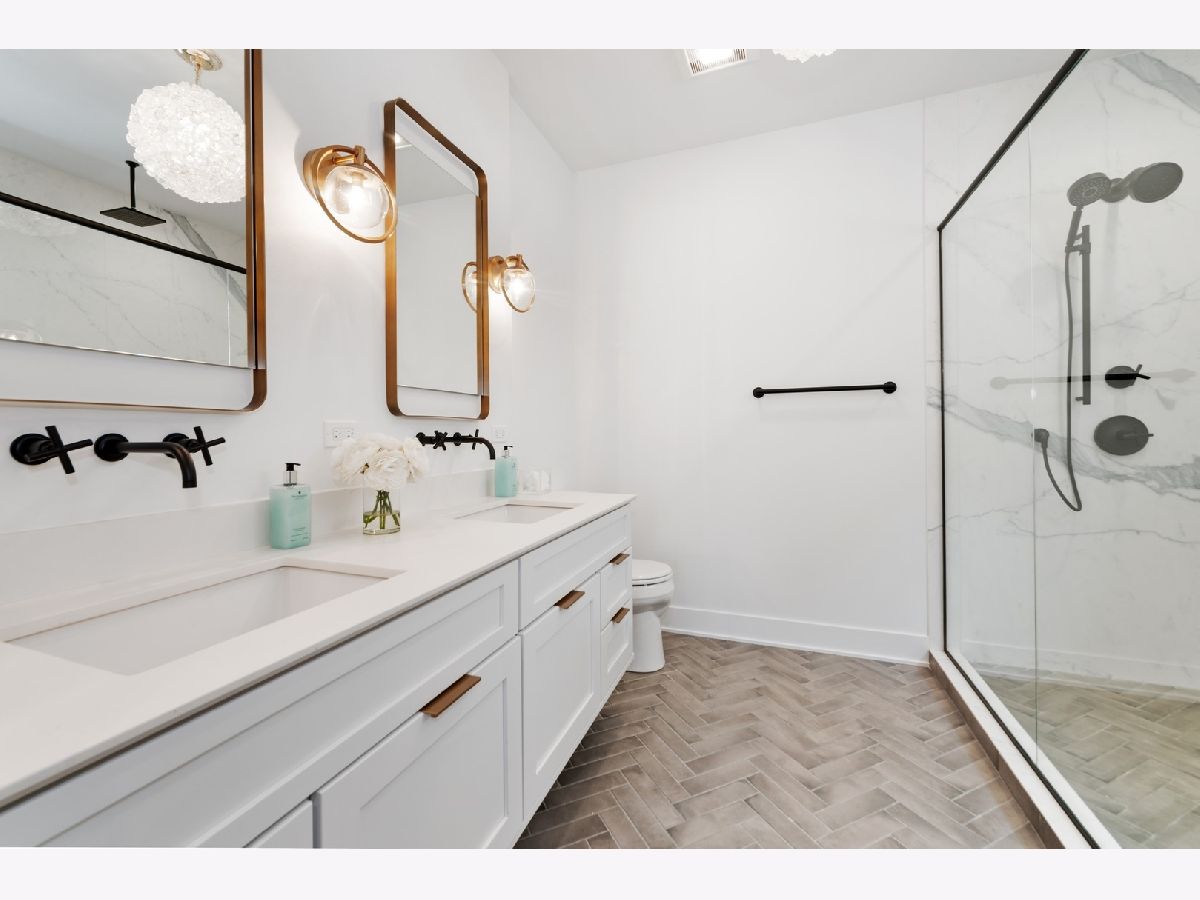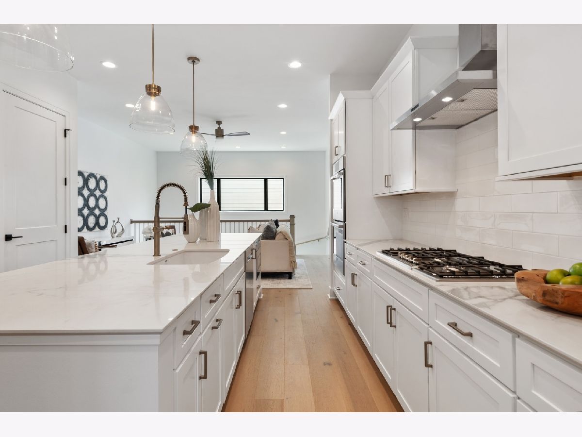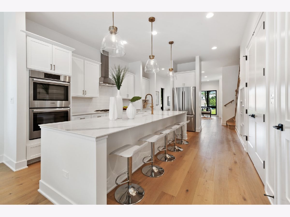 Introducing a new standard of relaxed sophistication in Chicago. 2331 Montana blends classic design with coastal influences and modern lines to deliver urban refined living that is inviting, casual and timeless. The contemporary urban architecture integrates a brick facade, large, black-framed windows and light-filled interiors with clean lines in light, neutral tones to produce an elegant, design-forward home with a hint of edge. The five-bedroom, three-and-a-half-bathroom home offers flexible living spaces on the main and lower levels with thoughtfully designed transitions to the home's multiple outdoor spaces, including a grade-level, brick-paver patio and options for rooftop decks on the home and two-car garage. Natural light floods the home with 10-foot ceilings and eight-foot doors on the main level, nine-foot ceilings on the second and lower levels, an open floor plan and naturally finished, wide-plank, white-oak hardwood flooring that enhances the home's interior airiness, design cohesion and organic aura. The chef-inspired kitchen is anchored by an impressive, 10-foot island and outfitted with contemporary Shaker-style cabinetry, generously sized pantry and closet, Bosch appliances, subway-tile backsplash and marble-inspired porcelain countertops that offer beauty and durability. Kohler and Grohe plumbing fixtures and designer-selected lighting are appointed throughout the kitchen, bathrooms, bedrooms and living spaces. A custom-built staircase leads to the luminous second level where the spacious primary en-suite enjoys greenspace and streetscape views, a massive walk-through closet and sophisticated, sunlit bathroom with herringbone tile floors, double vanities and an oversized shower with full-slab tiled walls. A wide hallway offers access to the rooftop Penthouse and two additional bedrooms with walk-in closets, full bathroom and side-by-side laundry. An oversized, French-Clay honed, radiant-ready tile floor adds warmth and elan to the lower level with a multi-purpose/family room, two bedrooms, a full bathroom and additional laundry access. The Smart-enabled home features CAT-6 data wiring with ports in bedrooms and living areas, 200-amp electrical service, a Google Nest Smart thermostat, Ring doorbell and security cameras and wiring. High-efficiency mechanical systems, windows and doors complement the home's natural aesthetic. A clean-lined, black wrought-iron fence frames the home's front elevation, and a natural Cedar, stained fence encloses the exterior. 2331 Montana is situated between the bustling and dynamic Logan Square and Bucktown neighborhoods, a short distance to the Kennedy, public transportation, Midtown Athletic Club, parks and countless shops, eateries and other destinations. A talented team of architects, designers and builders has joined together to conceptualize, design and build this special home ready for you to enjoy. Immediate delivery.