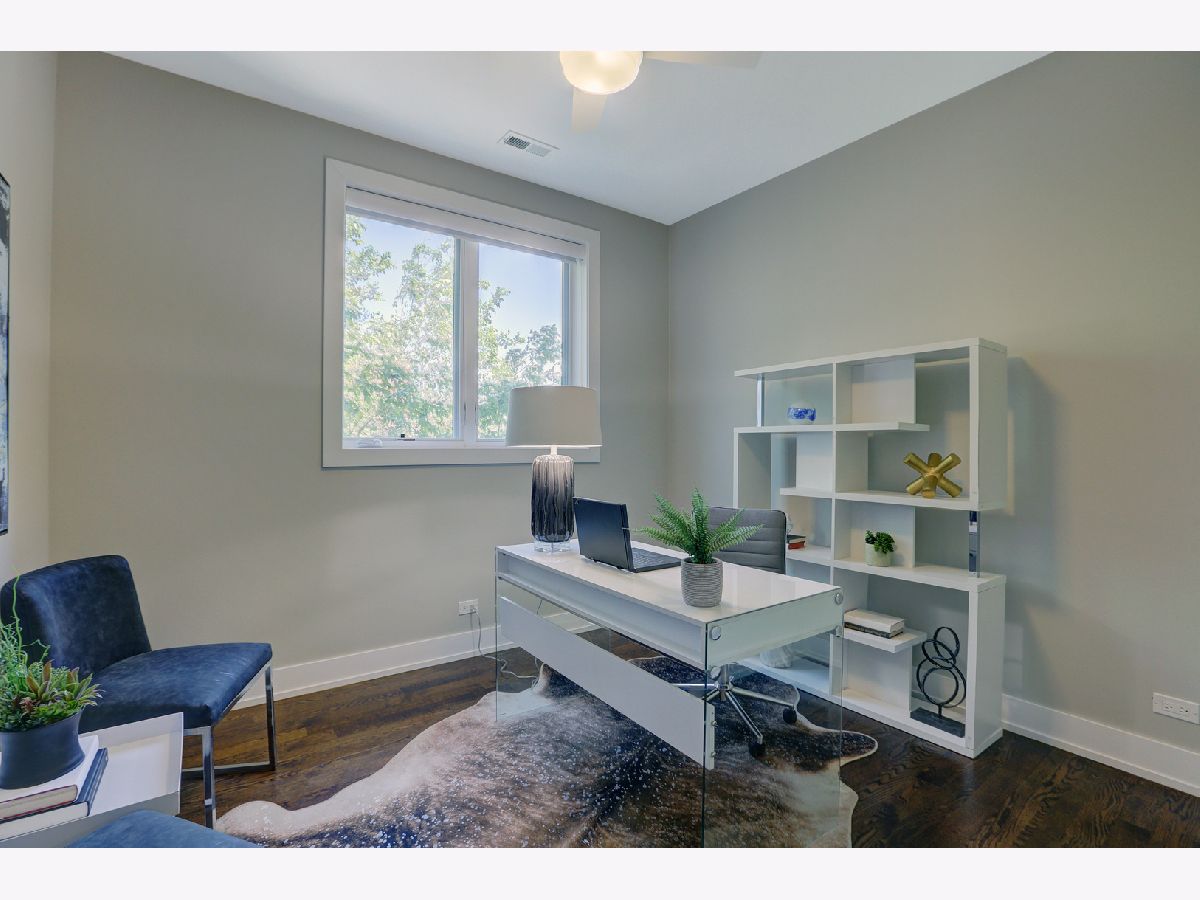 Welcome home to this beautiful three bedroom, two bath duplex condo unit that feels like a single family home. From the moment you open the front door, your immersed in pure luxury with a spacious open floor plan. The gourmet kitchen will make even a professional chef envy the quartz countertop space, large island, custom cabinets and Miele high-end appliances. The living room features a quartz fireplace which makes the whole room feel warm and comfortable to either entertain or stay in for a relaxing evening at home. Beautiful hardwood floors throughout with custom trim work and wainscoting. The master bedroom includes a spa-like en-suite with a great walk-in closet with custom cabinets and organization. The two additional bedrooms allow for an expanding family or separate personal offices for the stay-at-home professionals. Great entertainment space on the large front deck overlooking Welles Park nature space. Included access to the roof-top deck with amazing views of downtown and beautiful sunsets. One indoor garage space included with ample street parking. Custom Hunter Douglas blinds throughout. All of this with a convenient location to the Brown Line, Metra, Coonley School, restaurants, cafes, Lincoln Square pubs and Davis Theatre.