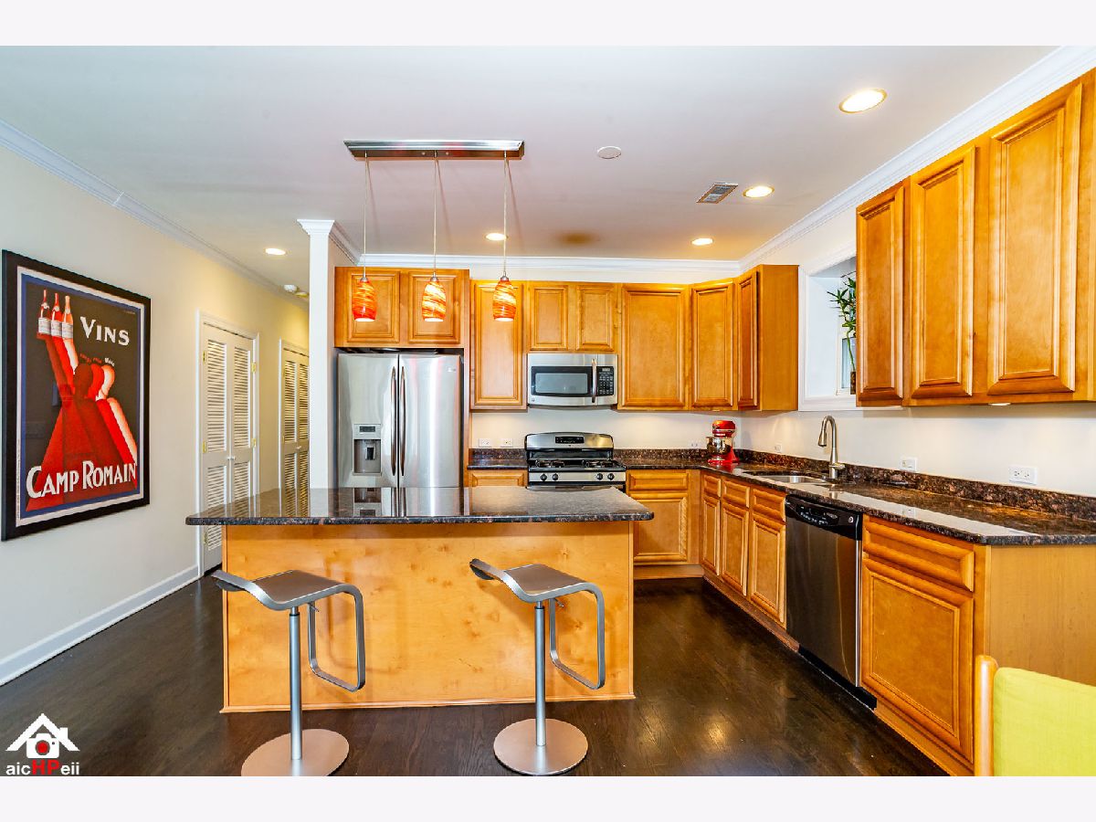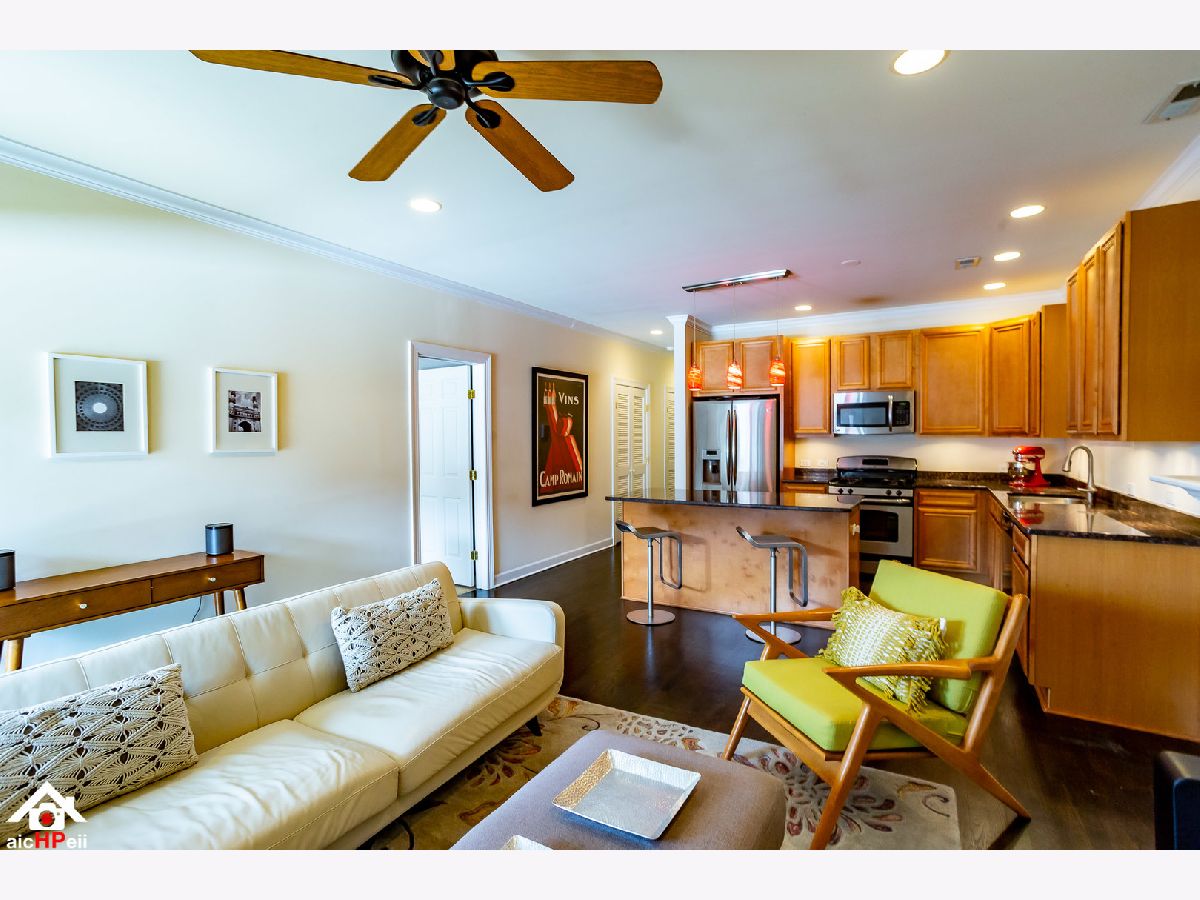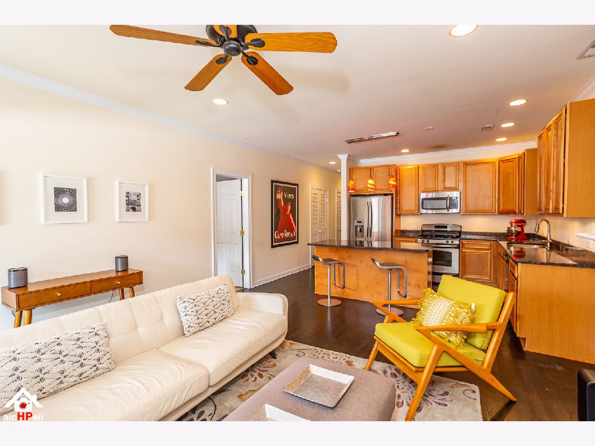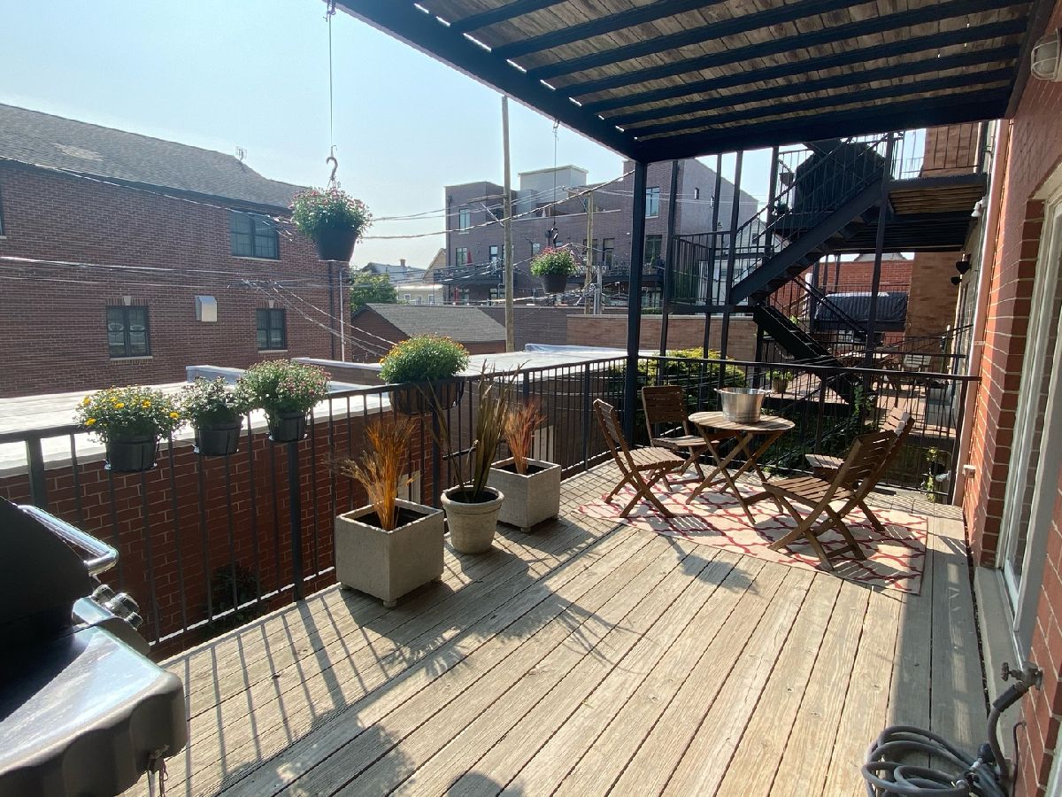 Stunning 3 Bedroom 2 Bathroom Extra-Wide Condo in the desirable Lincoln Square area in the top-rated Level 1+ Coonley School CPS district with elegant finishes and almost 2,000 sq ft of living space! Enjoy the best of city living with the renovated Davis Theater, Old Town School of Folk Music, Sulzer Library, restaurants, shopping and plenty of non-metered street parking. This beauty boasts Custom Espresso hardwood flooring, 10ft high ceilings, formal dining room, living room with marble surround fireplace, built-ins, and wall of French terrace doors with amazing unobstructed views of Welles Park, nature play area, and tennis courts. The kitchen showcases 42-inch cabinets, massive granite island and counters and stainless steel appliances. next to the ample family room with wood-burning fireplace. Perfect open layout for entertaining guests with a walk-out enormous private deck (over 200 sq ft) with serene and sunny views. The primary bedroom offers a huge walk-in closet plus a mirrored sliding closet complete with California Closet-style organizers, marble en suite bath with double sinks, stand up shower and soaking tub along with loads of natural light coming from your sliding deck access. Updated mechanicals, in-unit laundry, plentiful closets, smart thermostats plus deeded garage parking space!