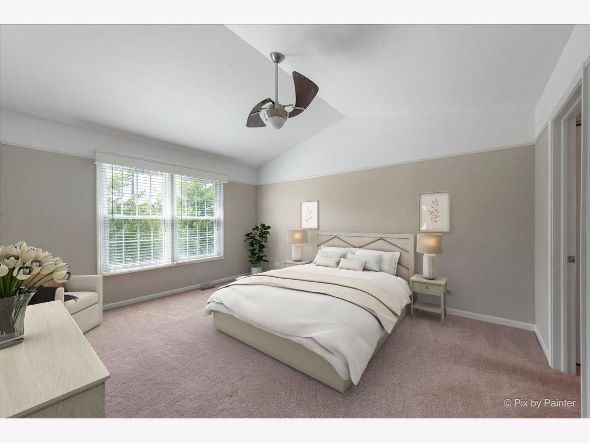 Looking for a country club feeling?? Welcome to the Bloomfield Club. Soaring two story living room with a cozy gas log fireplace and formal dining room with sliding glass door adorned with Plantation Shutters and leading out to a private patio. Whatever your culinary skills, you will love the large kitchen featuring maple cabinetry with under lighting, granite counters and stainless steel appliances, while offering a table space as well as breakfast bar. The second floor offers a vaulted primary suite with luxury bath complete with double bowl vanity, separate shower with new glass door and a soaker tub, and let's not forget the double closets ~ one being a massive walk in closet. The second bedroom is next to the full hall bath and the very convenient laundry room round out the second floor. The first floor also offers a den which is ideal for a home office/e-learning or use as a 3rd bedroom. The full basement is great for storage or finish for additional living space. Pella Windows and SGD 7 years ~ Remote blinds ~ HVAC 2023 ~ Cat 5 WiFi equipment ~ LED lighting ~ Security System ~ Electric panel with whole house surge protector 5 years ~ Garage Door and EDO 5 years. Enjoy the Bloomfield Club amenities in the million dollar clubhouse with indoor/outdoor pools, fitness center, party room, multi-use courts for pickle ball, tennis and basketball. School bus service for school district 13 and Lake Park High School. Great location to Woodman's, Mariano's, Meijer, Jameson's, Cooper's Hawk and the Army Trail dining and shopping area. Truly a beautiful unit you don't want to miss!
