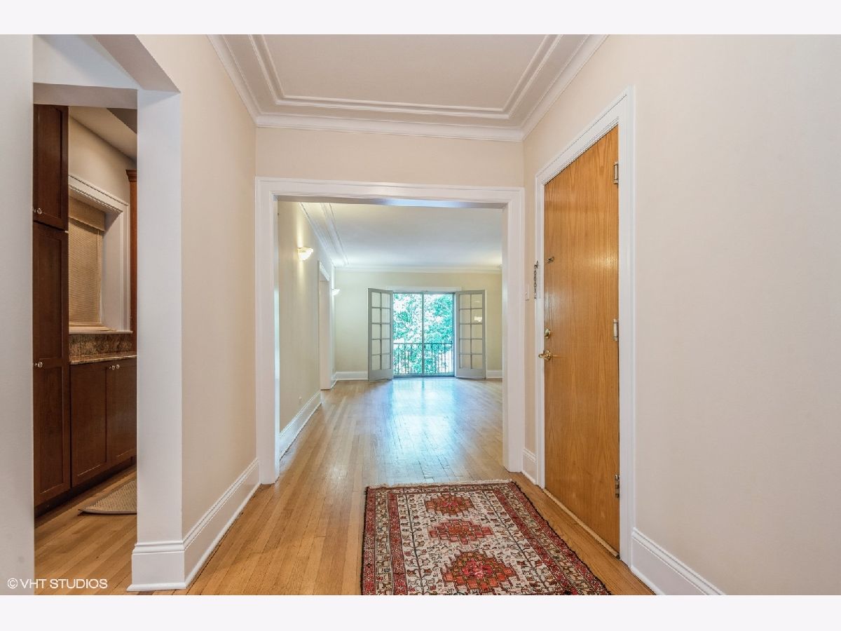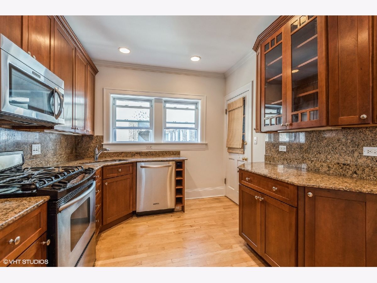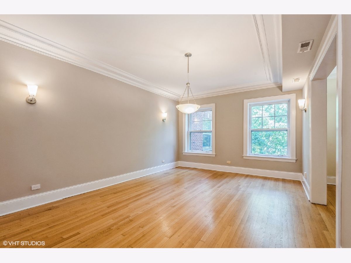 Look no further! Rarely available perfectly situated vintage beauty just two blocks to the lake and beaches. Short, easy walk to shops, restaurants, and transportation. Spacious and bright, three bedroom, two full bath second floor walk-up in a very well run, maintained / managed building. Freshly painted throughout, hardwood floors, forced air / heat, in-unit laundry, gas log fireplace, and more. Large living room with Juliette balcony opening up facing north, letting in wonderful fresh air and tons of light. Spacious, separate dining room, with a walk-thru butler's pantry connecting the dining room and kitchen. Nice sized kitchen with granite counters and stainless steel appliances. The primary bedroom has a private bath with walk in shower. The additional two bedrooms are good sized, with an adjoining full bath, also accessible from the hallway. A wonderful bonus is the large, beautiful shared outdoor patio/yard area for all to enjoy. There is an additional assigned storage space in the basement. Easy street parking, pets allowed. This one checks all the boxes, truly lovely!