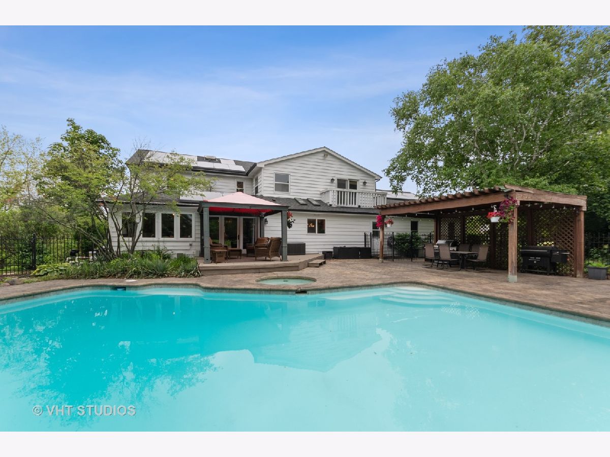 Stunning turnkey home! Welcome to this fabulous retreat style home set on a tranquil, nearly one-acre cul-de-sac site with in-ground pool & built-in spa for fun filled summer days! Drenched in natural light this home features hardwood floors, beautiful detailing, full baths with heated flooring and a flexible floor plan to suit your lifestyle! First floor bedroom with ensuite bath is a great guest, in-law or au pair suite or is perfect for a home office. Gorgeous kitchen makes meal prep a breeze with quartz counters, updated cabinetry, skylights and large butler & walk-in pantries. Family room opens to the kitchen and eating area both with beautiful views of the rear yard and pool area. A spacious dining room, den/play room, two powder rooms and laundry complete the main level. The well-appointed second floor has newer hardwood flooring throughout and features a luxury primary suite with sitting area, private balcony, walk-in closet and spa like bath as well as three generously sized secondary bedrooms and updated hall bath. Finished lower-level rec room is a great hangout for all ages and offers additional storage space. Prepare to be wowed by the Incredible outdoor living area where you can enjoy warm summer afternoons splashing in the pool, cool evenings around the outdoor fireplace or soaking in the hot tub or curl up with your favorite book under one of the pergolas! Sprawling rear lawn offers plenty of space to play and Southern exposure makes great use of energy efficient solar panels. Three car side load garage! So many wonderful updates including 11 new windows on the front of the home, newer hot water heater and new A/C until slated for installation, just to name a few! Ideal location offering the space and privacy you want with easy access to nearby Deer Park for shopping & restaurants and just minutes to downtown Barrington and Metra. A perfect 10!