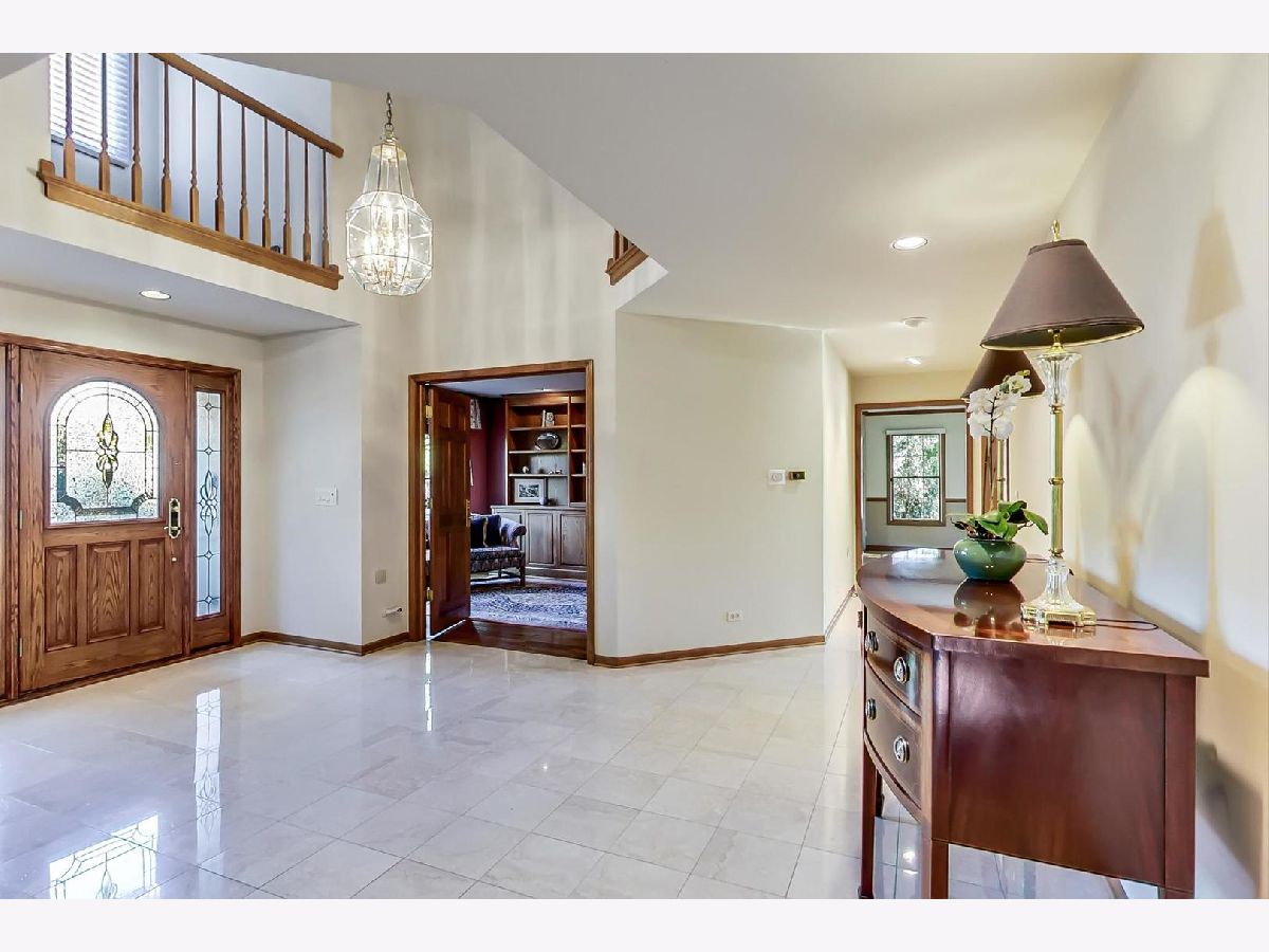 Meticulously maintained, brick colonial on a quiet cul-de-sac in a desirable neighborhood with three lakes and a park. Welcoming grand two-story entrance greets guests. Large sunlit living room with fireplace & gleaming hardwood floors. A large dining room adjacent to the kitchen is perfect for hosting holiday dinners. Private & essential first-floor office with built-in custom shelving. Recently updated eat-in cooks' kitchen with double oven, large island, tons of cabinets space, and views of the serene backyard. Immerse yourself in the bright sun-filled sunroom which flows right off the kitchen & offers skylights and doors leading to a serene garden. The whole family will love the family room with a cozy fireplace, wet bar & gleaming hardwood floors and it's the perfect get-together room. The main level is completed with the recently updated powder room and a laundry room which doubles as a mudroom with access to the HUGE THREE car attached garage. Primary bedroom suite is the perfect oasis featuring two walk-in closets. Updated spa bathroom offers an air bathtub, double sinks with granite counters, heated floors a separate water closet, and a shower complete with body jets & a rain shower. 2nd floor boasts 3 additional bedrooms and a newly updated full bath. The fully finished basement features a large rec room with a built-in media center, wet bar, full bathroom, and ample storage. Other amenities include -Central vacuum, paver driveway & walkways, in-ground sprinklers & 220 Amp in the garage is Tesla ready!