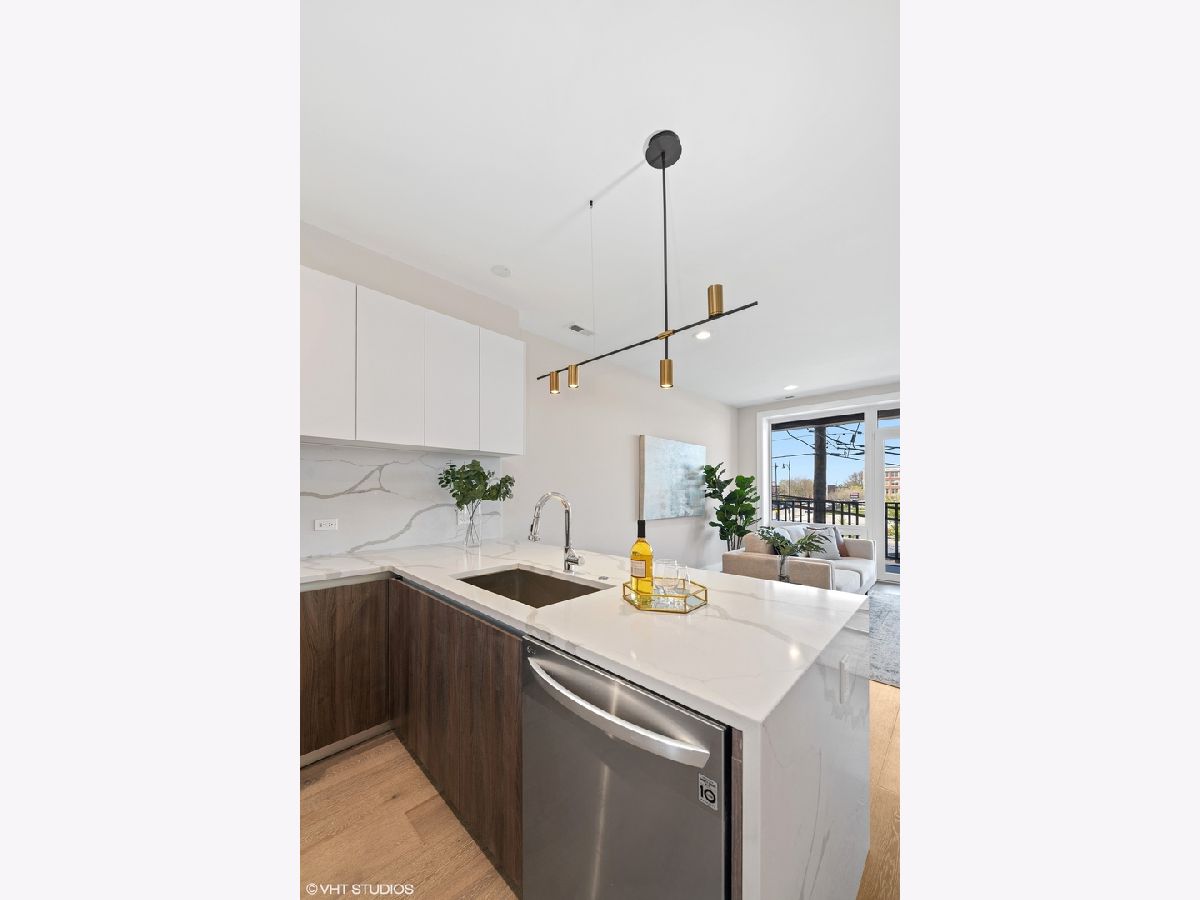 READY FOR OCCUPANCY! Fortress Home introducing 31- Unit Boutique ELEVATOR building and offering an urban chic living with thoughtfully designed open concept floorplan. The sleek gourmet kitchen provides custom two-tone cabinetry, quartz counters with waterfall feature, stainless steel appliances, and a massive peninsula flowing along with the wide plank flooring into the open, natural light filled living area with floor-to-ceiling European windows and a covered private balcony (15x5) off the living room. The spacious primary bedroom boasts a large window and a walk-in closet. Enjoy a beautiful bathroom with a soaking tub/ shower, custom floating vanity and designer tile. The unit comes with an in-unit washer/ dryer and bike storage. Conveniently located near West Loop, Little Italy, United Center and Medical District. Easy access to Eisenhower Expressway / 290, Blue line El Train stop, Western Ave Metra Stop for MD-N, MD-W, & NCS, and CTA buses.