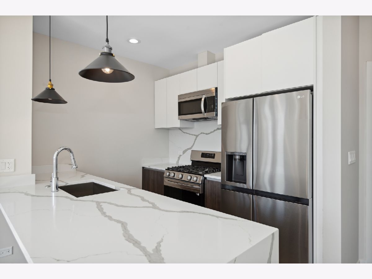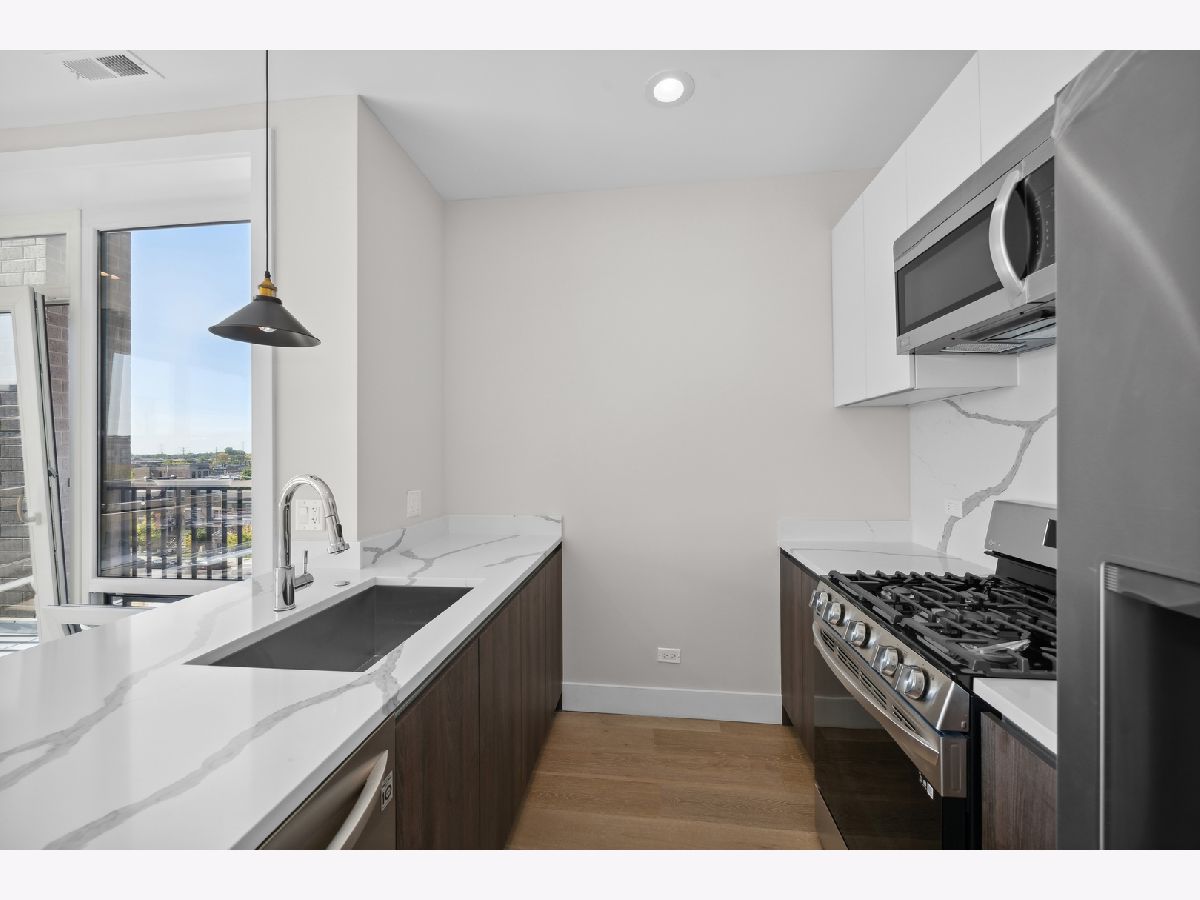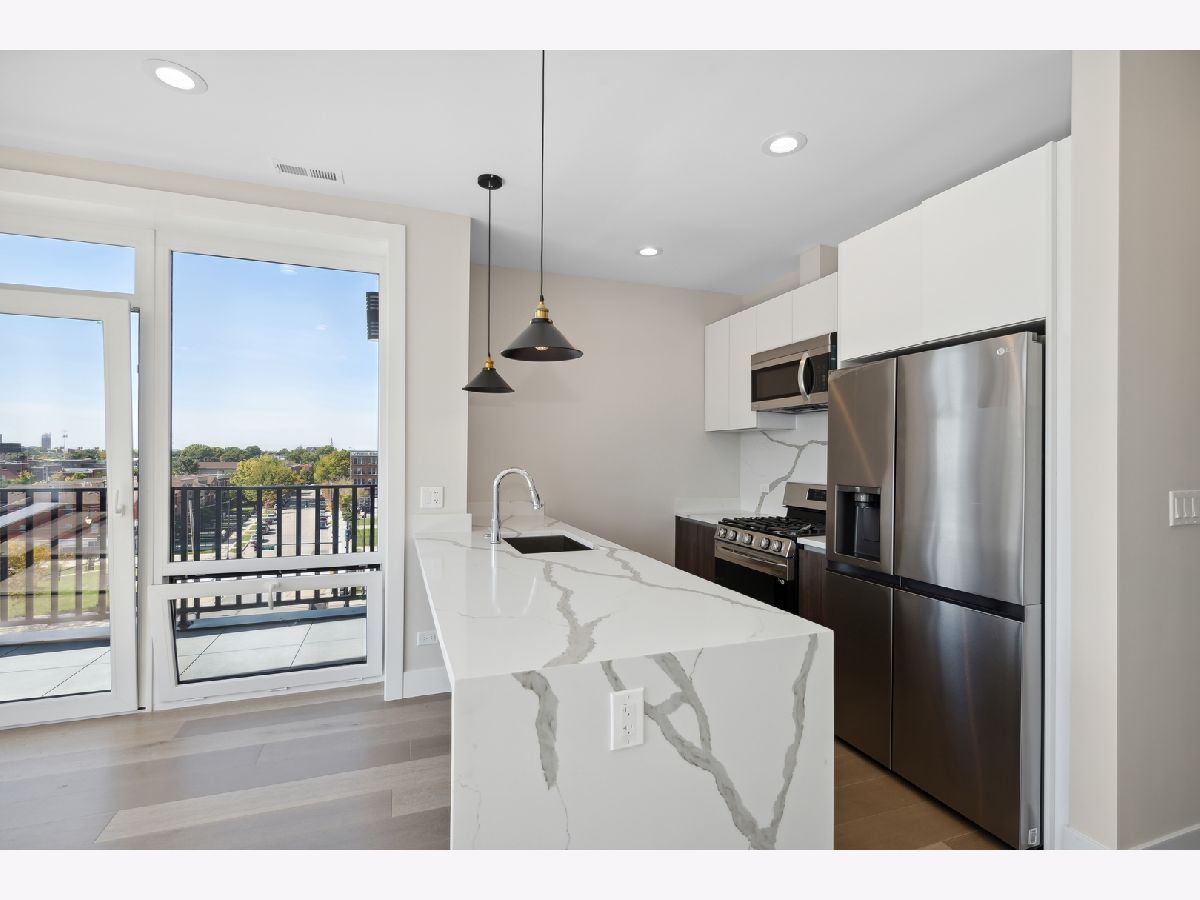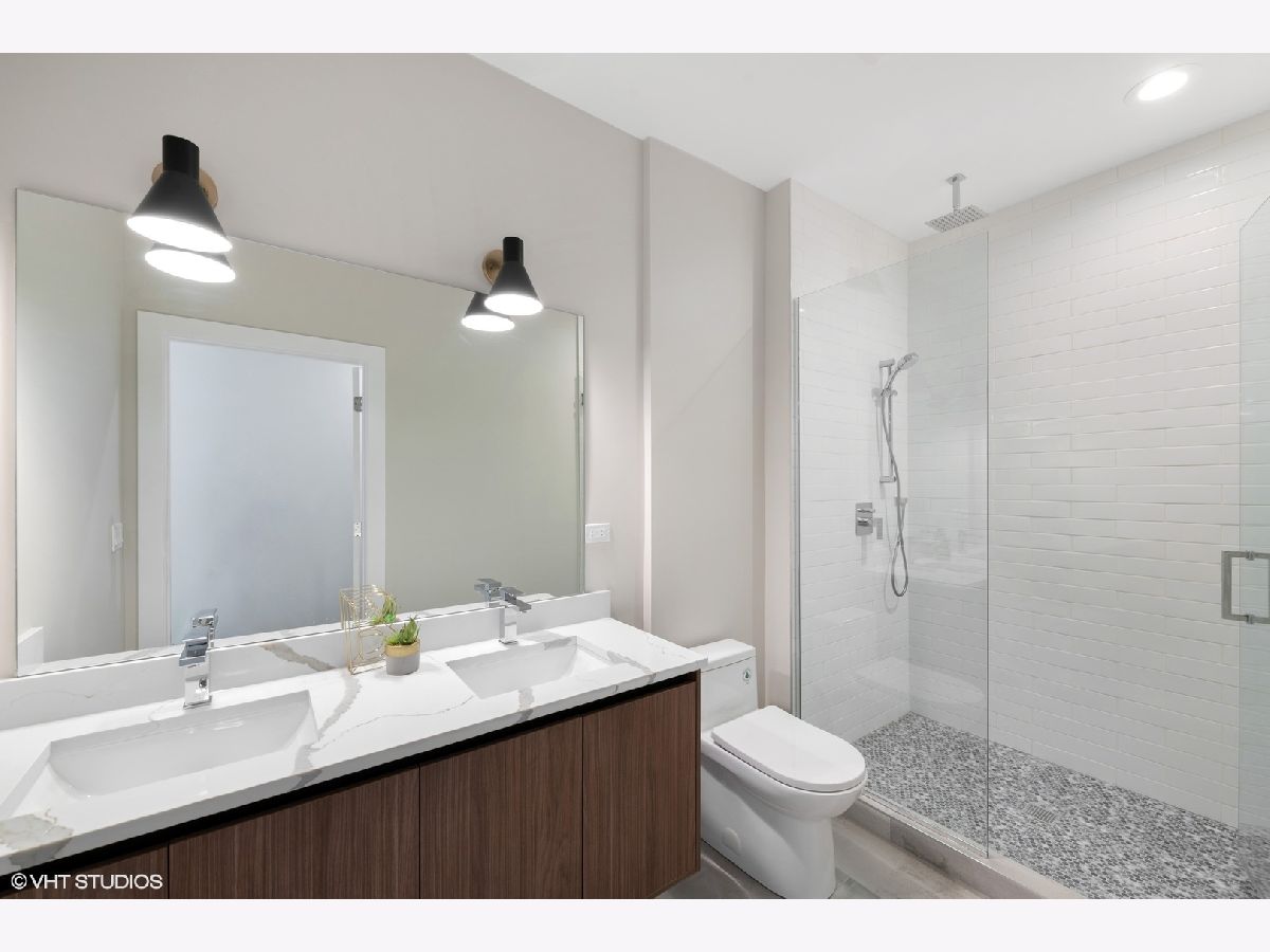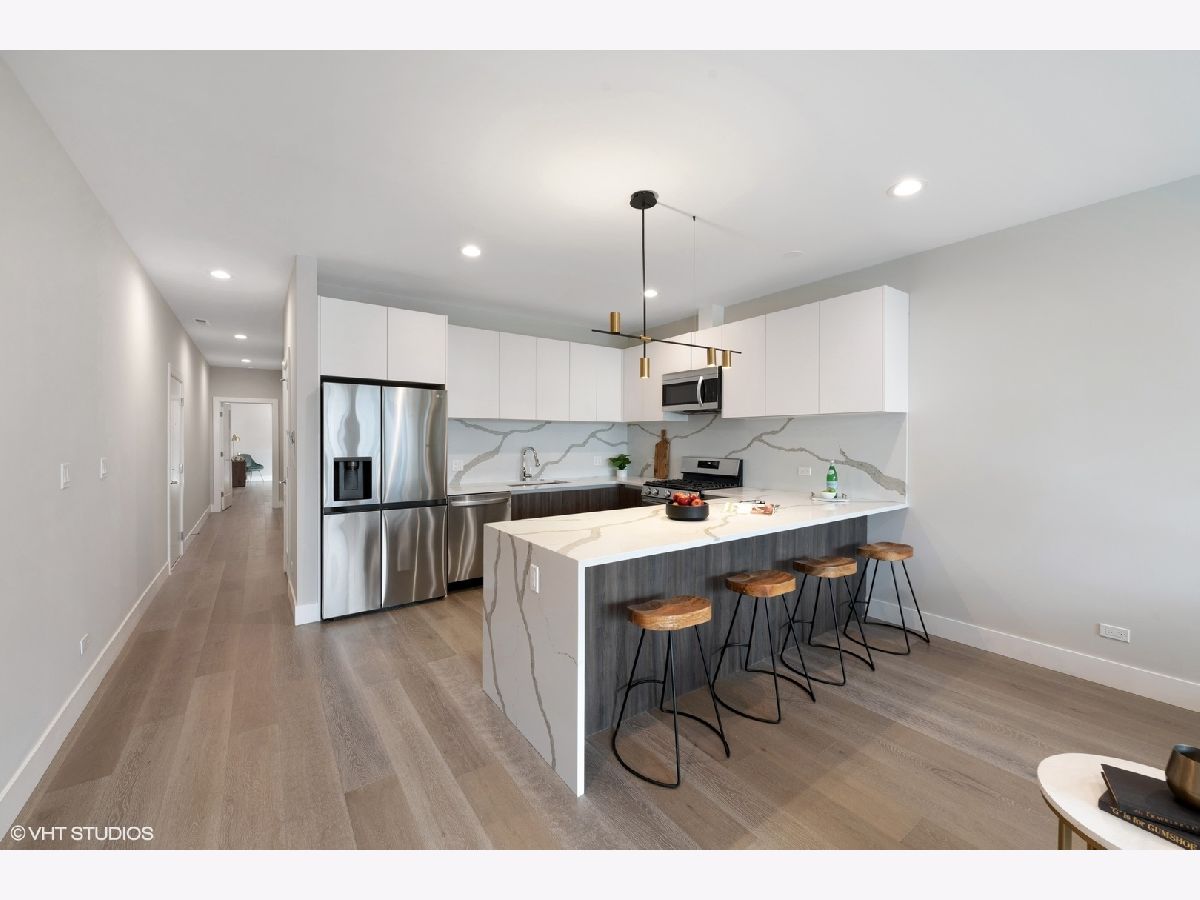 READY FOR OCCUPANCY! Fortress Home introducing 31- Unit Boutique ELEVATOR building offering an urban chic living with thoughtfully designed open concept floorplan. The sleek gourmet kitchen provides custom two-tone cabinetry, quartz counters, stainless steel appliances, and a massive peninsula flowing along with the wide plank flooring into the open, natural light filled living area with floor-to-ceiling European windows and a covered private balcony (13x5) off the living room. The spacious primary suite boasts a large window with a walk-in closet and the spa-inspired en suite bathroom with a walk-in shower, designer tile and custom single floating vanity. The 2nd bedroom features a large window and a closet. Enjoy a beautiful bathroom with a soaking tub/ shower and custom floating single vanity. The unit comes with an in-unit washer/ dryer and assigned 150 SF rooftop deck with panoramic city view. Attached heated garage space is included in the price. Pictures are taken of the model Unit #503 and #204. Conveniently located near West Loop, Little Italy, United Center and Medical District. Easy access to Eisenhower Expressway / 290, Blue line El Train stop, Western Ave Metra Stop for MD-N, MD-W, & NCS, and CTA buses.